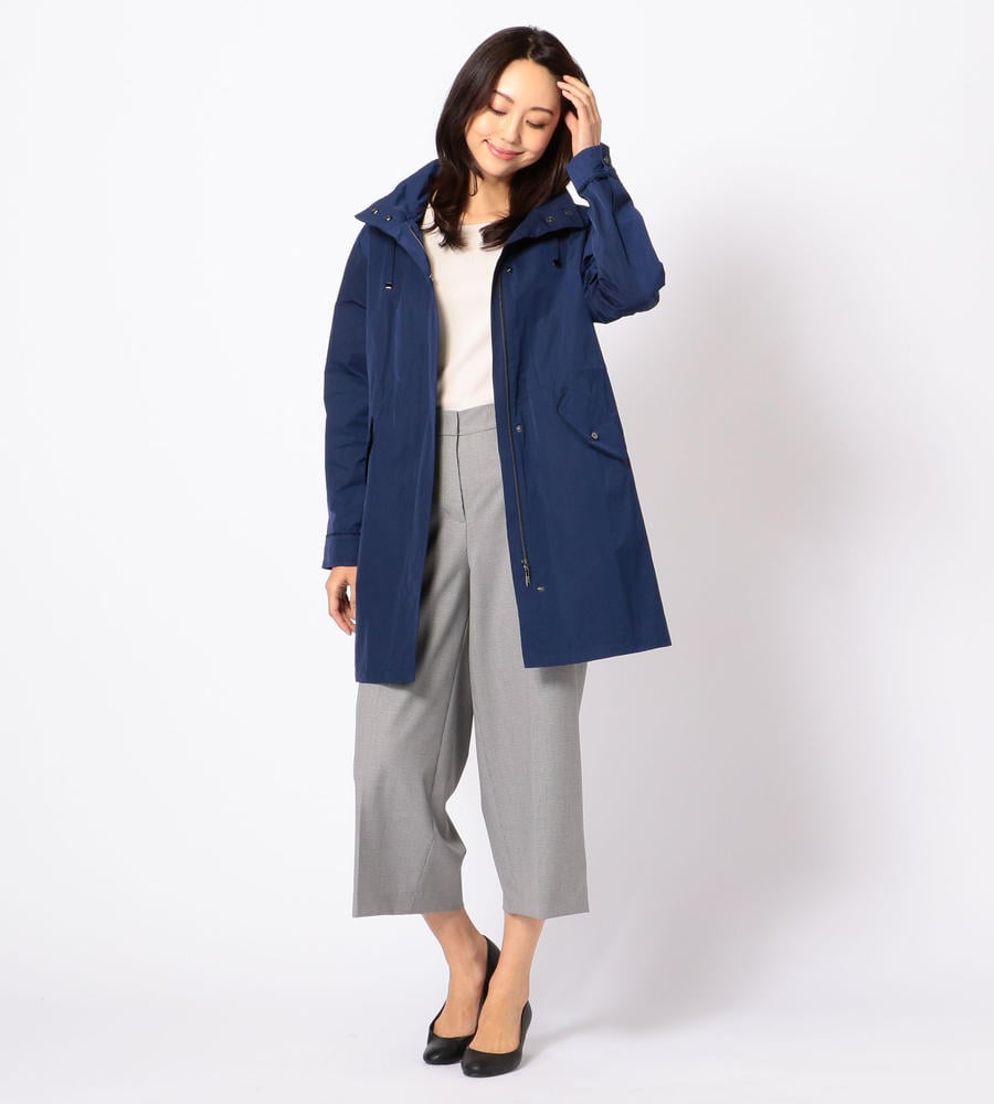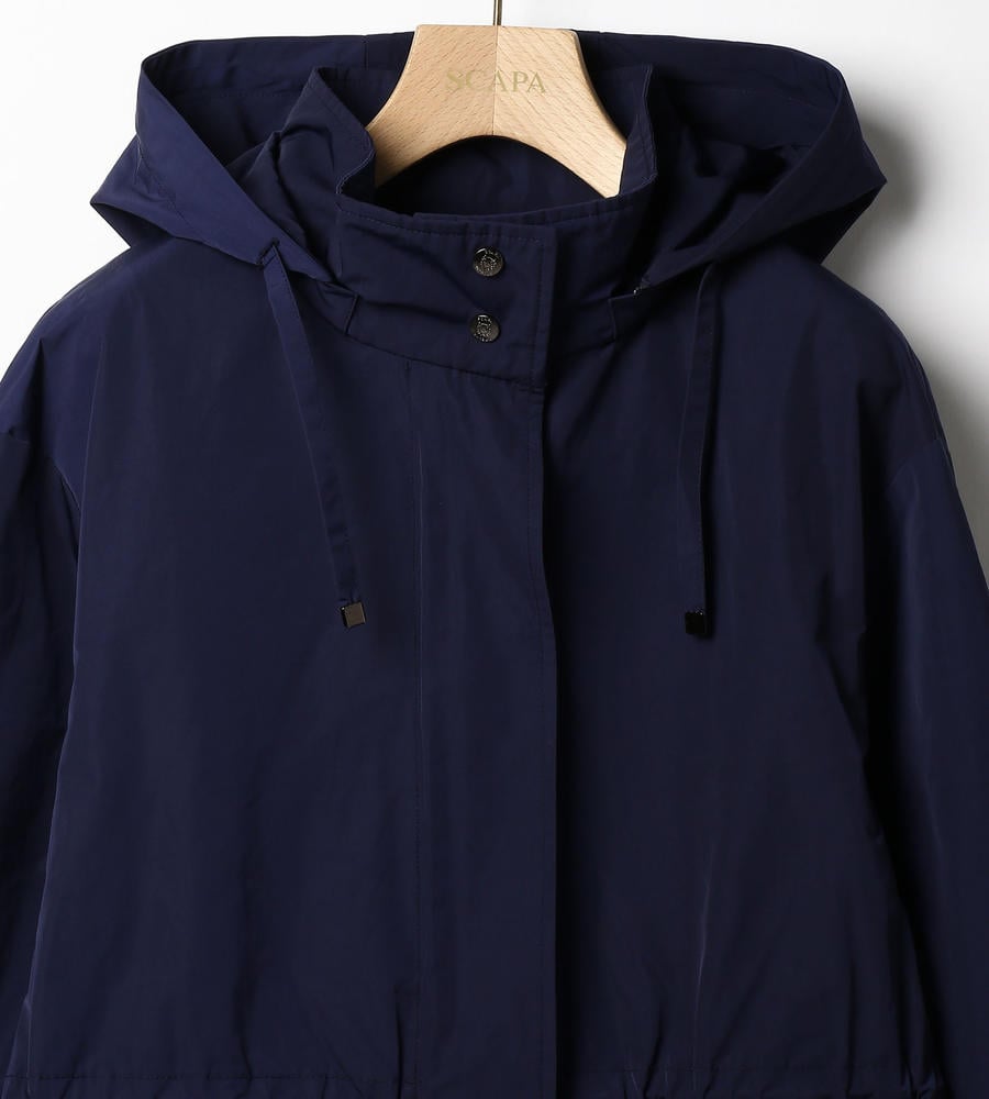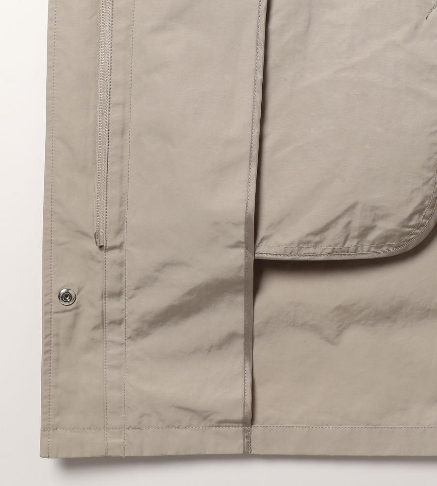 軽やかな素材感で、季節の変わり目の温度調節に重宝するフードつきのジップアップコートです。フラップポケットには、グログランテープでトリミングを施しました。ロゴを刻んだメタルボタンもさりげなくアクセントを効かせてくれます。フードは取り外し可能。ウエストのドローコードで、絞り具合を調節できます。