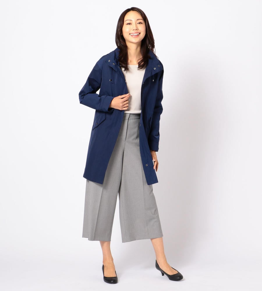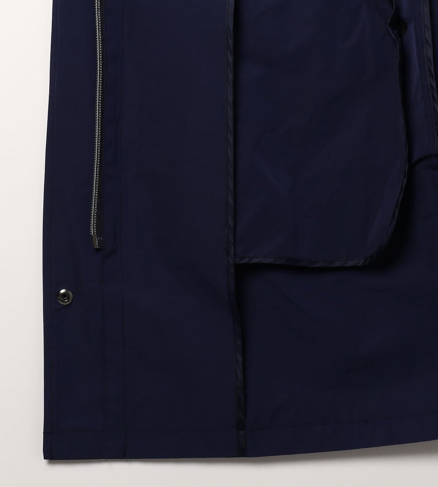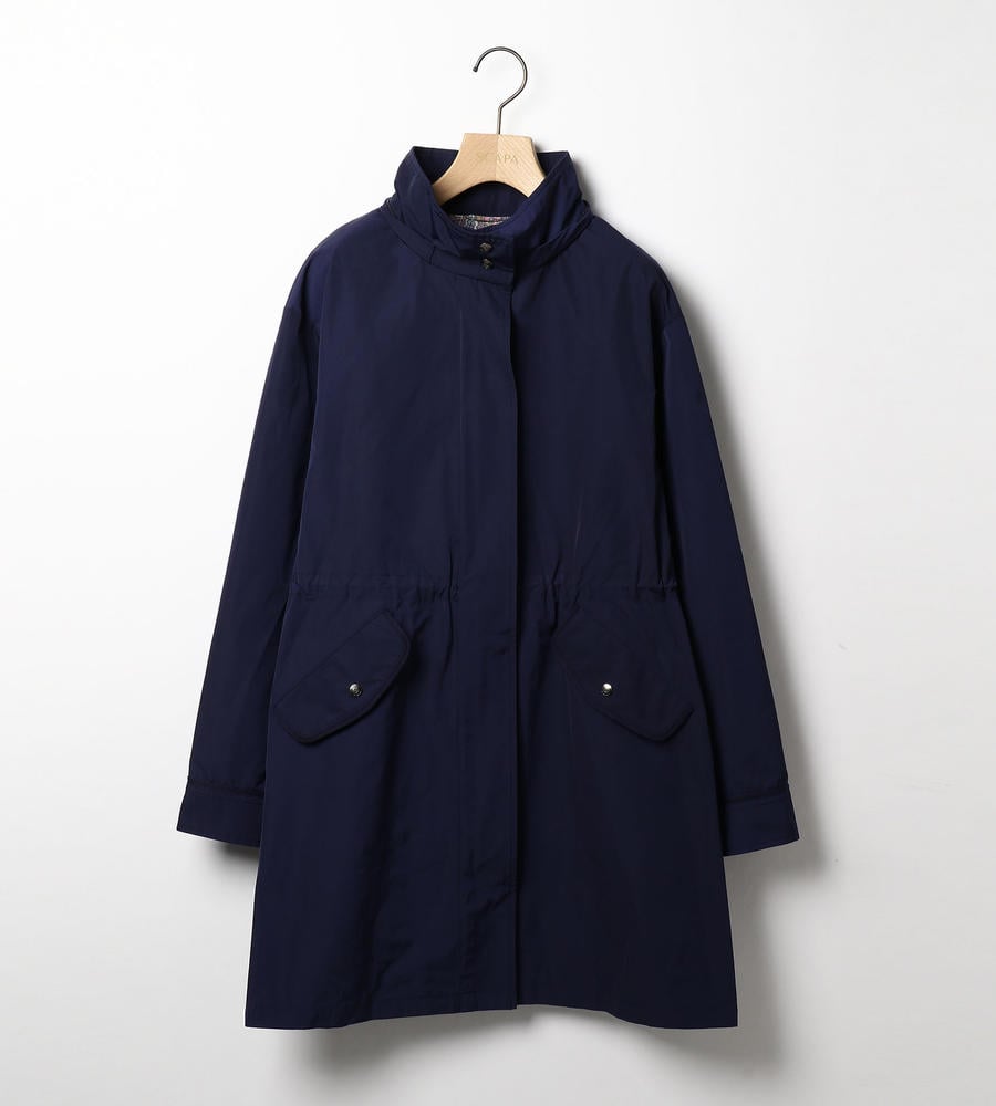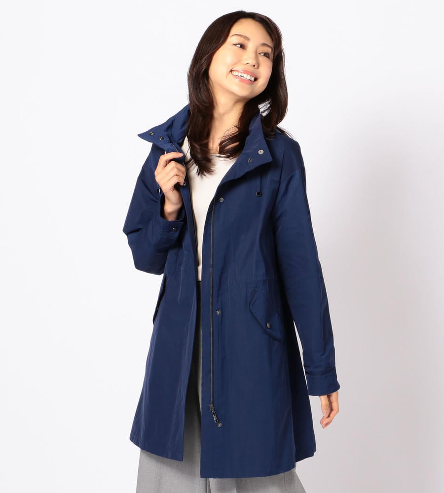 軽やかな素材感で、季節の変わり目の温度調節に重宝するフードつきのジップアップコートです。フラップポケットには、グログランテープでトリミングを施しました。ロゴを刻んだメタルボタンもさりげなくアクセントを効かせてくれます。フードは取り外し可能。ウエストのドローコードで、絞り具合を調節できます。