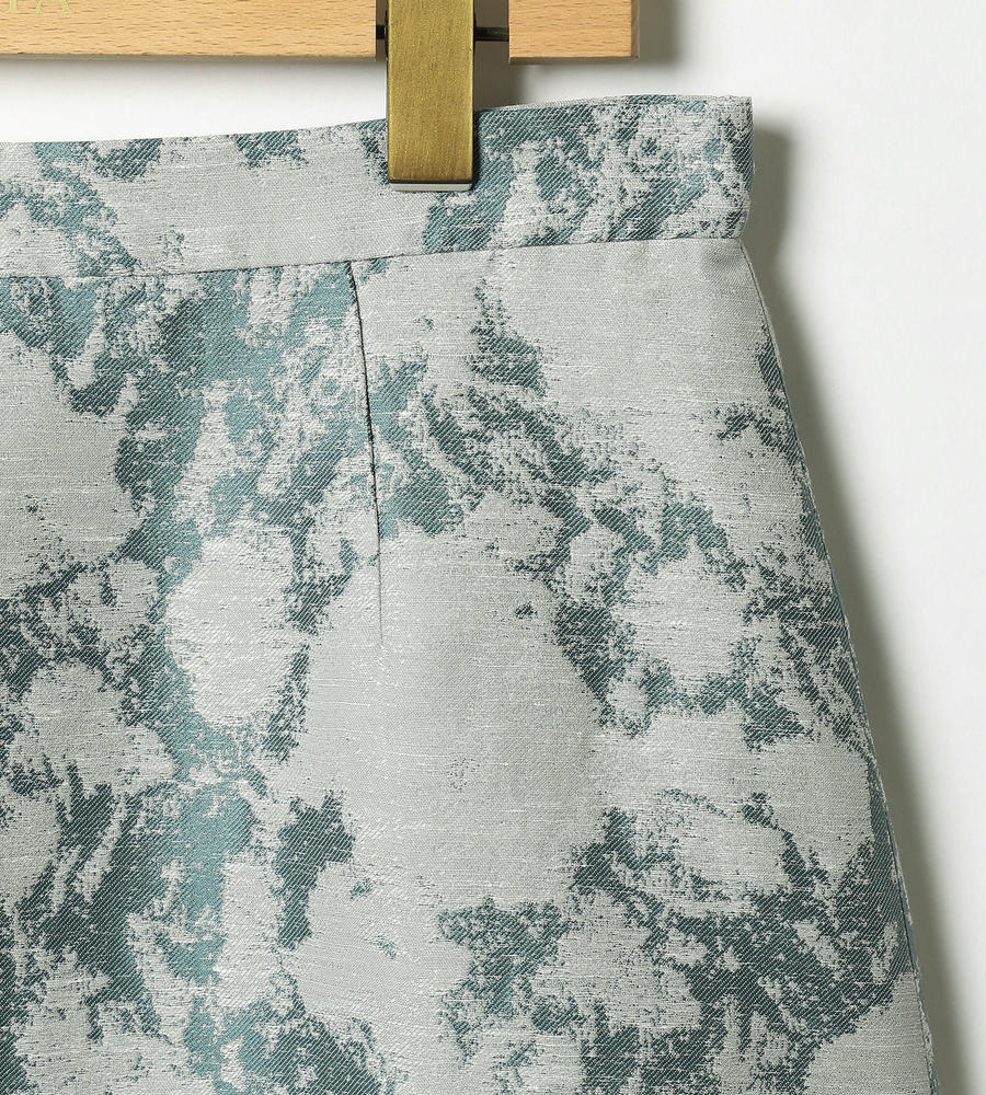 肌触りのよい麻混生地を使用し、緻密なパターンメイキングでデザインしたジャカード柄のスカート。裾に向かって広がりをもたせた端正なAラインシルエットで爽やかな雰囲気に。バックジップ仕様とし、着脱のしやすさにも配慮しました。これからの季節らしい洗練されたフェミニンルックが完成するアイテムです。