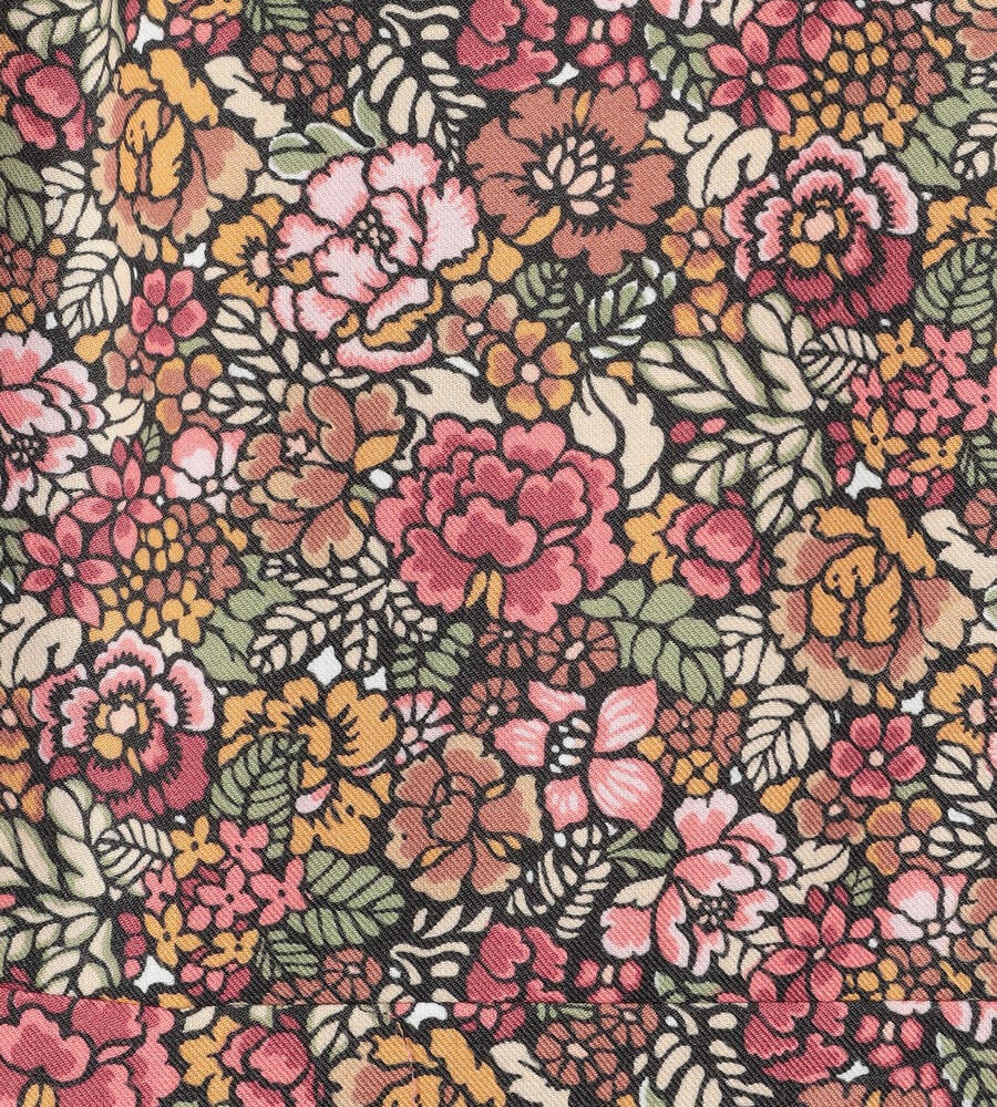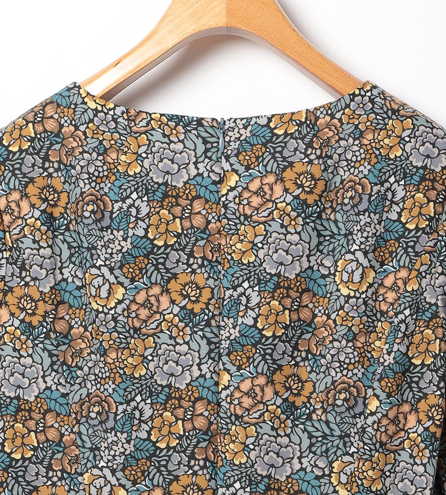 落ち着いた色味のガーデンリバティプリントが美しいワンピース。ウエスト切り替え部分にタックをあしらい、裾に向かって優美に広がるフレアシルエットでエレガントに仕上げています。軽やかな七分袖がグッドバランス。1枚で主役スタイルに。