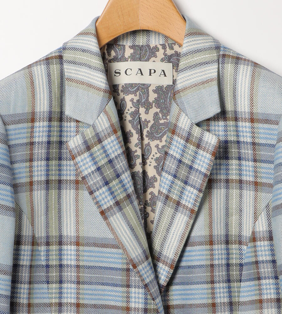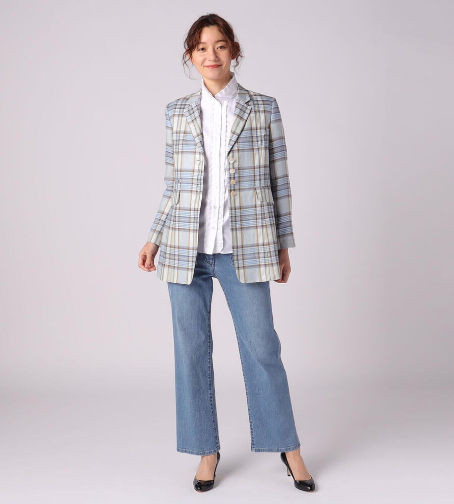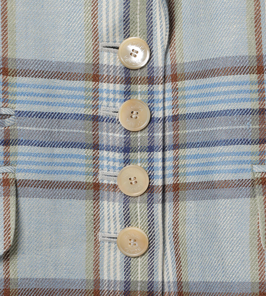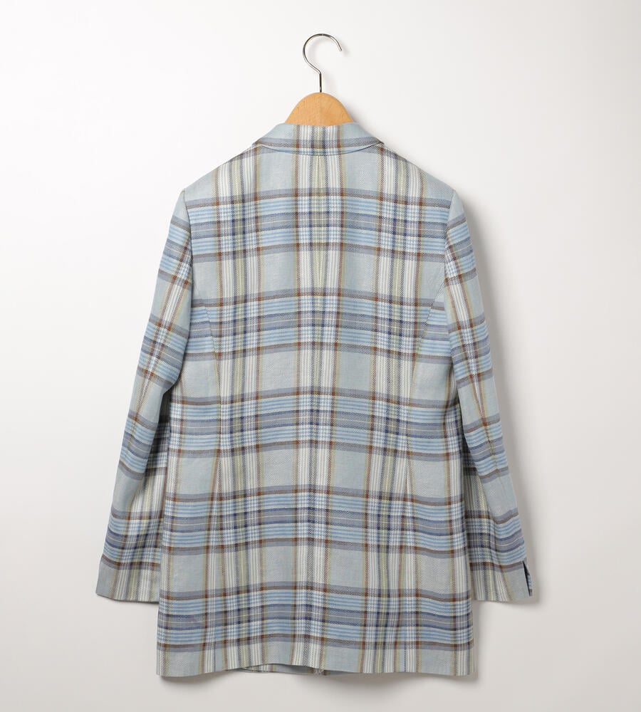 美しいカラー使いのブリテッシュチェックが着こなしの主役にふさわしいジャケット。麻とポリエステルのブレンド素材を採用。フロントにはブランドロゴが刻印されたボタンを4つ並べ、アシンメトリーにポケットが配置されています。腰まわりをカバーする着丈でマニッシュなムードを漂わせた1着。