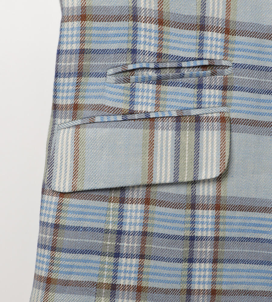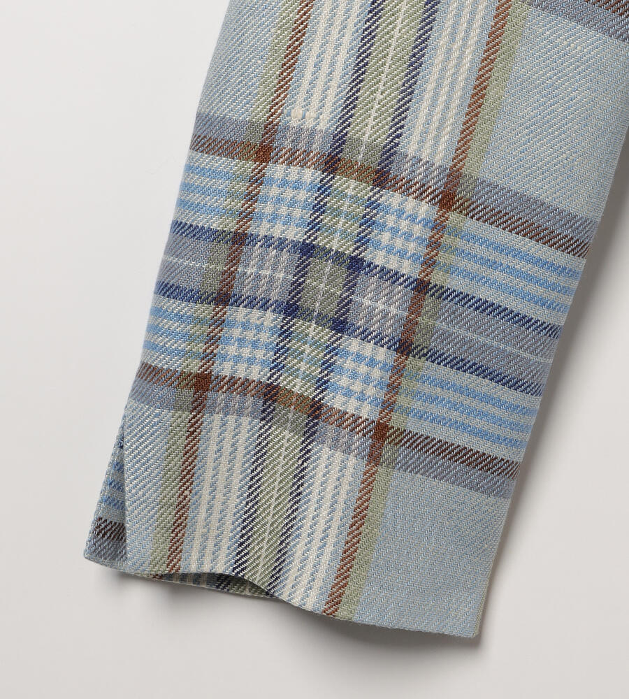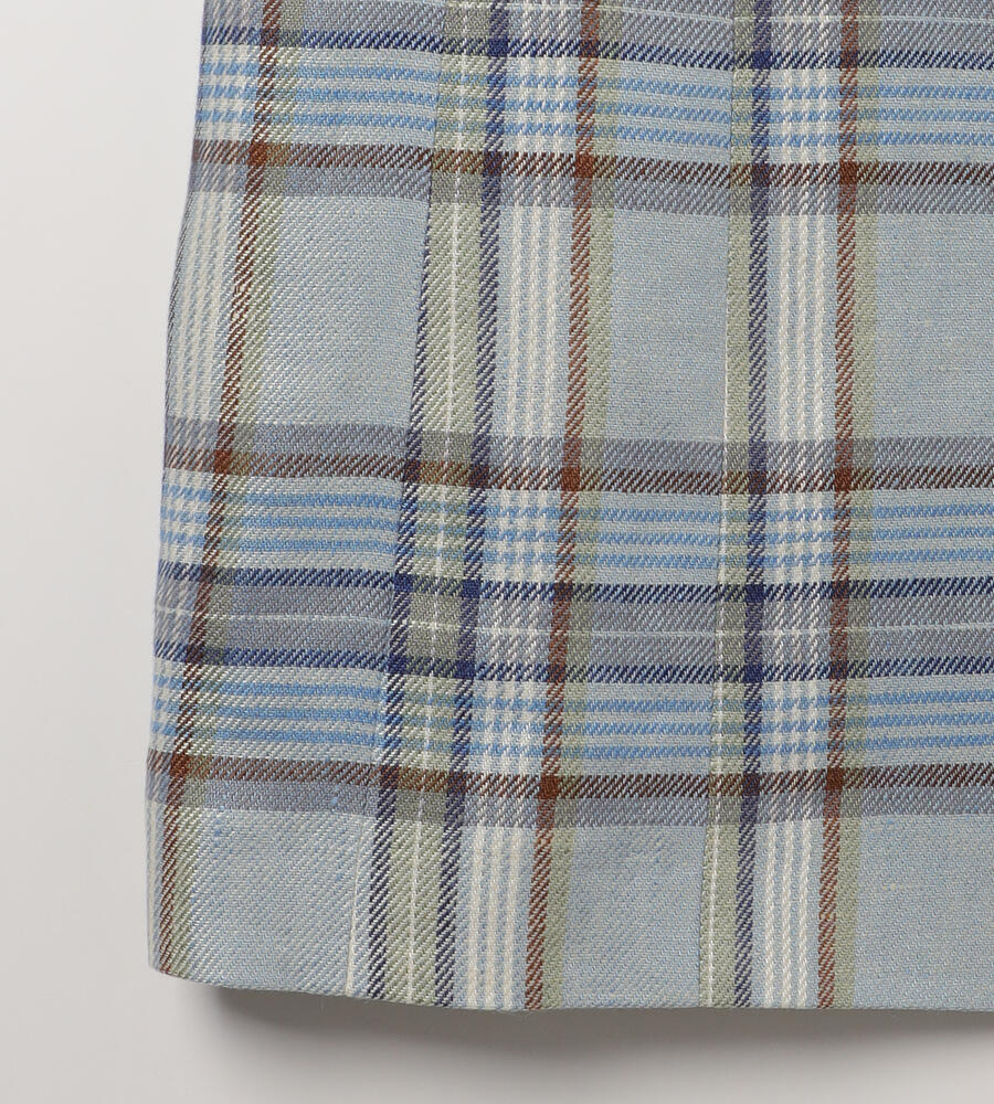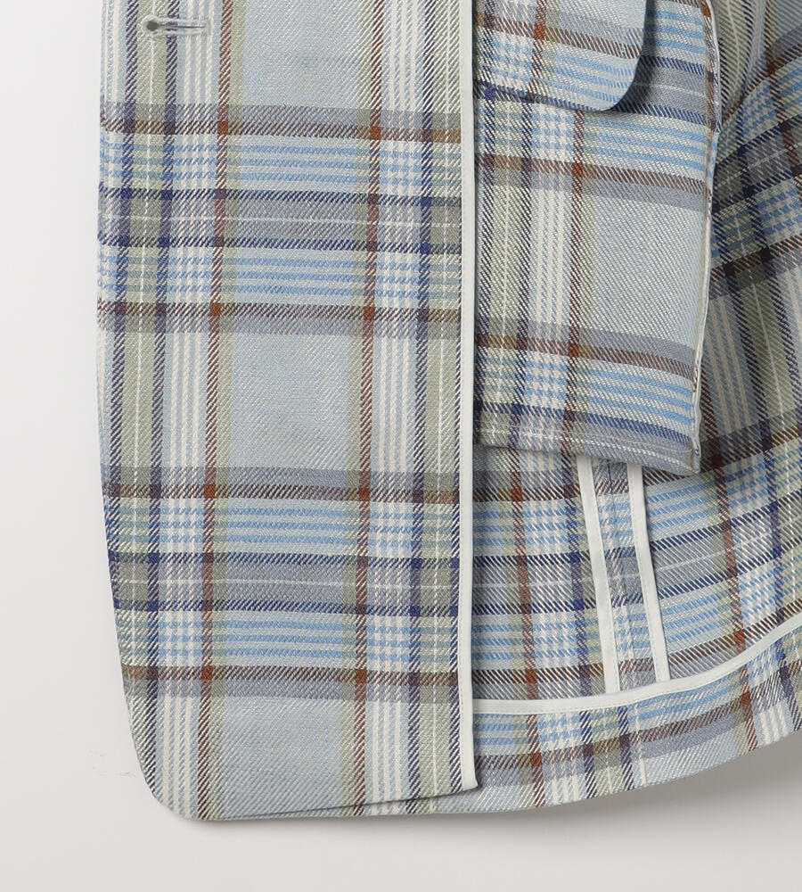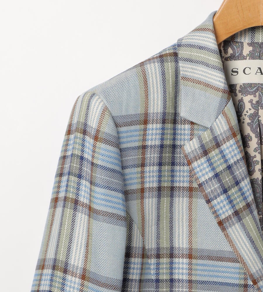 美しいカラー使いのブリテッシュチェックが着こなしの主役にふさわしいジャケット。麻とポリエステルのブレンド素材を採用。フロントにはブランドロゴが刻印されたボタンを4つ並べ、アシンメトリーにポケットが配置されています。腰まわりをカバーする着丈でマニッシュなムードを漂わせた1着。