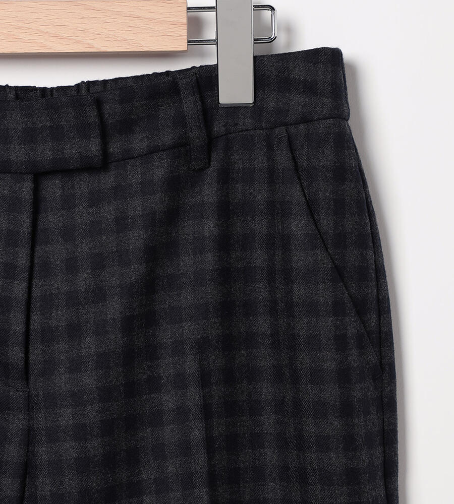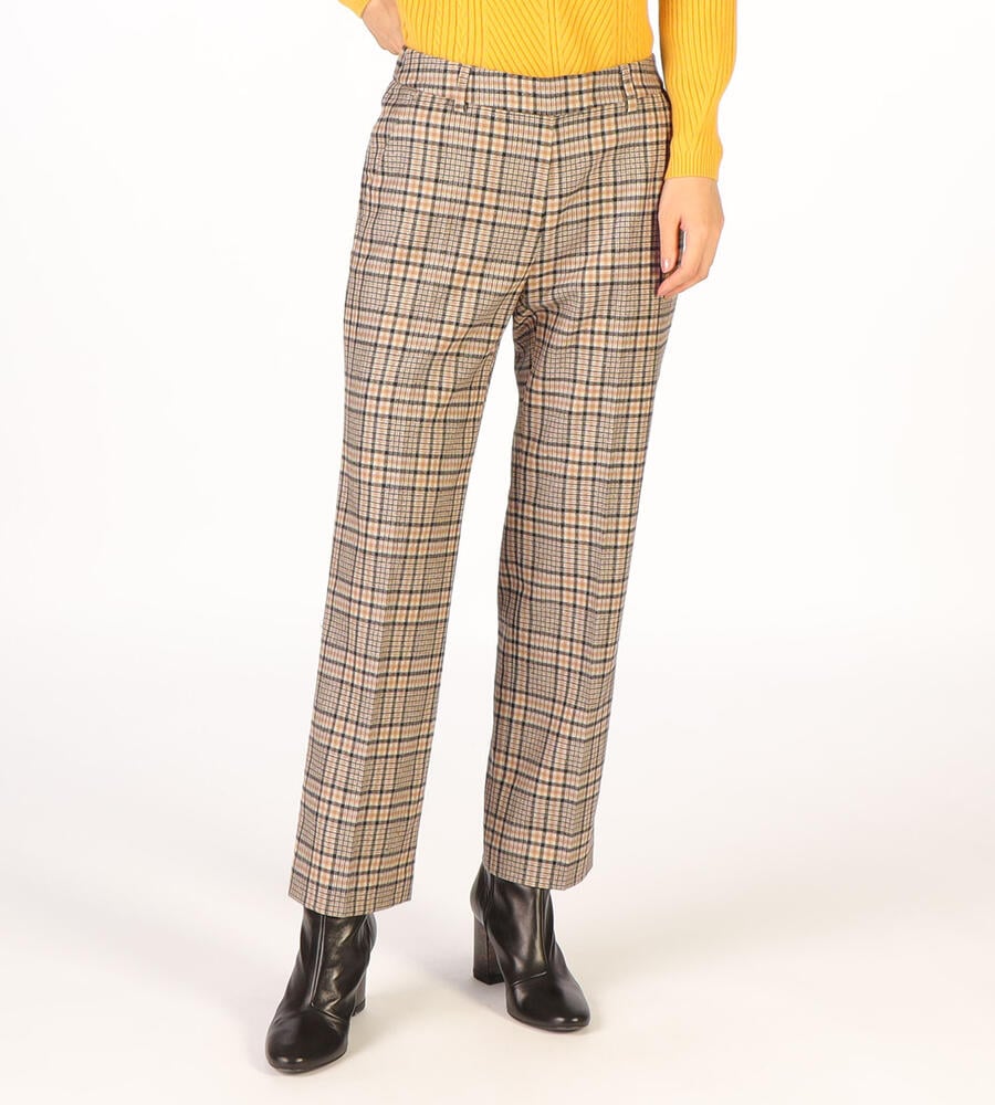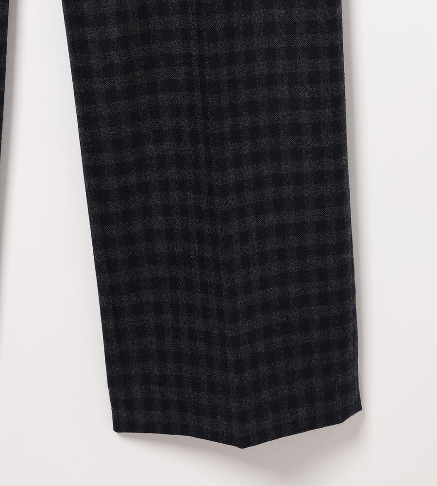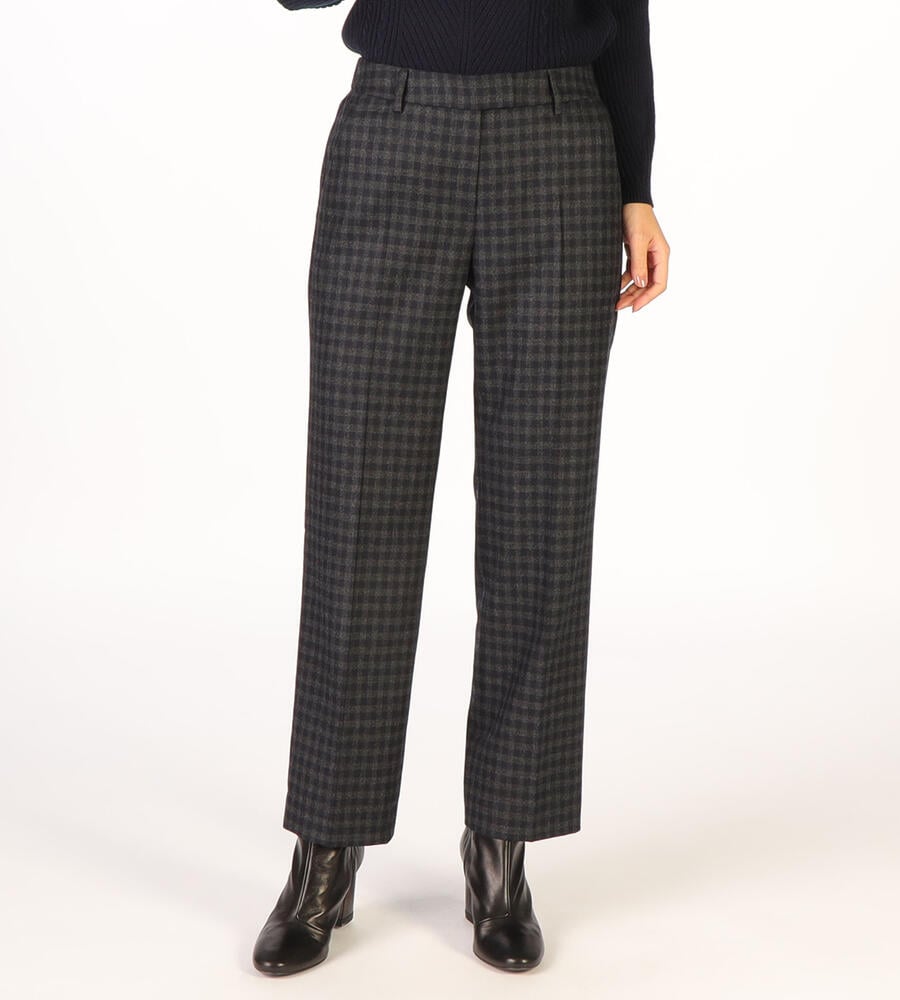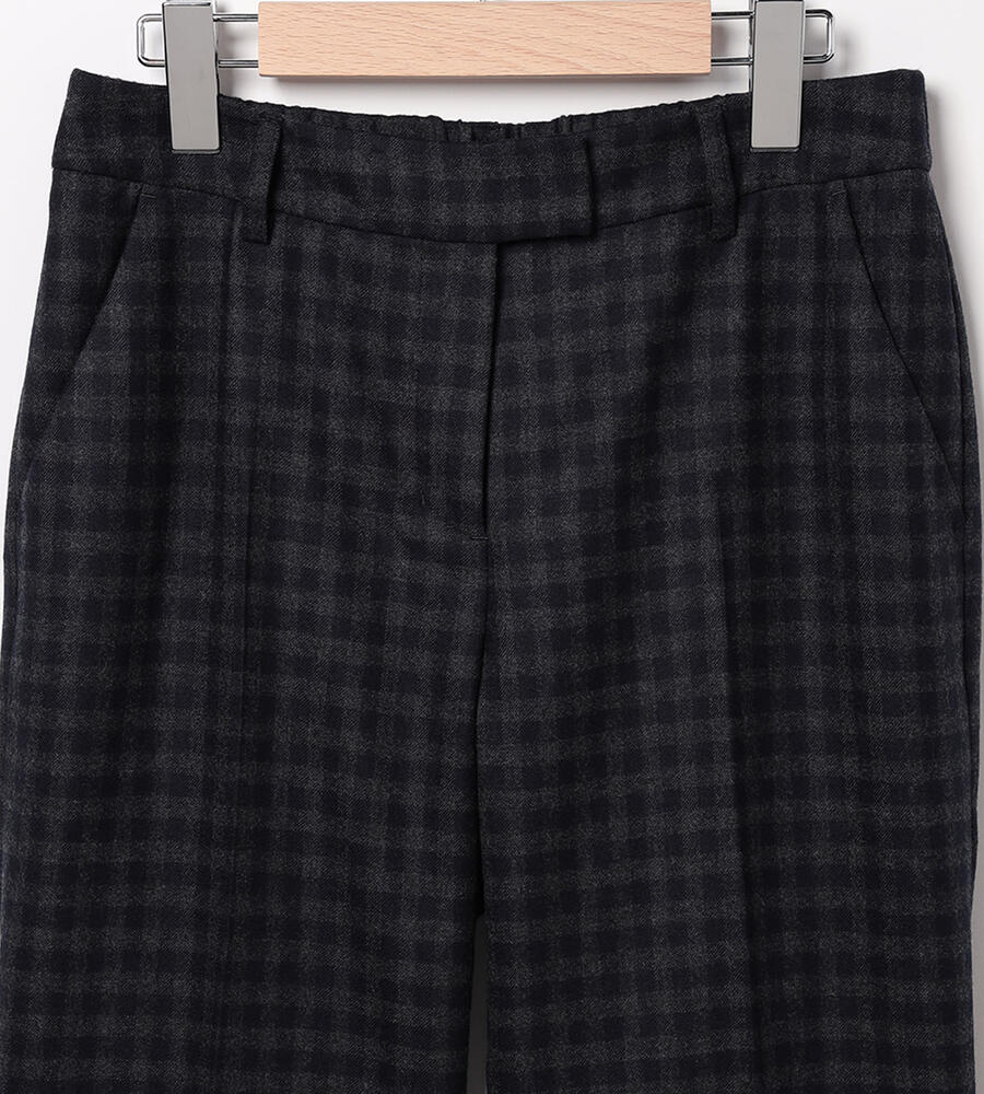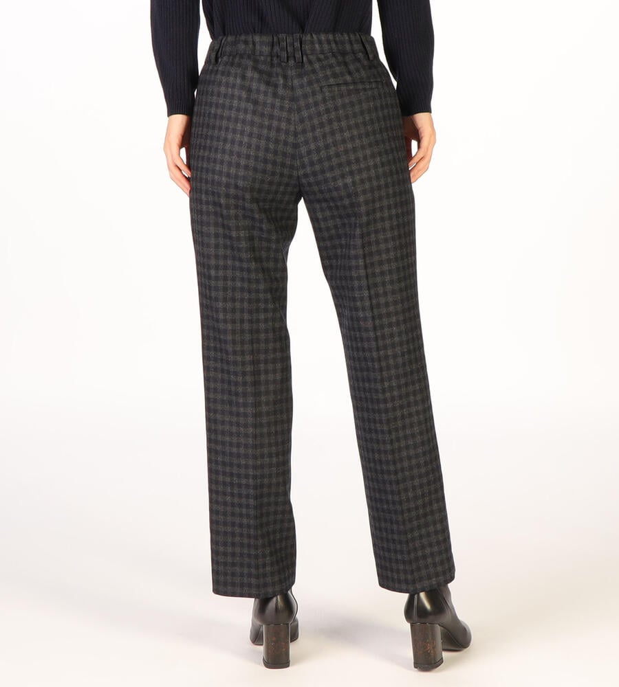 軽くやわらかなフラノ生地で仕立てたパンツ。毛羽感のあるあたたかな生地感が特徴。センタープレス入りでシックなムード。ウエスト後ろ部分はゴム仕様で履き心地も快適。すっきり履きこなしやすいストレートシルエット。チェック柄が着こなしにさりげなくアクセントを与え、秋冬シーズンらしい着こなしが完成します。