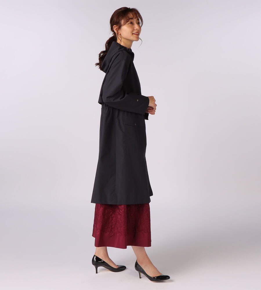 ゆったりと着こなせるコンフォートなシルエットで仕上げたエーデルコート。フロントにフラップポケットを配置。ウエスト内側からコードで絞れる仕様となっており、シルエットの調整が可能になっています。裏地に切り替えたチェック柄がさりげないポイントに。