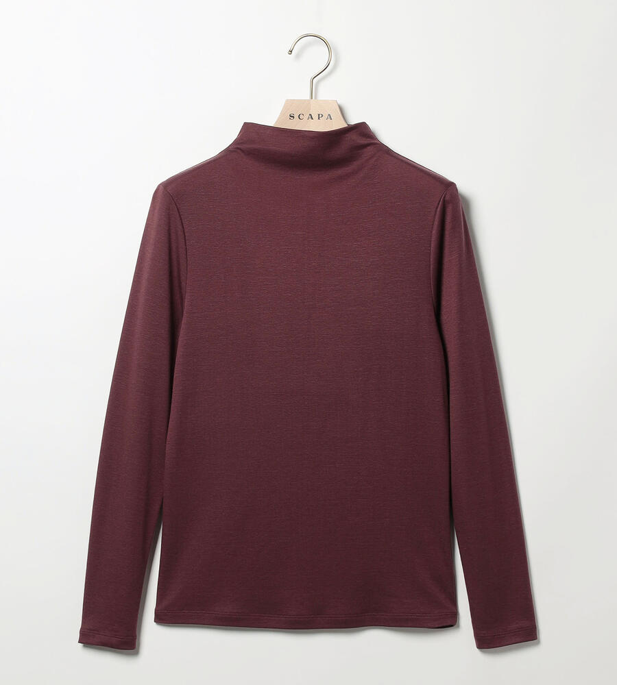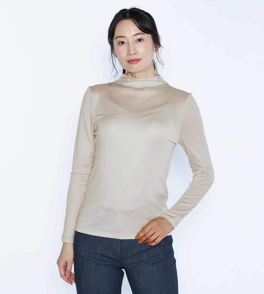 なめらかな肌触りとさりげない光沢感が魅力のブライトジャージ生地で仕立てた長袖カットソー。ボトルネックの首元がトレンド感のあるシルエット。シンプルなデザインで様々なボトムとマッチ。一枚で着るのはもちろん、ジャケットなどにも合わせやすく、重ね着や様々なコーディネートで活躍する便利なアイテムです。