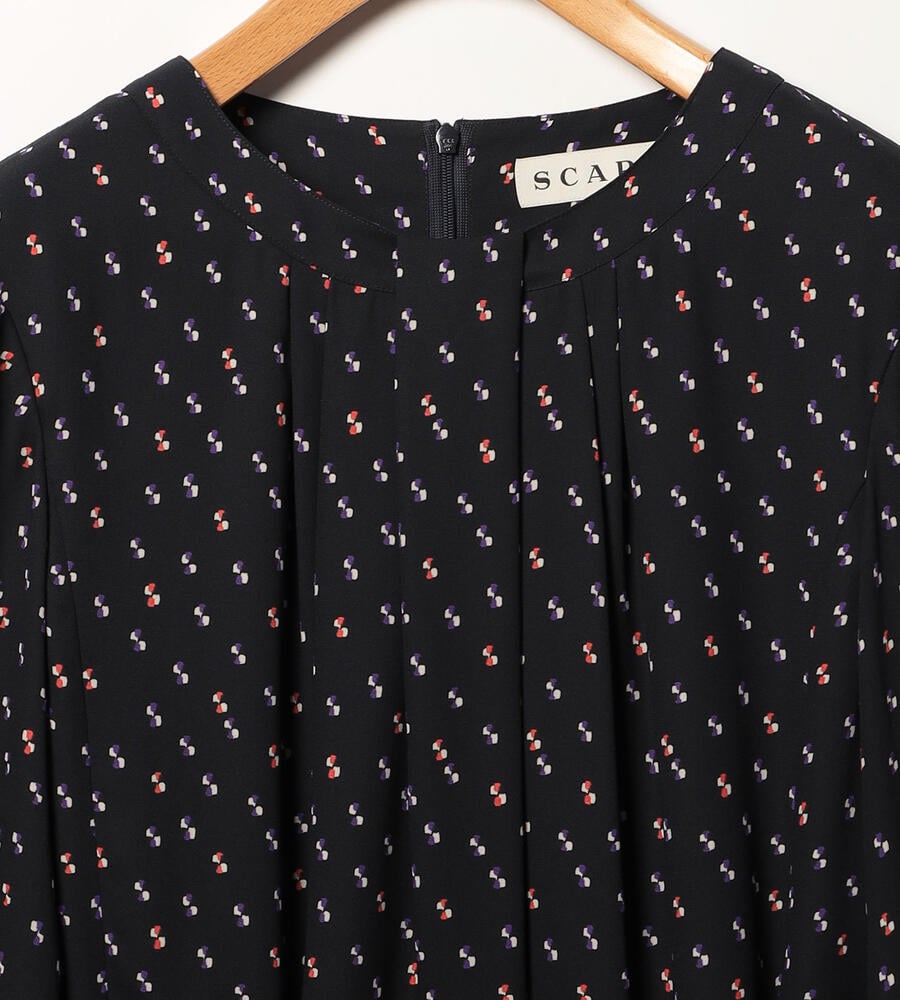 グラフィカルでレトロな雰囲気のドット柄プリントがおしゃれな長袖ワンピース。簡単に取り外し可能なウエストベルト付きで、異なる印象のシルエットを楽しめます。タックを入れた、ドレープ感のあるフェミニンでフレアなシルエットがポイント。一枚でスタイリッシュな着こなしが完成するアイテムです。