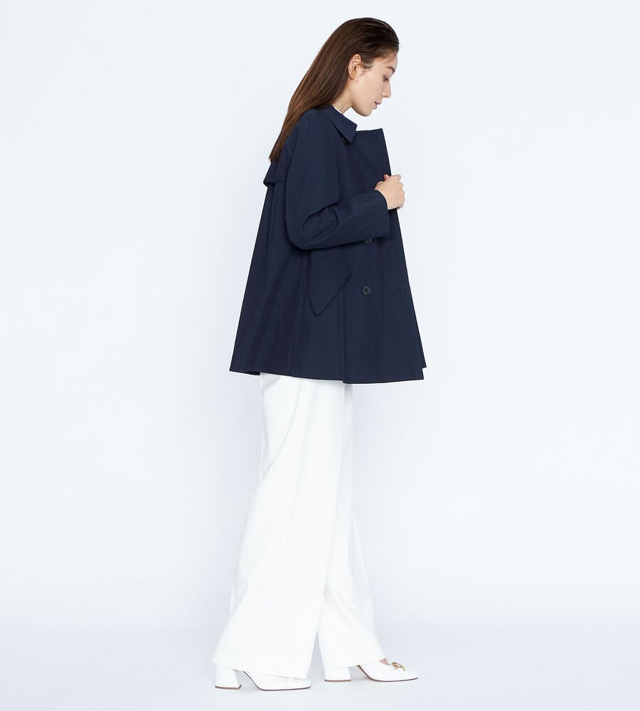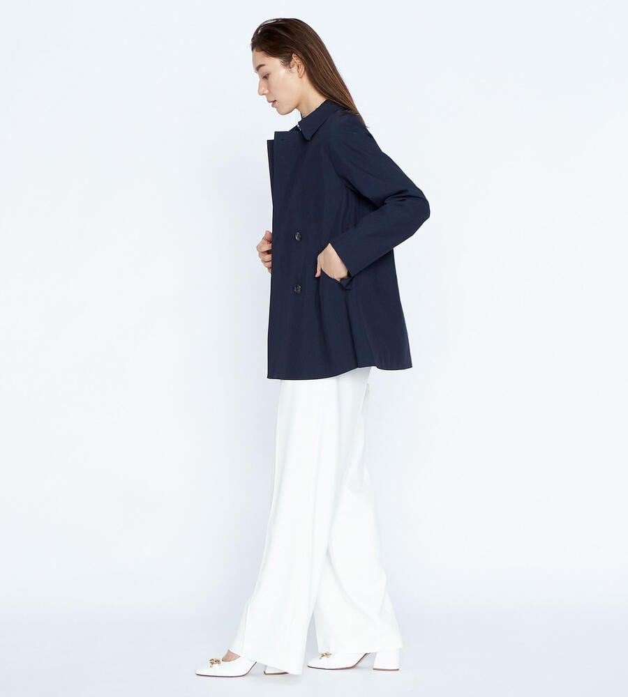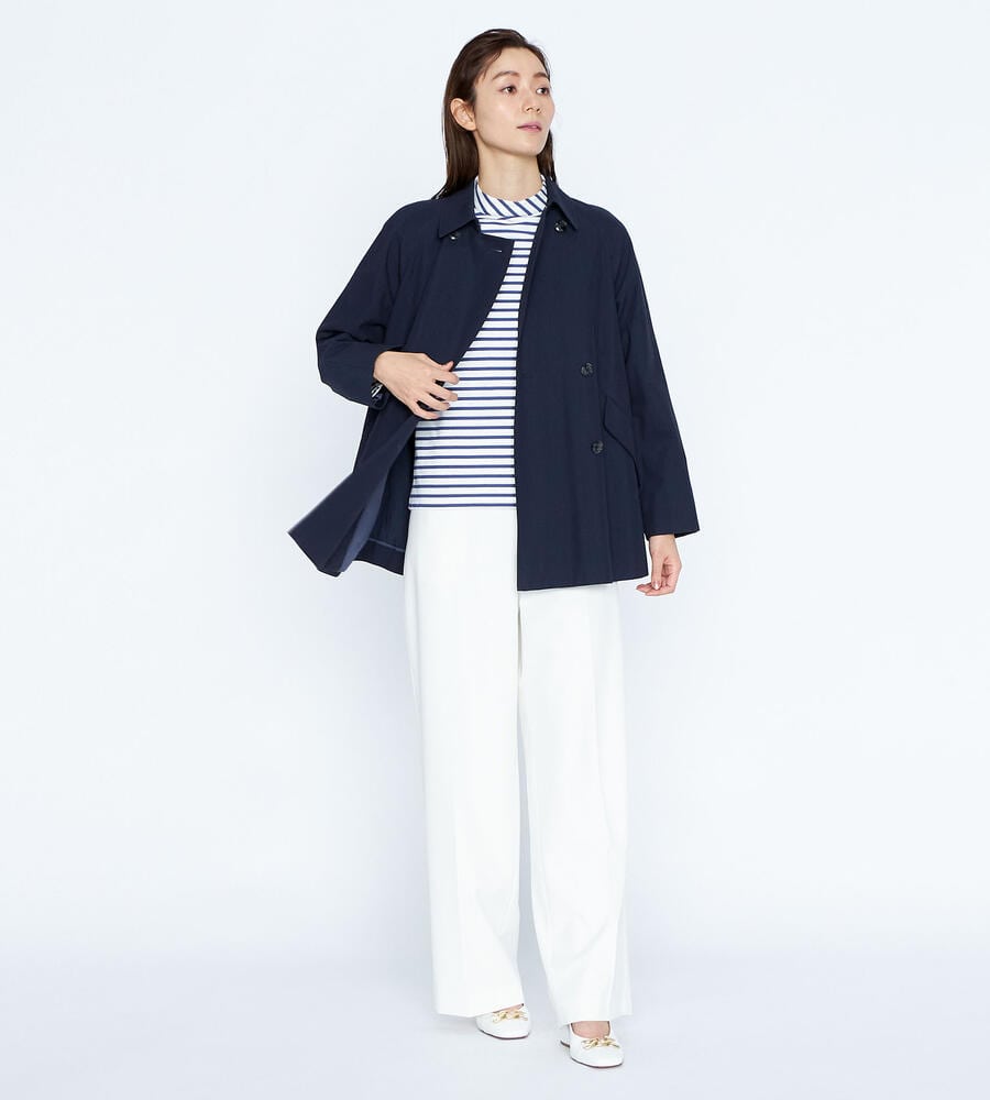 上品な光沢感が魅力のコットンシャンブレー生地で仕立てたコート。ほどよいハリのある素材感を活かしたAラインに広がる、美しいシルエットがフェミニンなムード。飽きのこないシンプル&スタンダードなデザイン。バランスの良いハーフ丈で、オンオフ問わず様々なスタイリングで活躍するアイテムです。