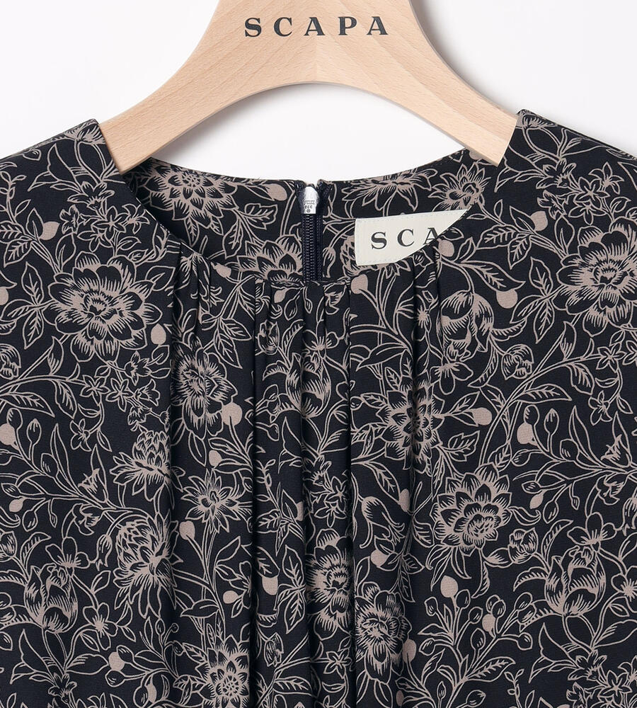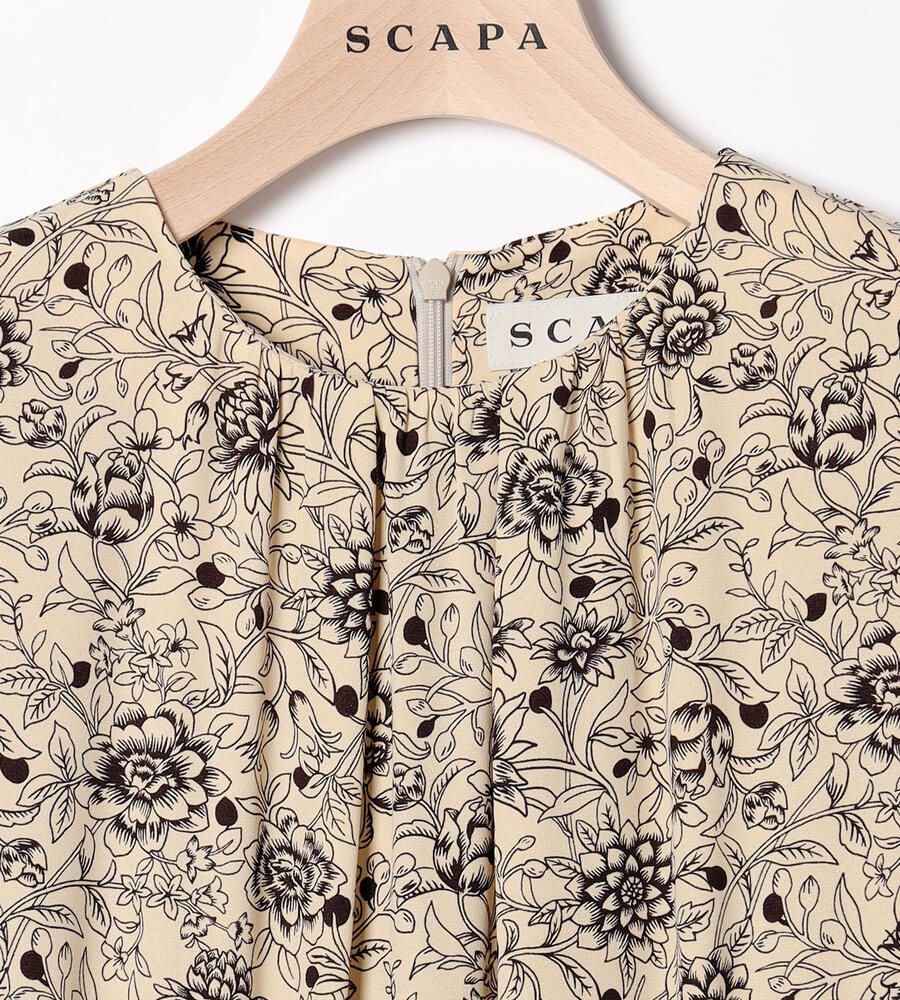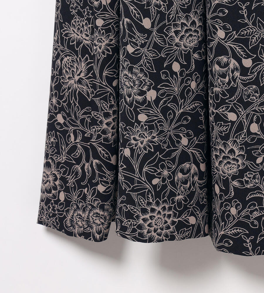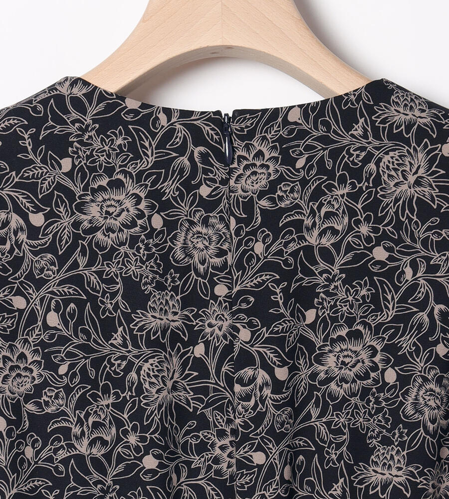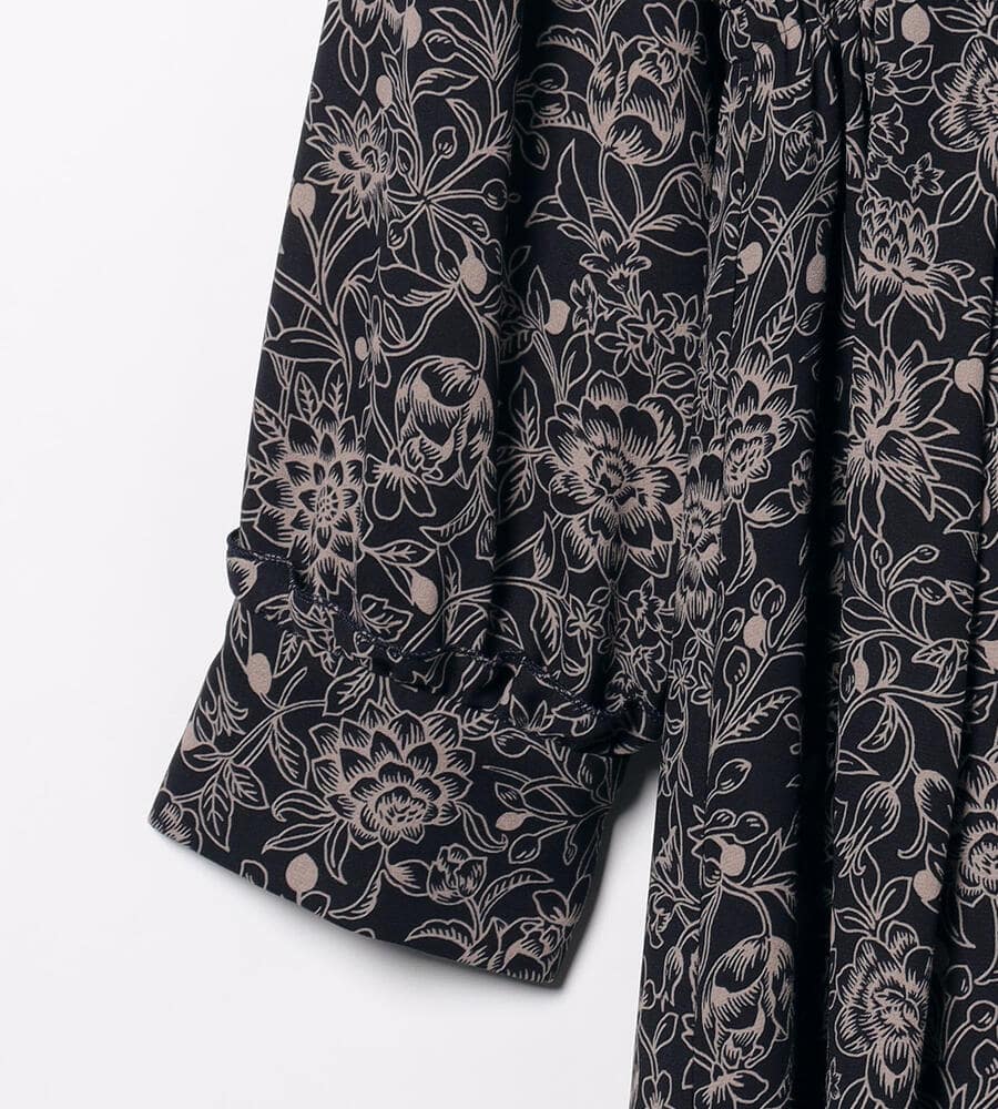 線画でデザインしたフラワープリントの長袖ワンピース。シックな配色やロング丈のデザインで大人のコーディネートに仕上がります。ウエストと袖口の切り替えにはボリューム控えめのフリルをあしらい、女性らしさをさりげなくプラス。存在感があり、1枚でコーディネートが決まるのも魅力のアイテムです。