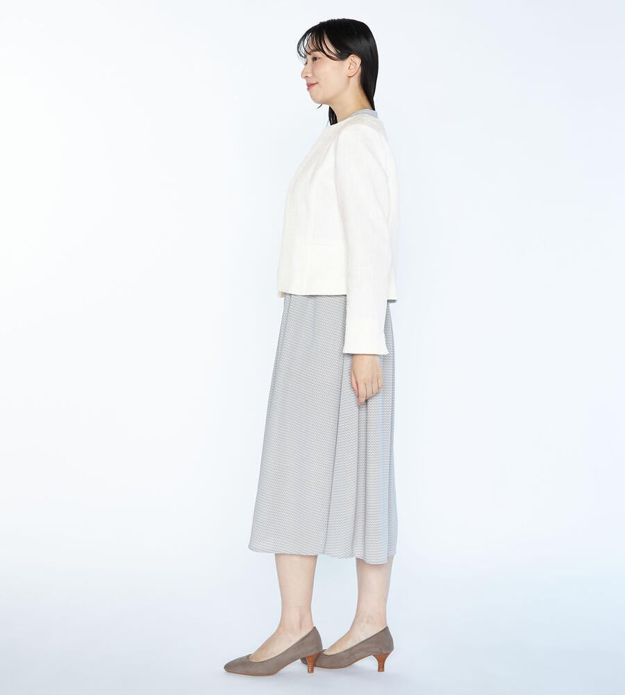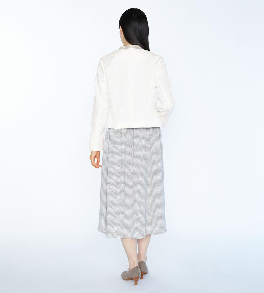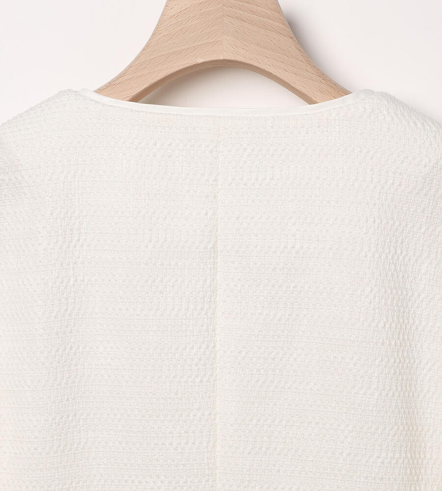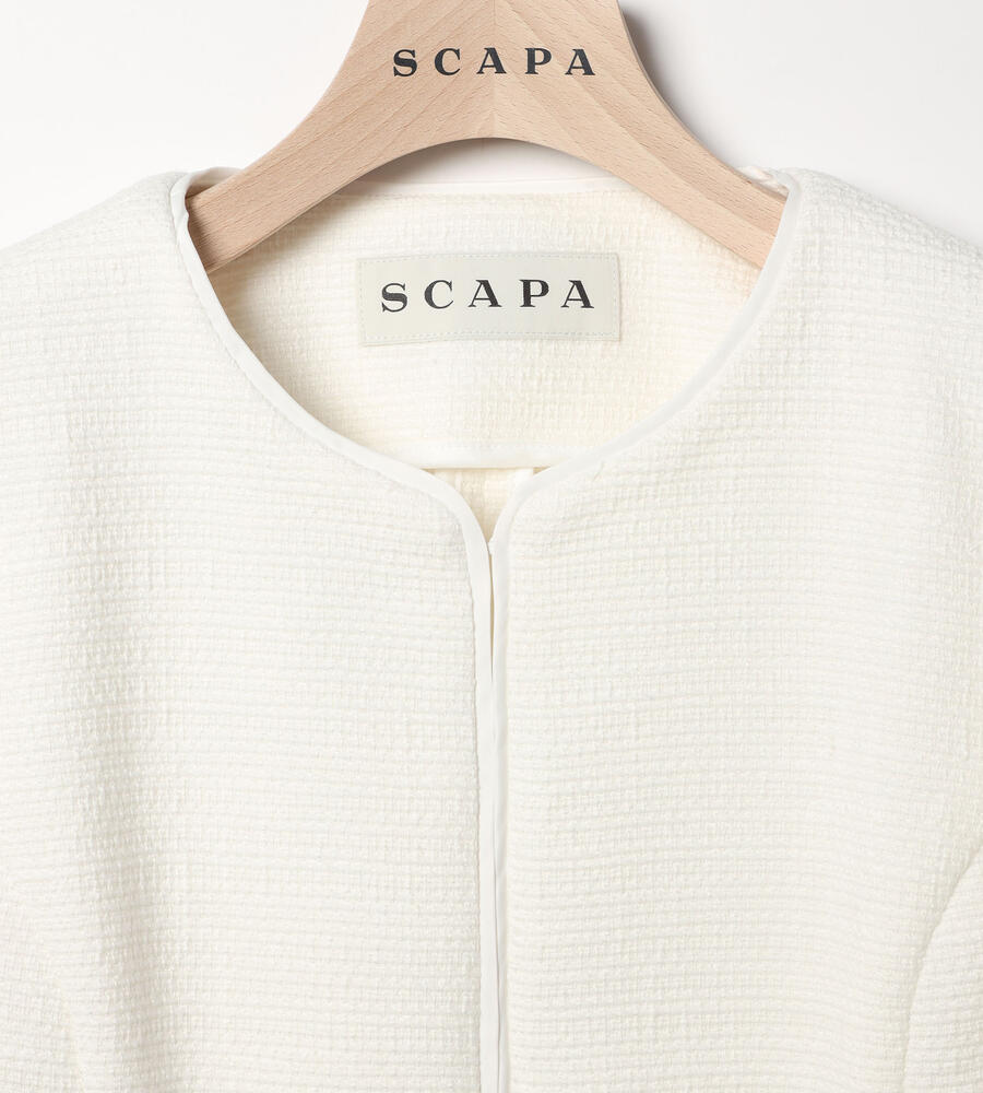 洗練されたルックスと着心地の良さを実現したノーカラーのストレッチツィードジャケット。フロントはボタンレスのデザインでシンプルに仕上げ、左右にはポケットを配置。部分的にテープを切り替えたさりげないこだわりもポイント。コンパクトなシルエットがボトムスとバランスが取りやすくおすすめです。