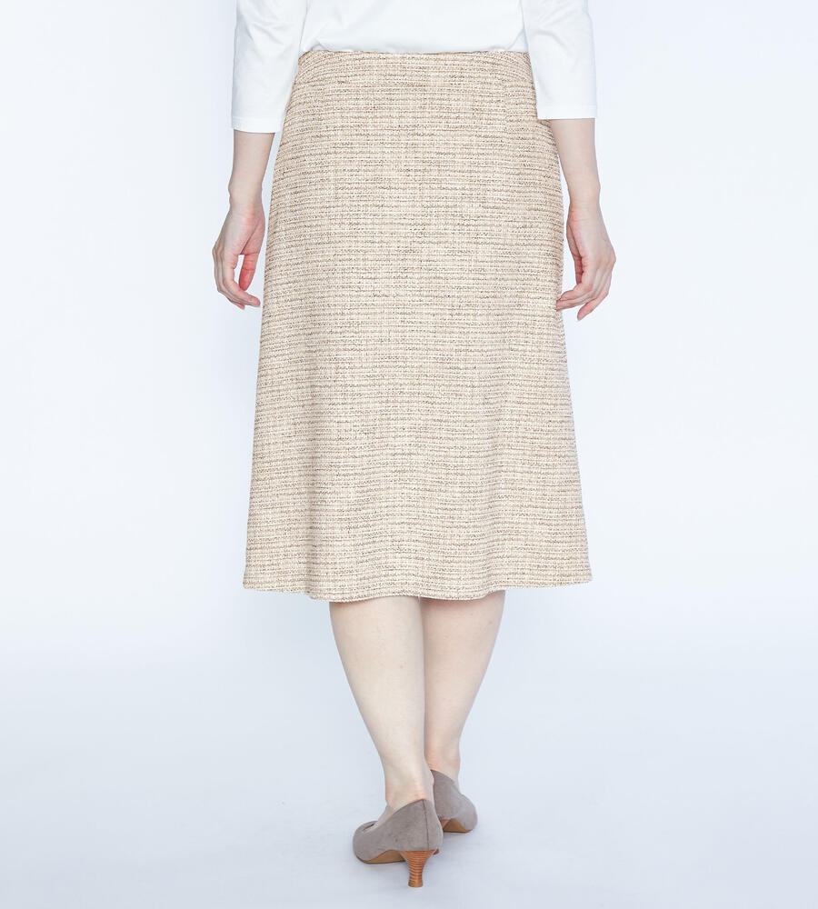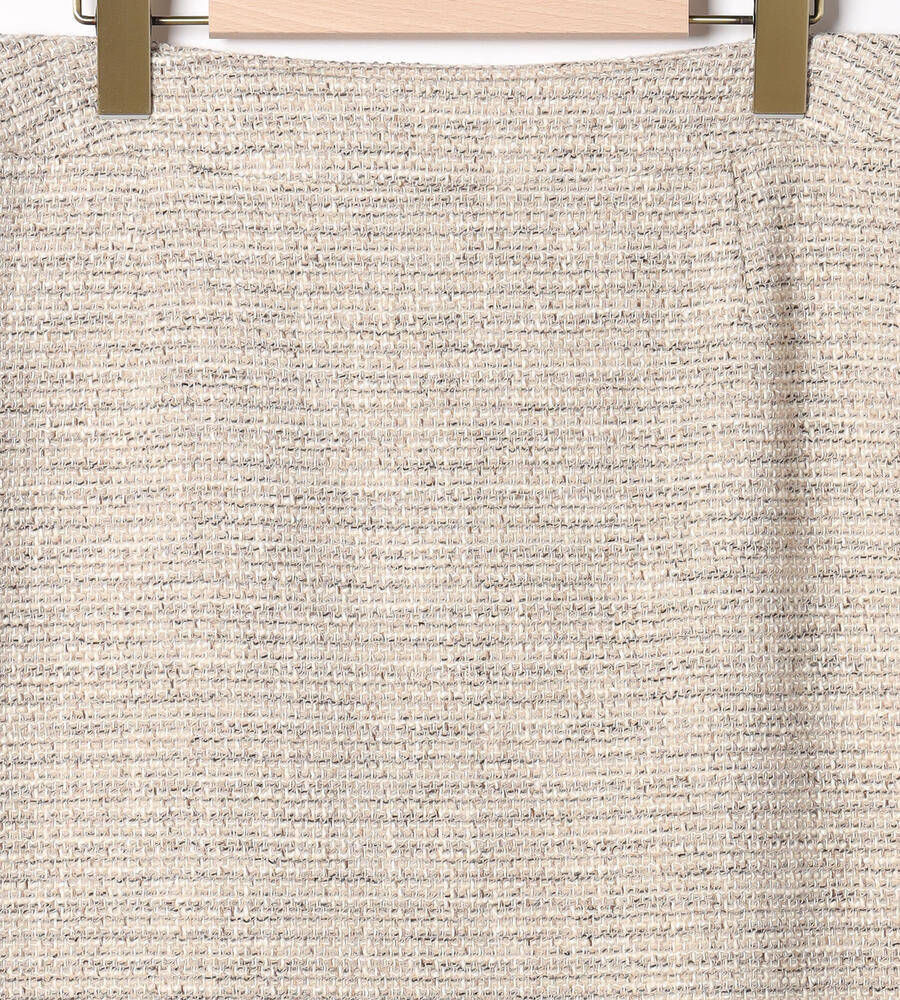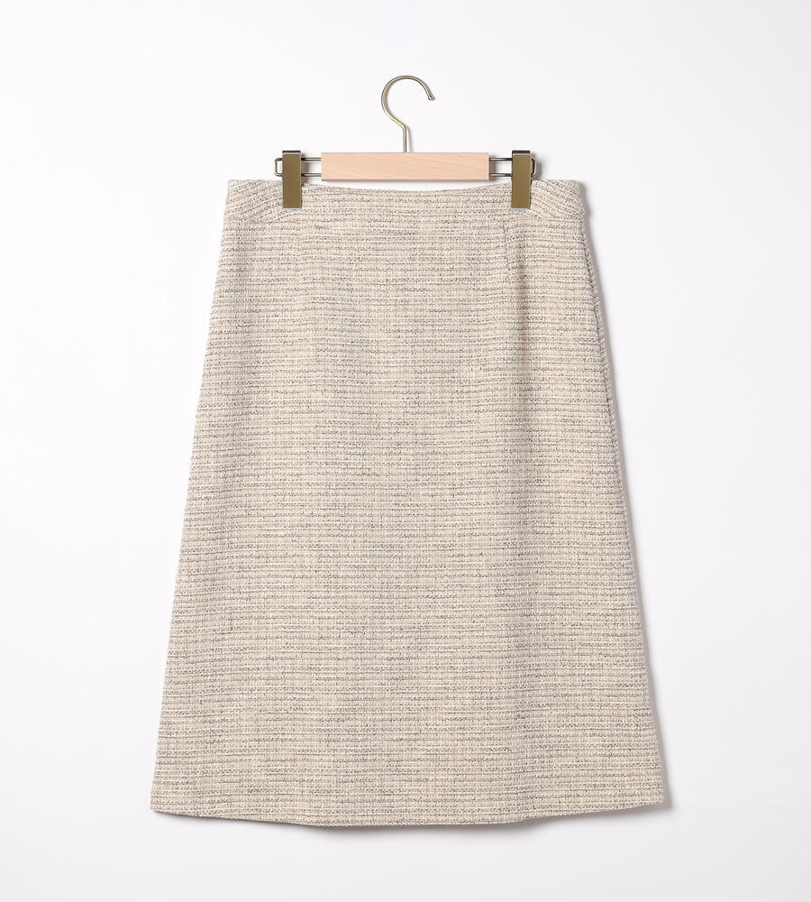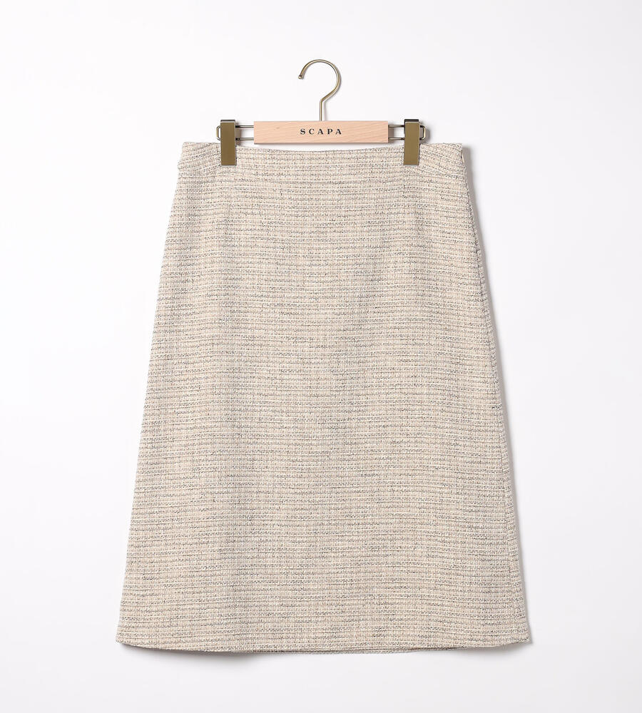 色が入り混じる様で目を楽しませてくれる、ミックスツイード素材のスカート。広がりが控えめな台形型と、膝が隠れる程度の着丈で、淑女の気品を備えた1点です。ツイードながらも起毛感は控えめで、すっきりと着こなせるのもポイント。同素材のジャケットを合わせると、改まったシーンにも最適なきれいめな着こなしが完成します。