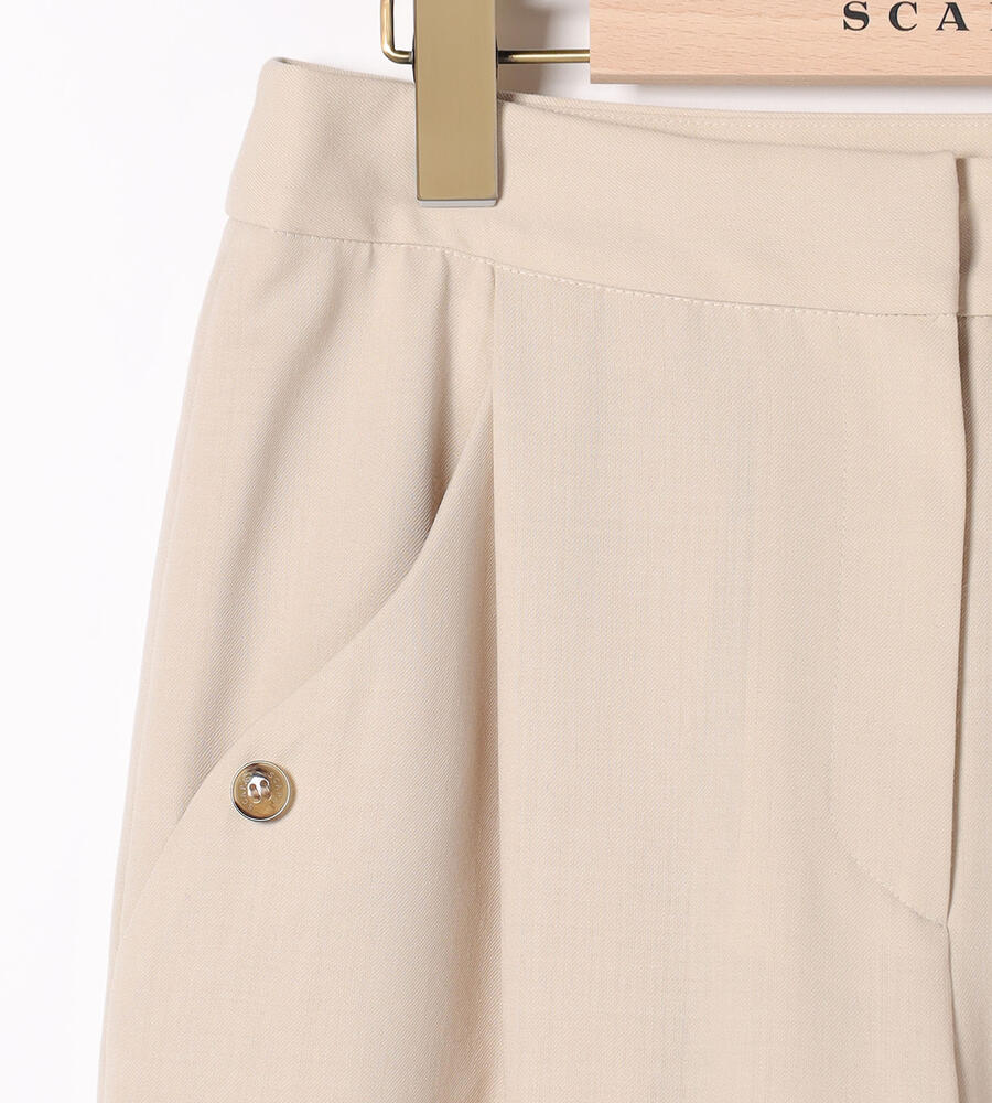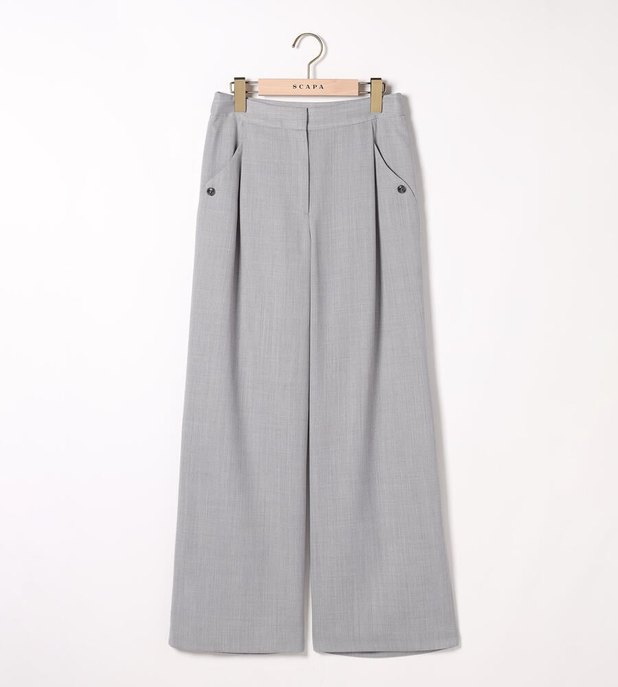 太すぎず細すぎない絶妙なシルエットによる適度なボリューム感のワイドパンツです。スラントポケットに配したボタンがワンポイントを効かせています。普段のスタイリングに取り入れやすいカラーがラインナップ。ストレッチツイル地で快適な穿き心地です。片玉縁のヒップポケットが仕立ての良さを演出。