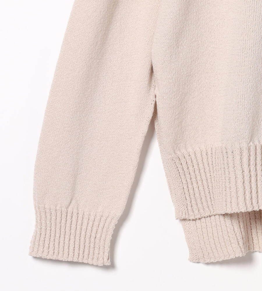 軽やかな生地感の長袖プルオーバーニット。少し大きめのオーバーサイズシルエット、サイドスリットと、前後丈の異なるデザインがトレンドを感じるスタイリッシュなディテール。リブ編みの袖先と裾がデザインアクセント。シンプルなデザインで合わせやすく、毎日のコーディネートで活躍するアイテムです。