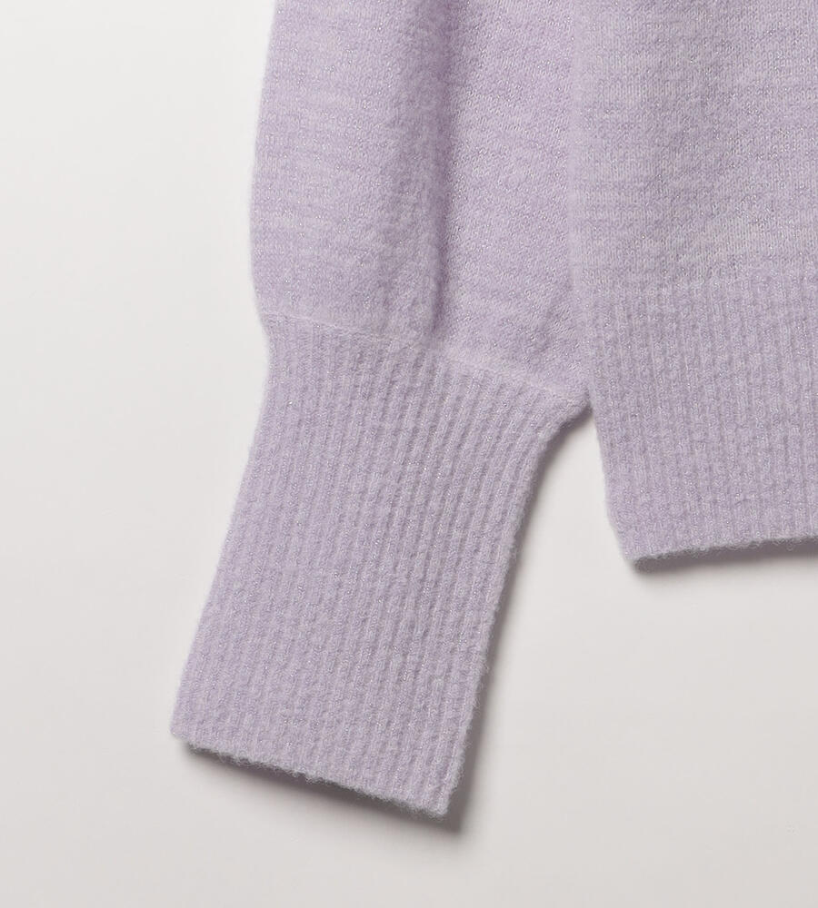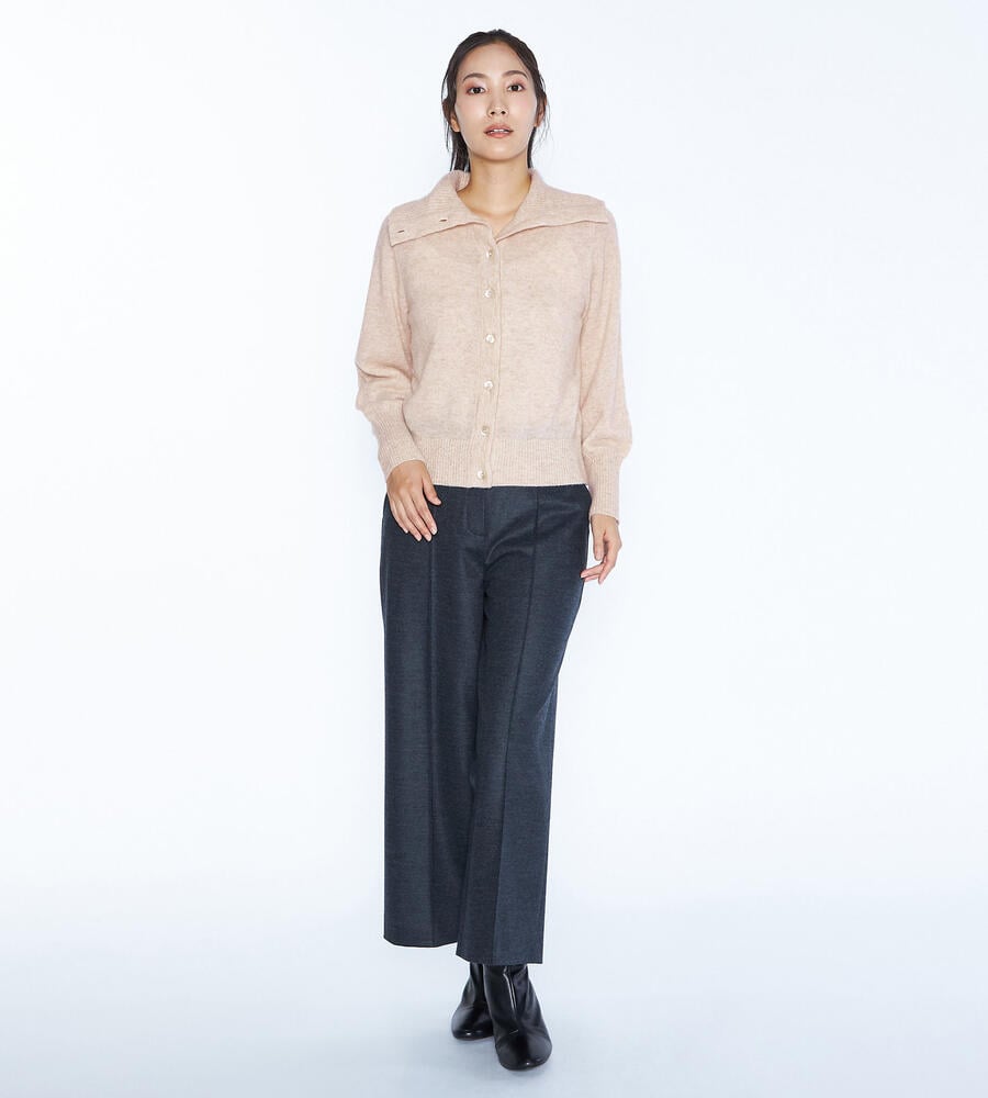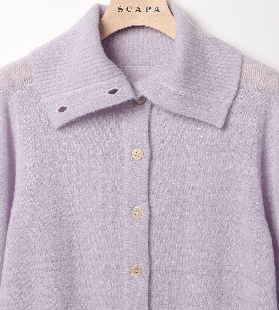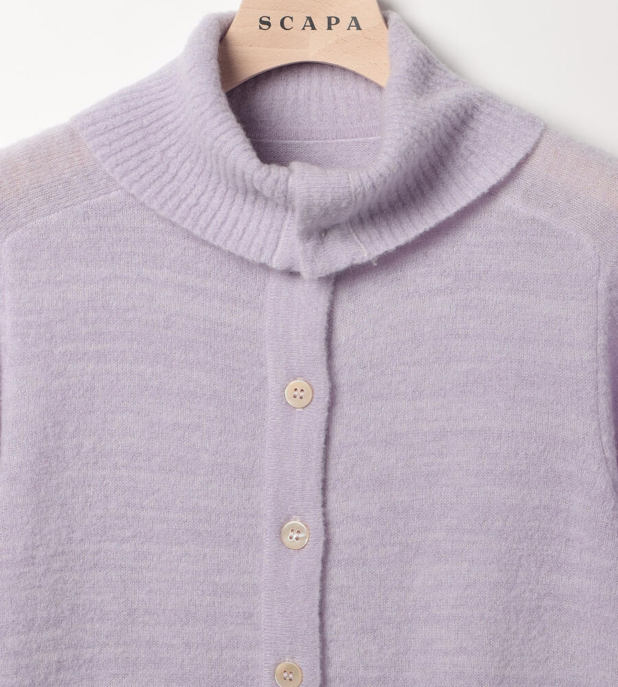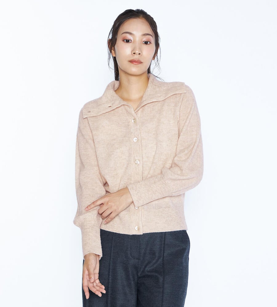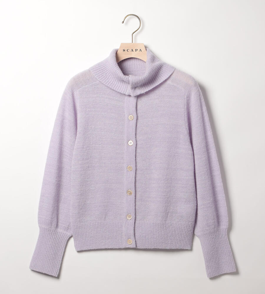 ニュアンスのあるカラーの生地が特徴のニットカーディガン。程よい透け感のある薄手のニット生地は、おしゃれな重ね着コーディネートにぴったり。裾と、袖の長めのリブがシルエットのメリハリあるアクセントに。フロントボタンを全て閉じると、大きな衿のあるニットからハイネックに早変わり。着こなしの幅が広がる一枚です。