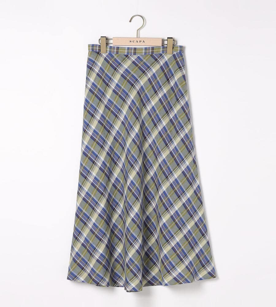 さっぱりとした風合いの麻素材を用いたフレアスカート。マドラスチェックを思わせる、軽やかなチェック柄を用いて、春夏らしいクリーンな印象に仕上げています。ウエストはすっきりと見え、裾にかけて緩やかに広がるシルエット。膝が隠れる程度の着丈で、大人らしい気品とともに楽しめるアイテムです。