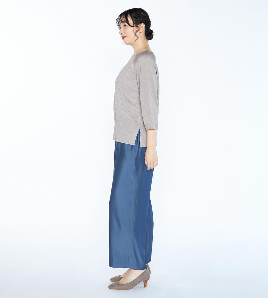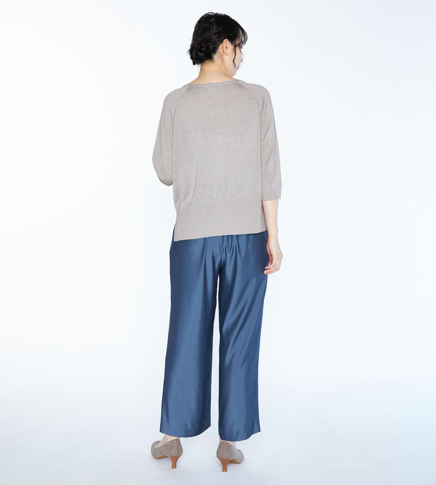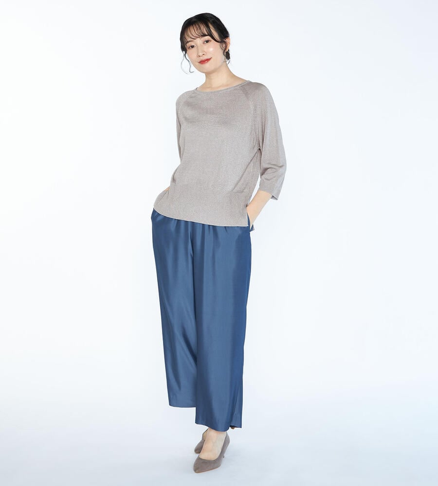 カジュアルエレガントな表情でさらりと着こなしたい、ベアトリスニットプルオーバー。レーヨンとポリエステルのブレンド素材を採用。リラックス感のあるラグランハーフスリーブ、裾をワイドリブで仕上げています。サイドにスリットを施しウエストまわりにゆとりを取り入れたコンフォートなムードが魅力です。