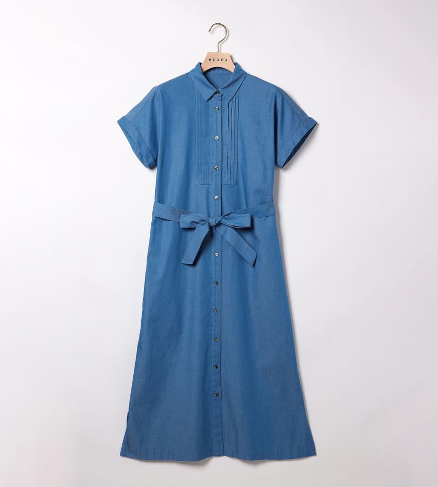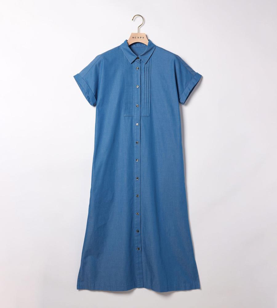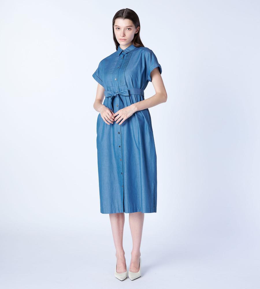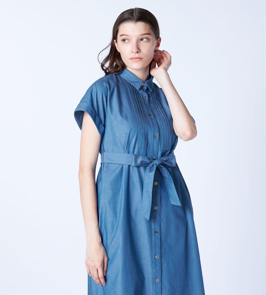 夏のお出かけに最適なダンガリー生地のシャツワンピース。さらりとした質感と微光沢感が品の良さを漂わせ、カジュアルな印象になりすぎない一着です。クラシカルなピンタックやフレアシルエットもデザインのポイント。共布リボンは着脱が可能なため、気分やシーンに合わせてスタイリングアレンジが楽しめます。