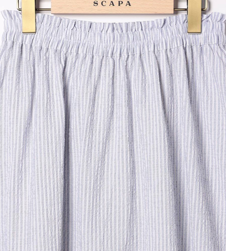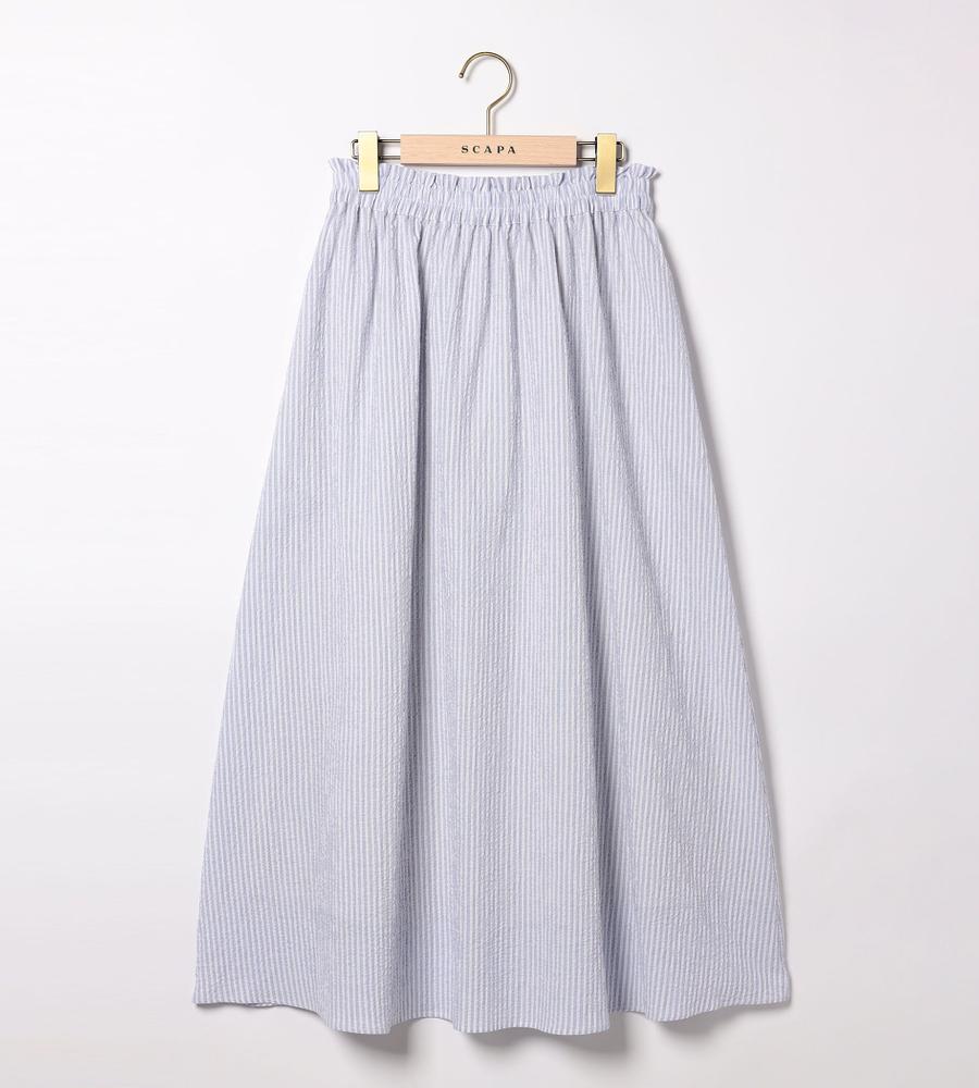 爽やかで夏らしいサッカーストライプ生地のスカート。シンプルなデザインながら、ふんわり広がるフレアシルエットがコーディネートをフェミニンに彩ります。ゴムギャザー仕様のウエストで穿き心地がよく、着脱もスムーズ。きれいめにもカジュアルにもスタイリングでき、幅広いシーンに活躍する一着です。