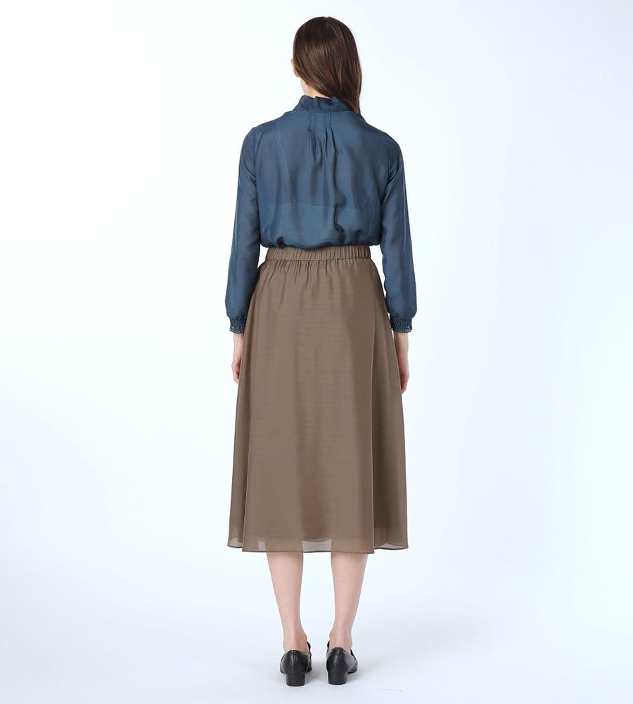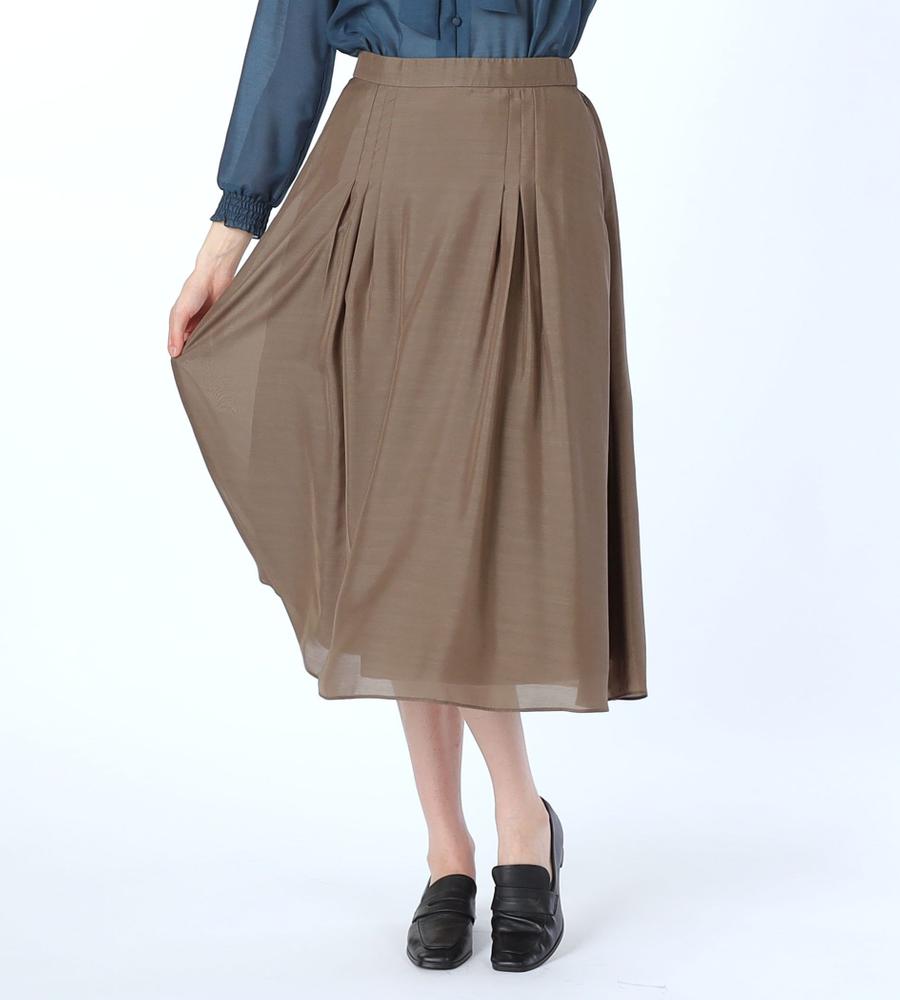 さりげない艶感と上品な発色が魅力のフレアスカート。シンプルなワンツーコーデも、レディライクに仕上げてくれるのがうれしい。落ち感のあるシルエットがレッグラインをカバーするため、スマート見えするのもポイントです。
