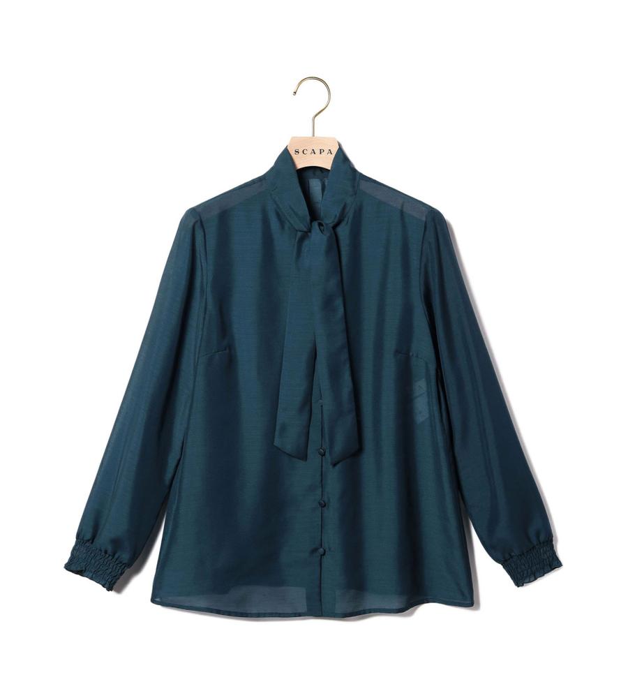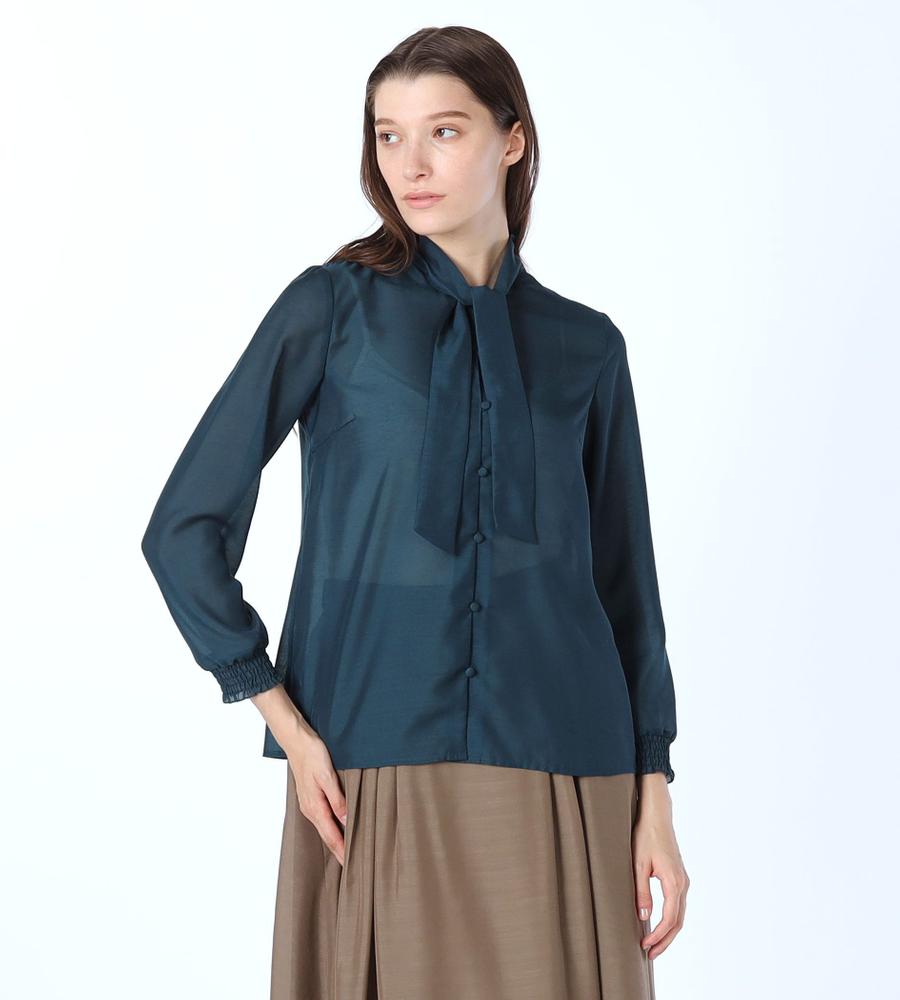 ウィークデイから改まったお出かけまで活躍するボウタイブラウス。微光沢のある上品な生地が、顔まわりを引き立たせるポイントに。くるみボタンやギャザーの入った袖口など、愛らしいディテールも魅力です。