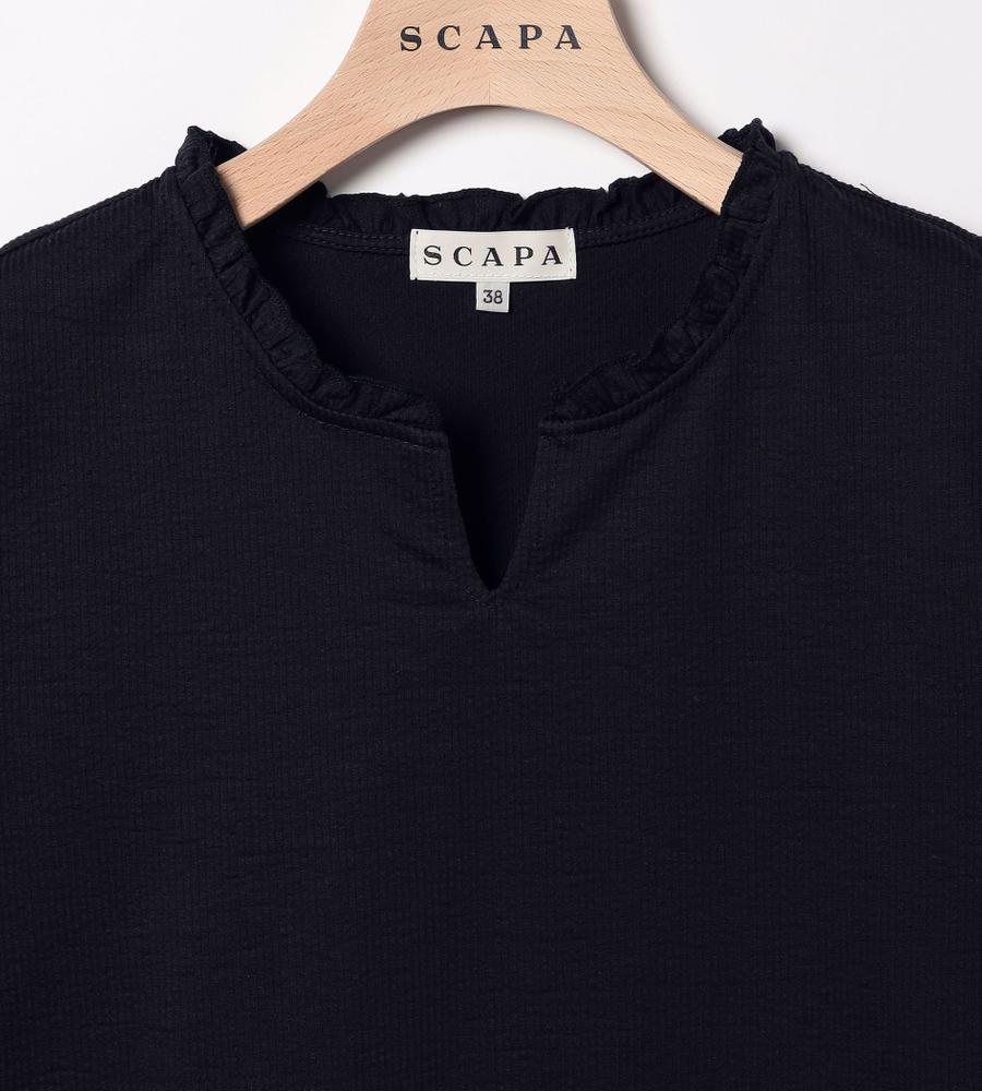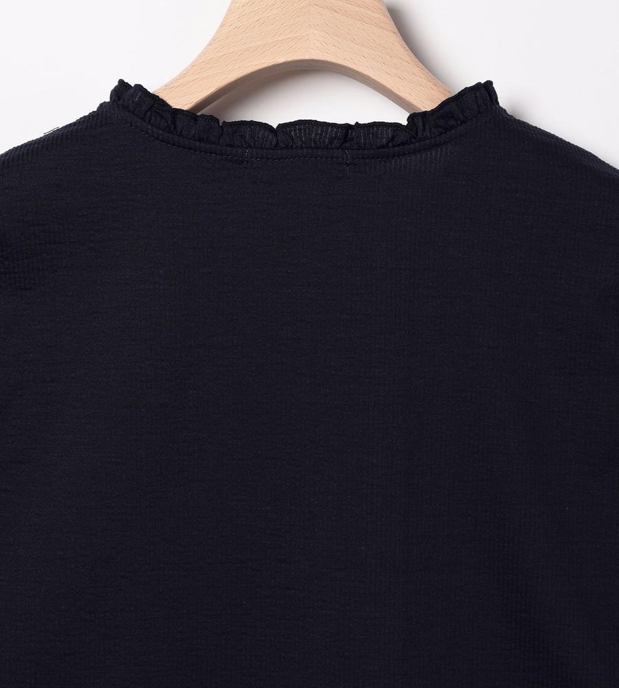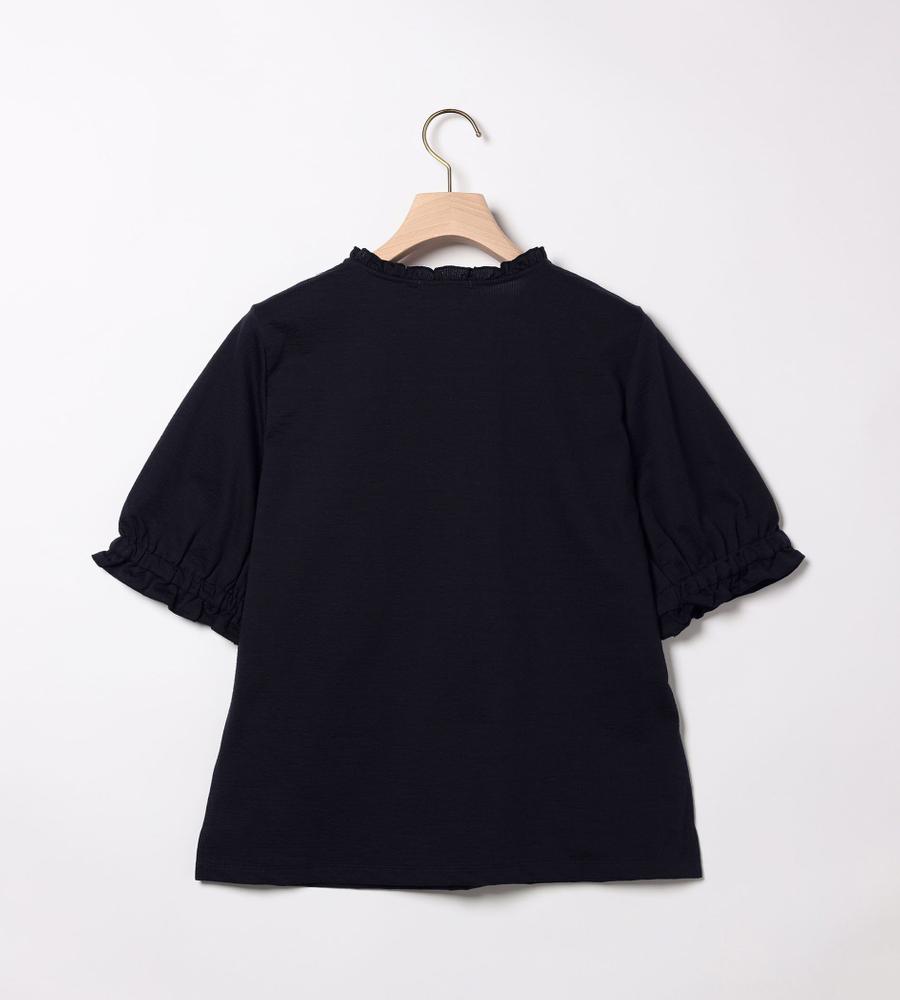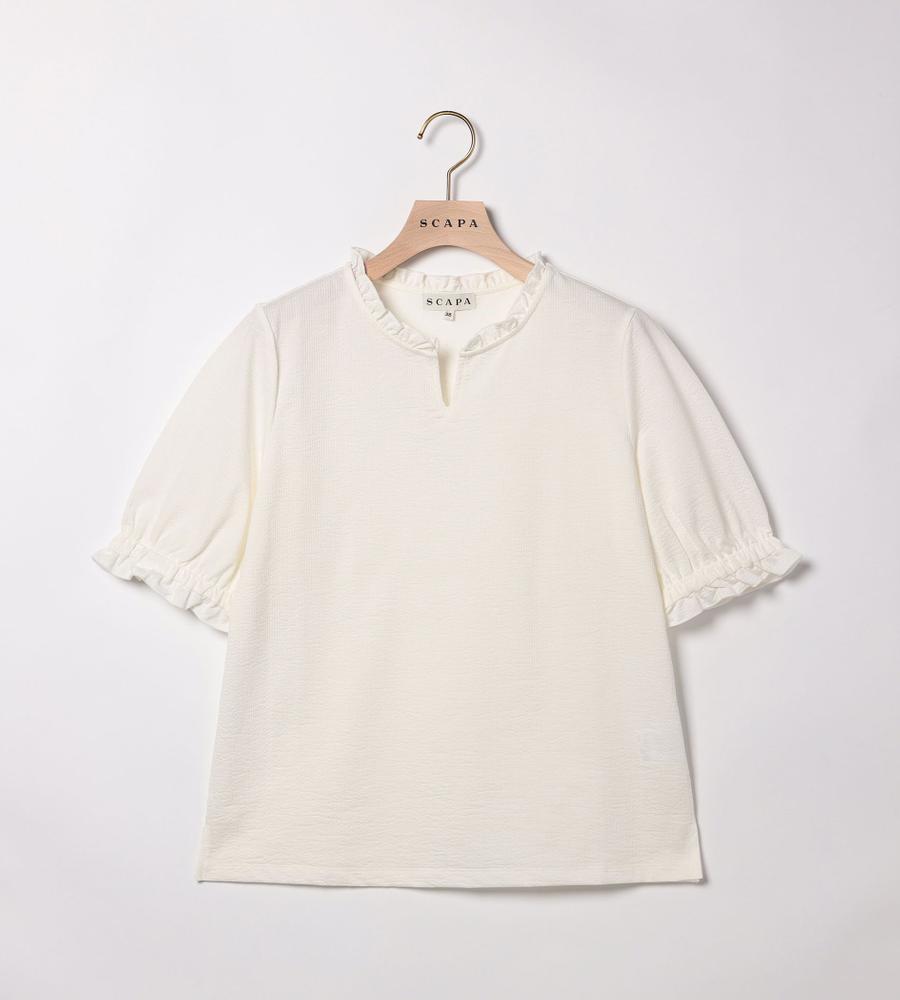 上品で涼しげなコットンリネン生地のカットソーです。首元にスリット、袖口にギャザーを入れており、フリルのような首元や袖口が可愛らしい印象。シボのある独特な素材感もコーディネートのアクセントになってくれます。シンプルな無地で合わせるボトムを選ばず、様々な着こなしに活躍するアイテムです。
