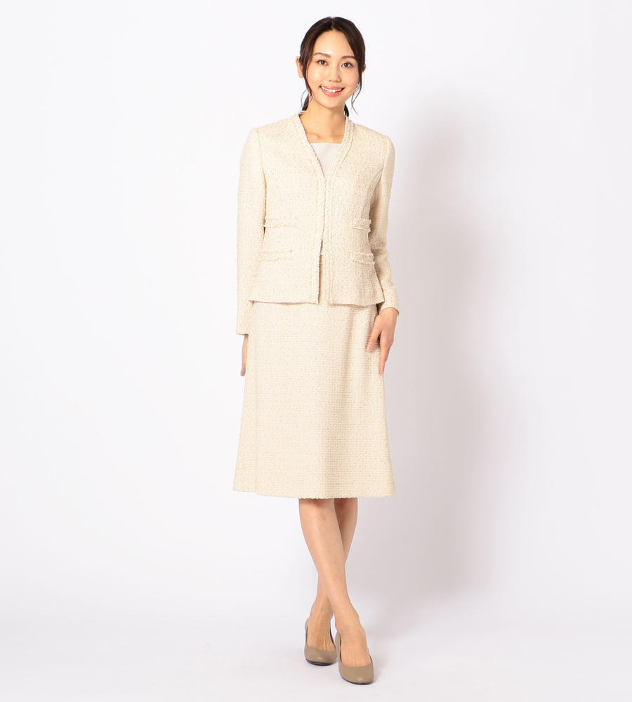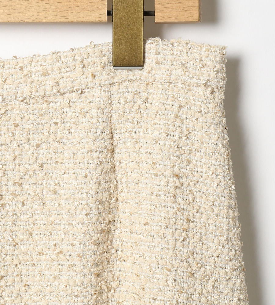 味わい深い独特の表情を見せる、肉厚なツイード生地を使用したスカート。裾に向かって緩やかに広がりをもたせた、動きのある美しいAラインシルエットが女性らしいエレガントな印象を与えます。上品かつシックなカラーでデザインしているので、さまざまなコーディネートに取り入れやすくなっています。