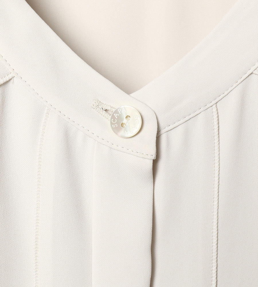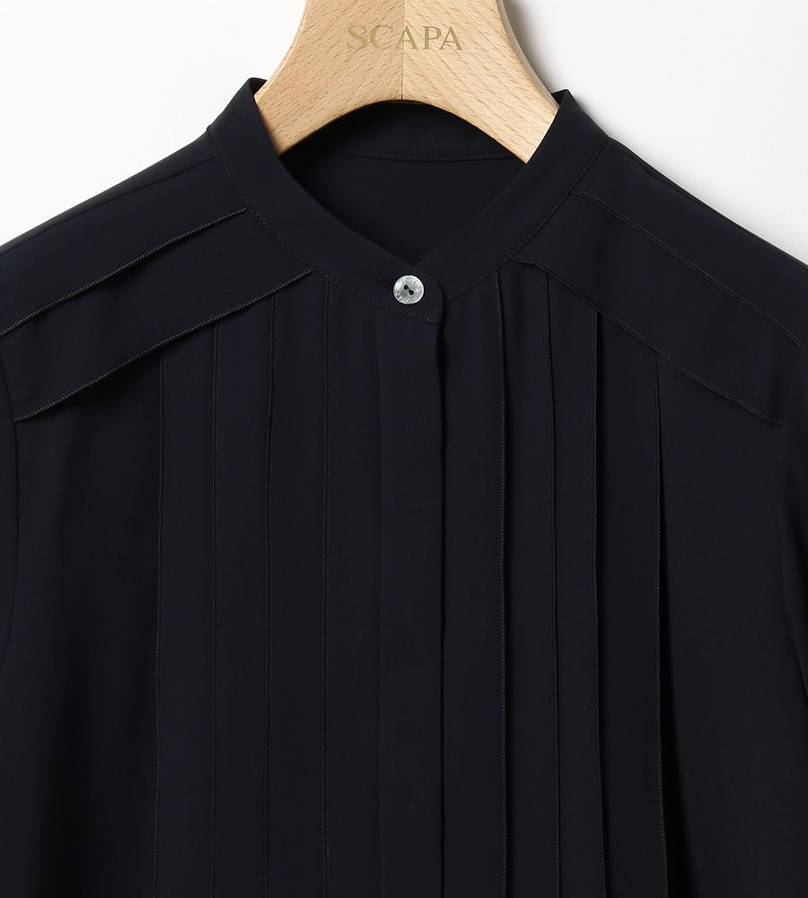 フロントのタック使いで、ノーブルな雰囲気に仕上がった長袖ブラウスです。ふわりと軽い素材感で、長いシーズン着まわせるアイテム。上品さを備えていて、お出かけシーンはもちろん、フォーマルにも対応します。タックがアクセントとなるため、ジャケットやカーディガンのインにも最適です。