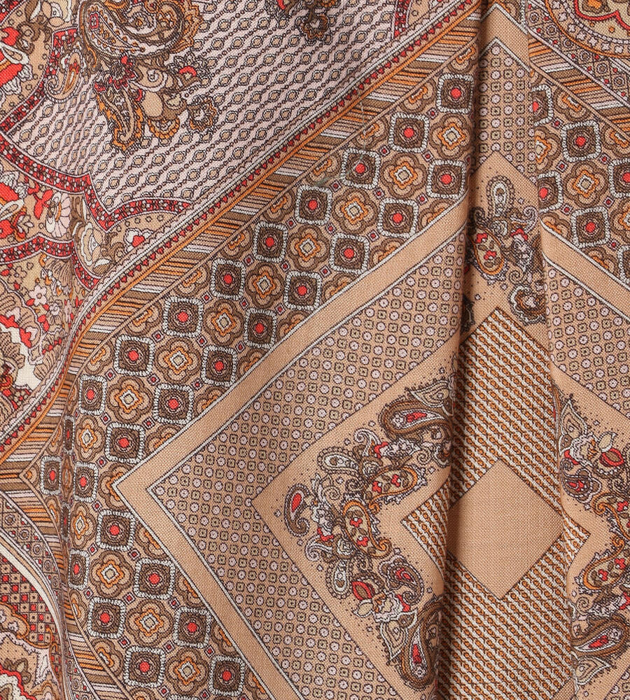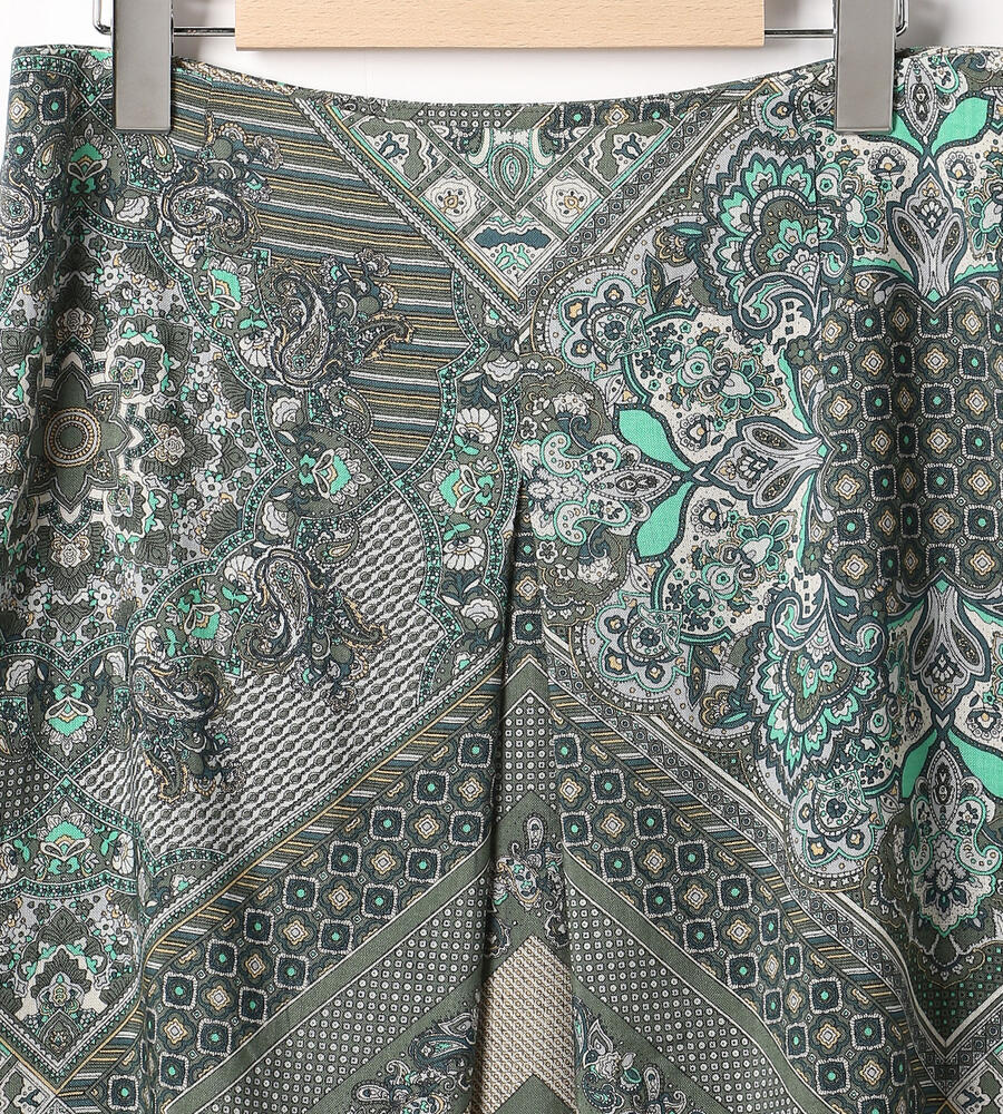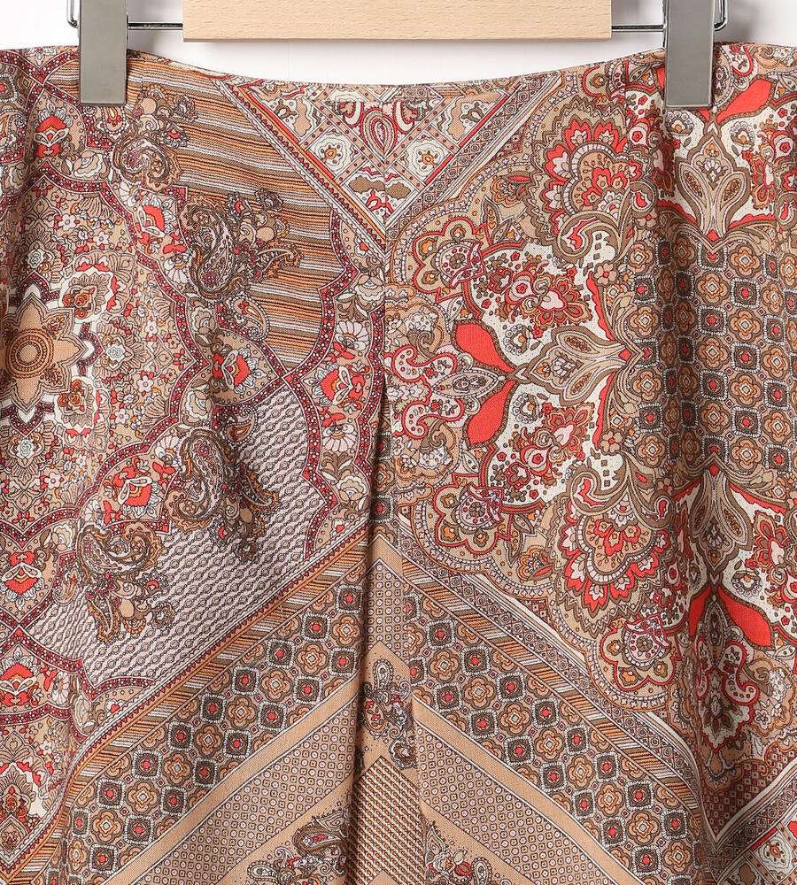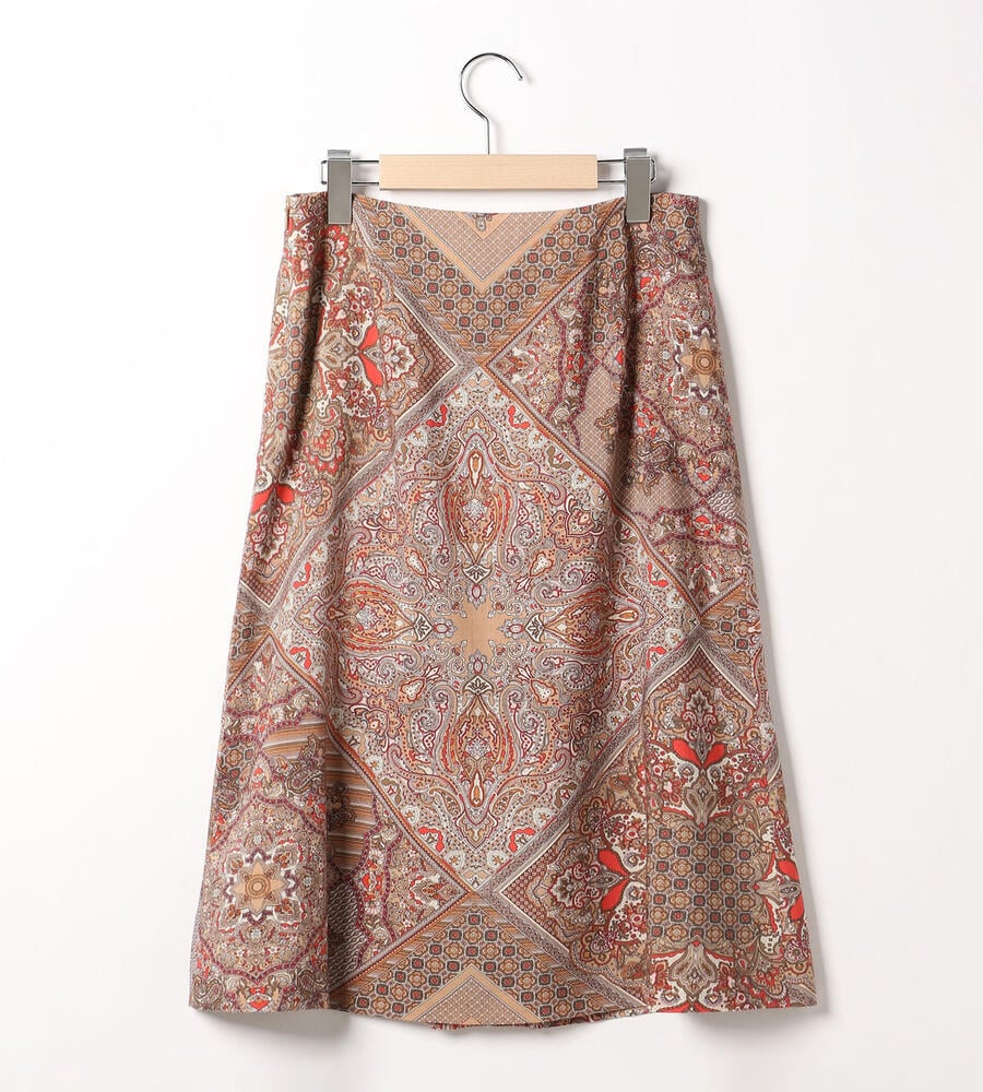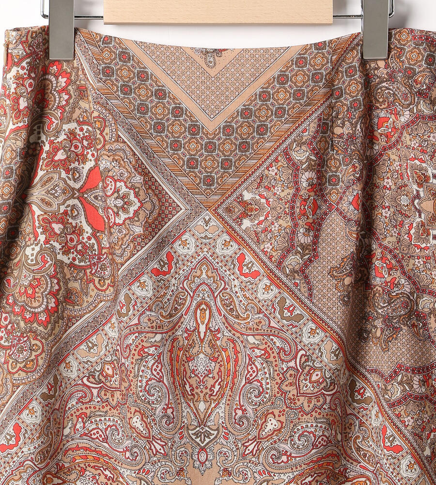 オリエンタルな美しさを放つペイズリー柄のスカートです。前面はボックスプリーツ、後面はシンプルな作り、着脱はサイドファスナー式。適度に広がるシルエットと上質感あふれる風合いが、上品で女性らしい印象を演出します。日常や通勤はもちろん、オケージョンなどの特別な日にもオススメです。
