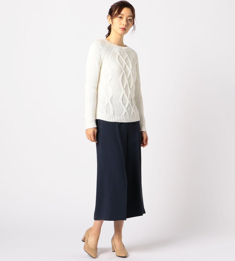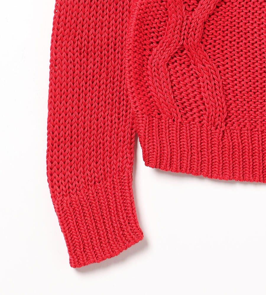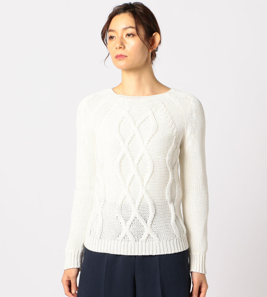 ローゲージで甘めに編み上げたケーブルニットプルオーバー。透け感のあるざっくりとしたデザインは、リラックスしたい日のコーディネートにぴったりです。コットン素材を使用しているため、さらっとした肌触り。寒さを感じるときはレイヤードで、暖かくなったら1枚でと、シーズンをまたいで活躍します。