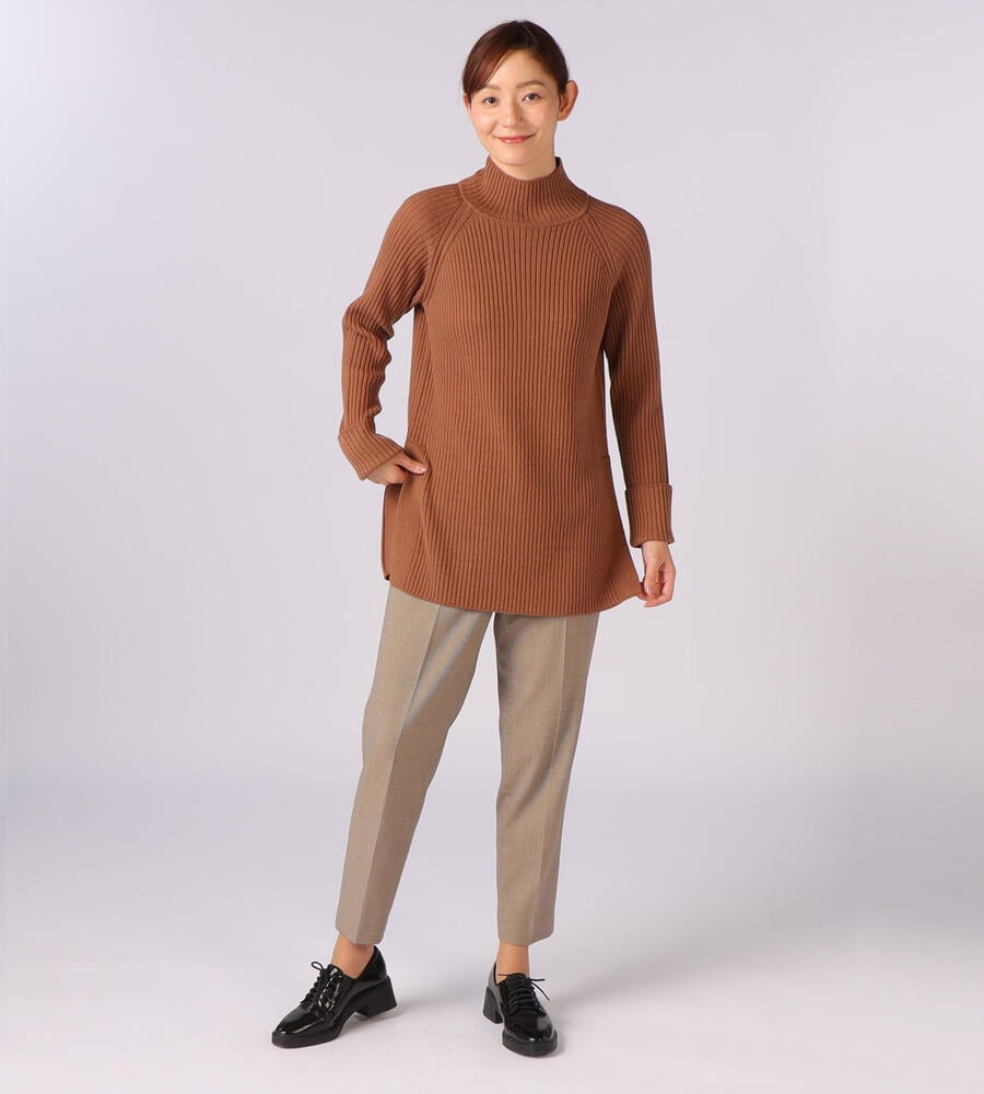ゆったりとした着丈でコンフォートな雰囲気を醸したリブ編みタートルネックニット。ラグランスリーブ切り替え、袖先は折り返しのデザイン。裾サイドには深めのスリットをあしらい、腰まわりにゆとりをプラスしています。シンプルな中にもこだわりを感じる洗練されたデザインに仕上がっています。