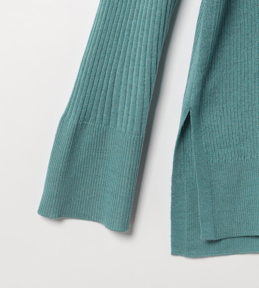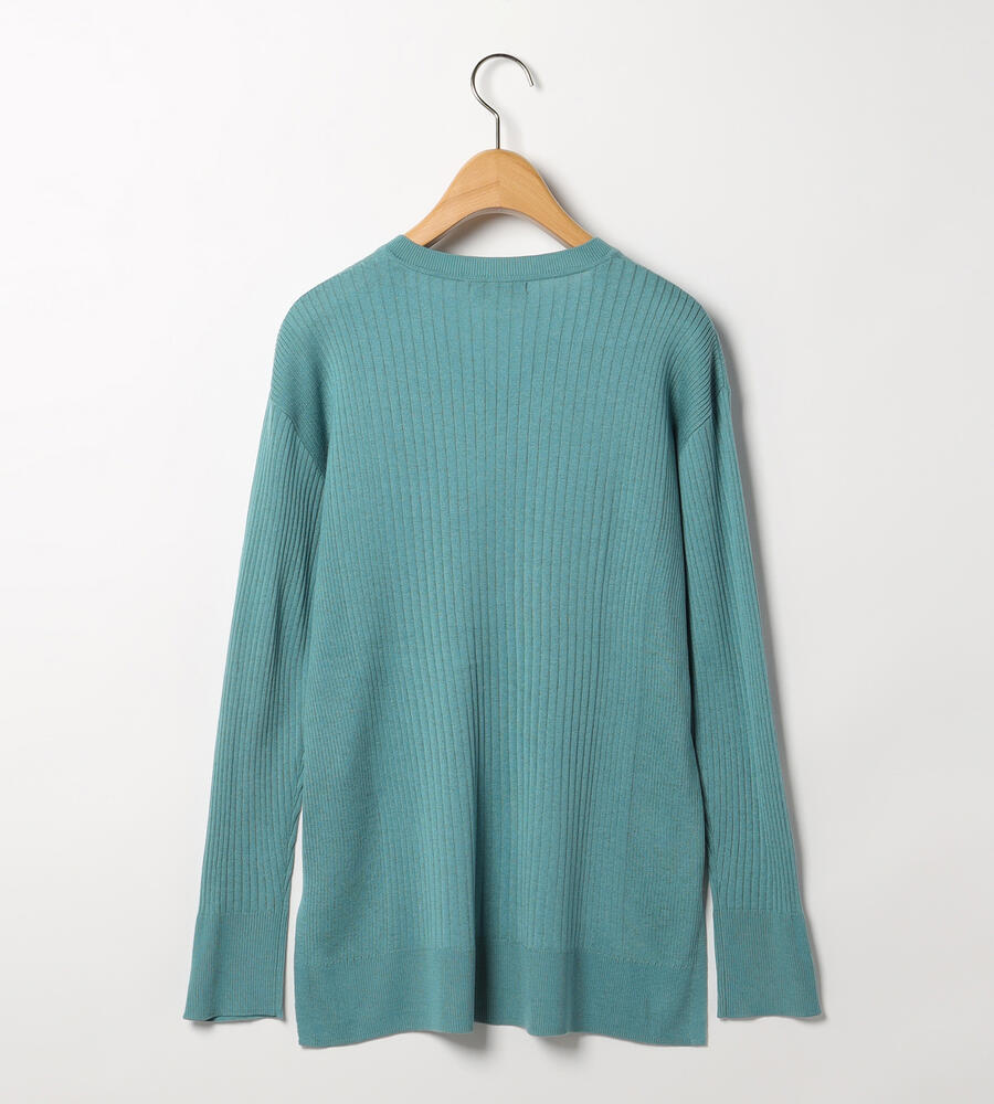 シンプルな中にもエレガンスが香る、洗練された大人のためのVネックニットが登場。シルクと毛をブレンドした上質な素材をリブ編みで仕上げたデザイン。裾サイドにあしらったスリットが、腰まわりにゆとりをプラスします。ドロップショルダーで程よい抜け感を取り入れたトレンドライクなディテールもポイントです。