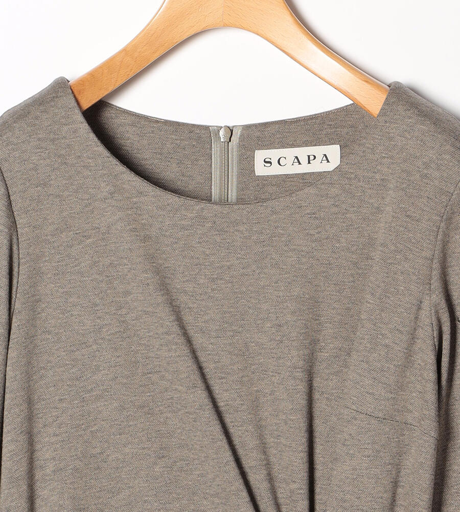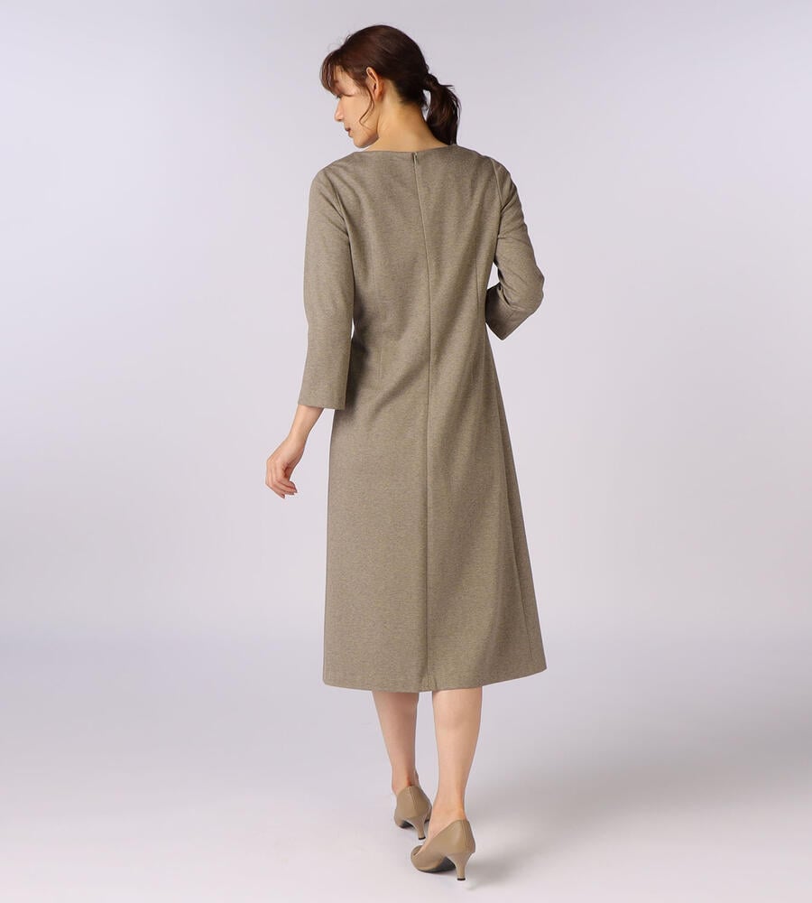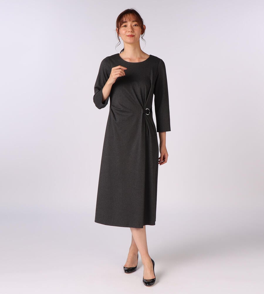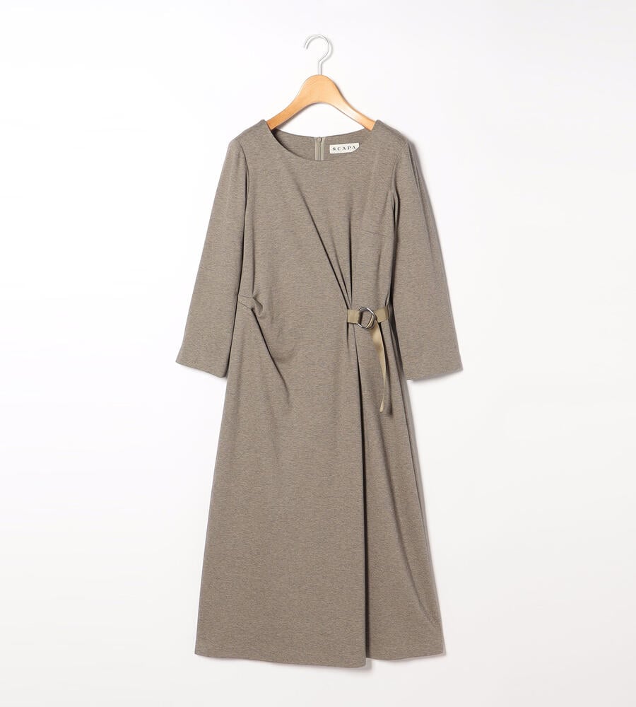 ウエストのベルテッドデザインがアクセントになったアシンメトリーロングワンピース。右サイドウエストにダーツをあしらったディテールもワンポイントに。バックジップクロージャー仕様。コットンブレンドの カノコジャージ素材を採用しており、着心地の良さにもこだわり仕上げたアイテムです。
