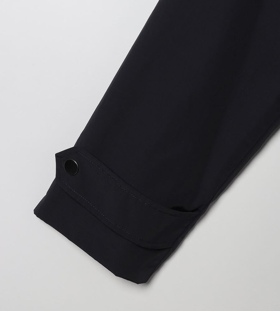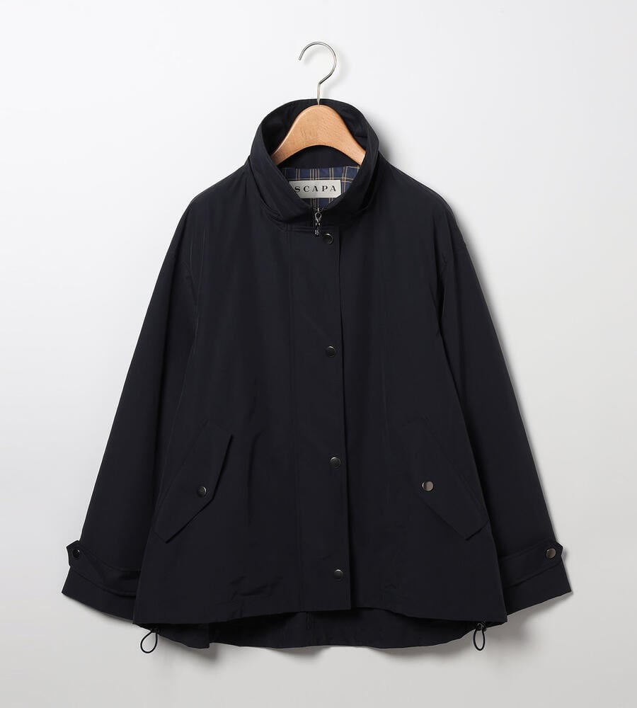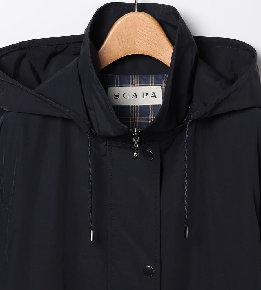 程よいゆとりのあるコンフォートなシルエットで仕上げたエーデルジャケット。フロントはスナップボタン×ジップクロージャー、左右にポケットを配置したデザイン。フードはお好みで取り外しができる仕様となっています。裏地に切り替えたチェック柄がさりげないポイントに。