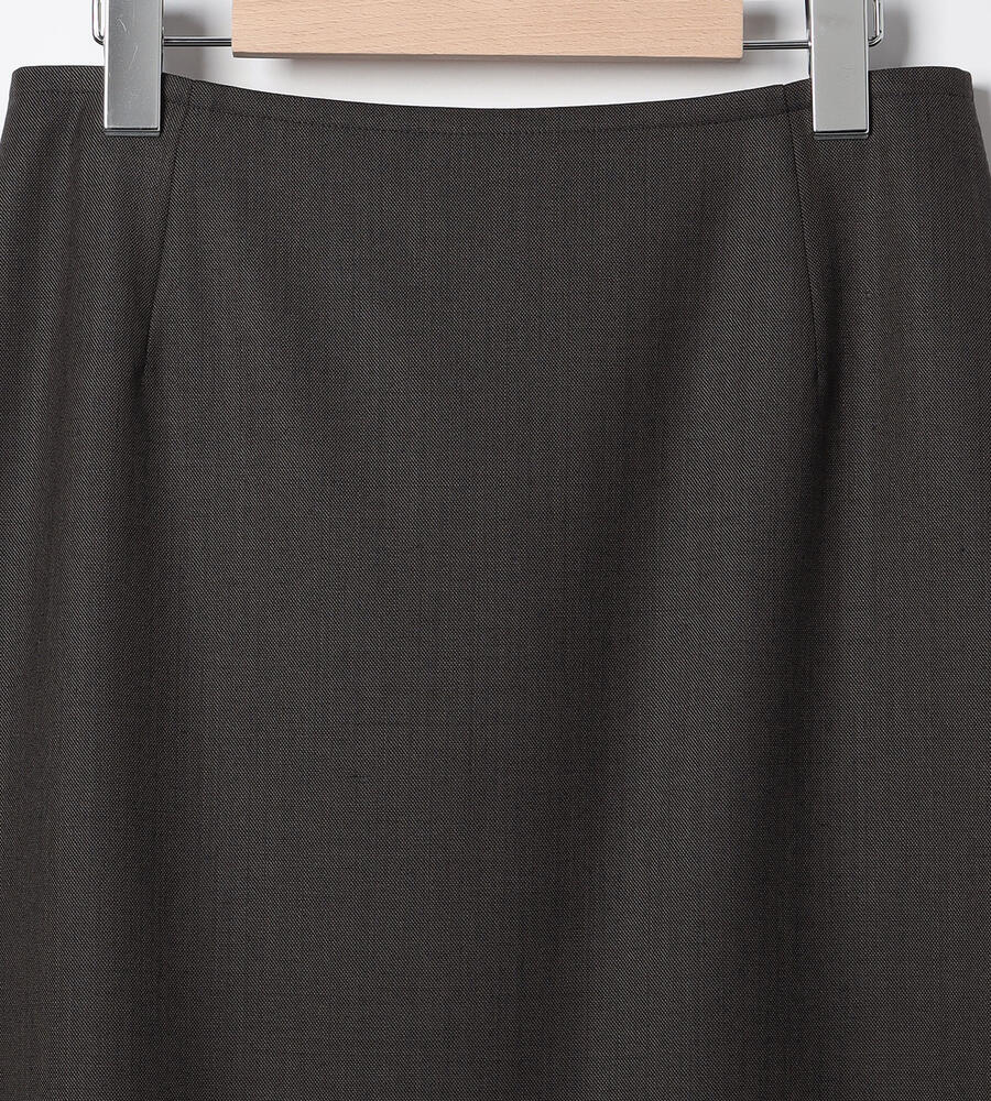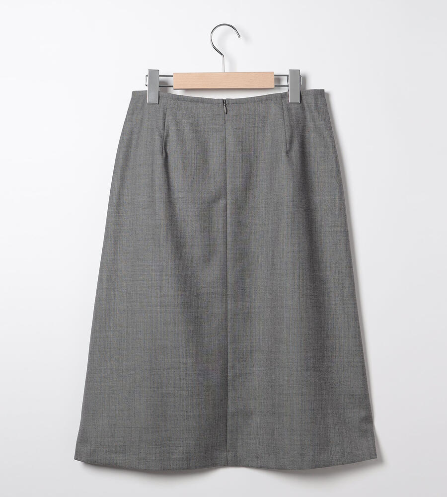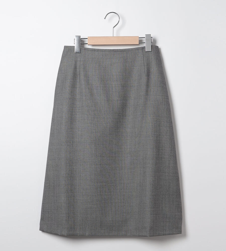 シンプルな中にもエレガントな雰囲気が漂うウールシャンブレースカート。裾に向かって緩やかに広がるAラインシルエット。膝下を美しく見せる絶妙な丈感もポイントに。同素材のジャケットとセットアップで着こなしていただけるアイテムです。