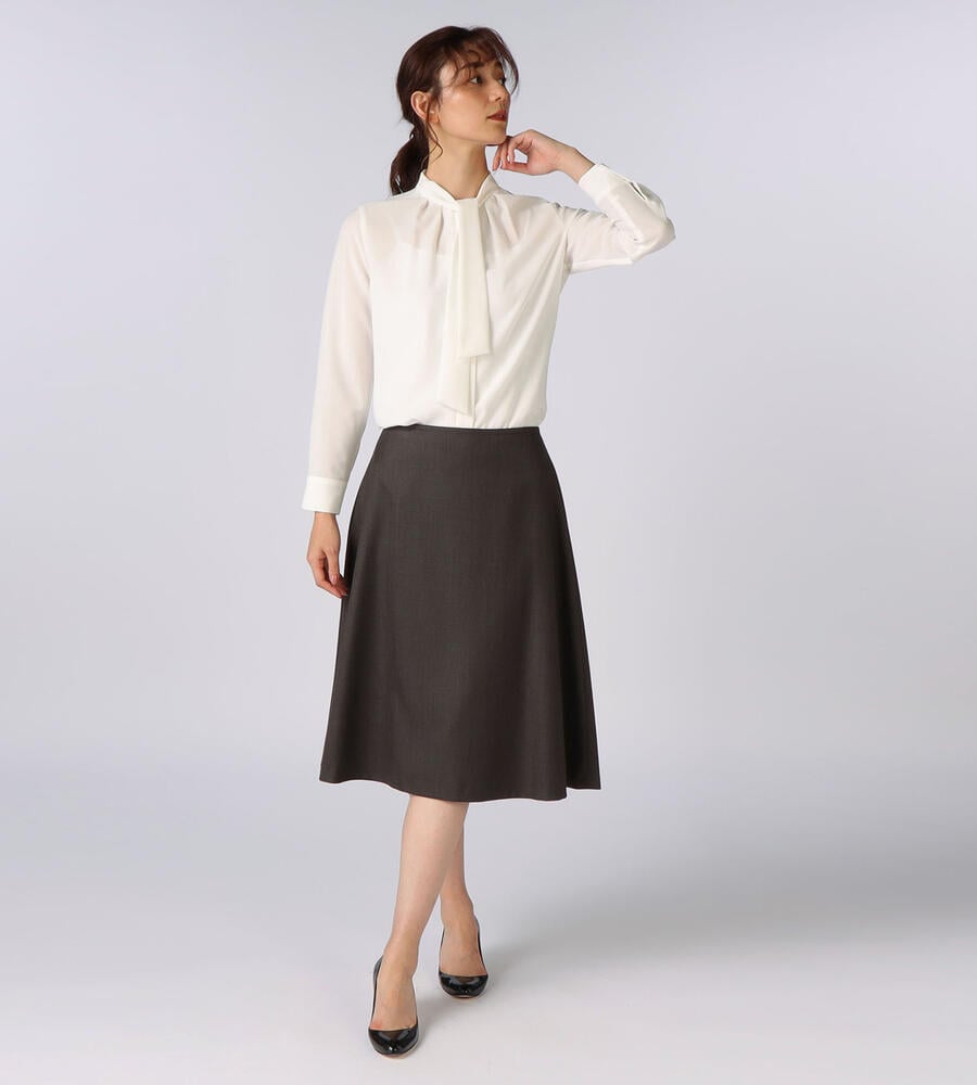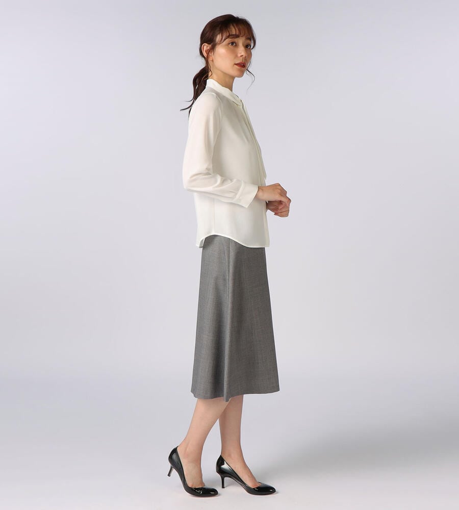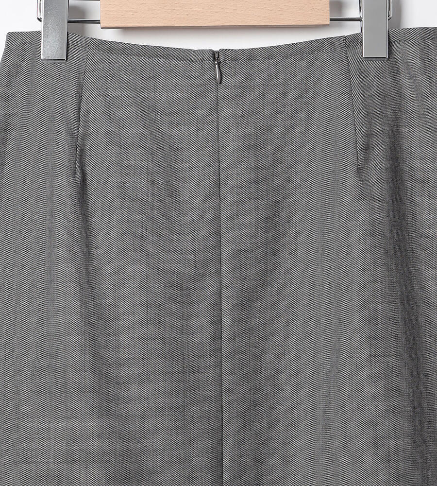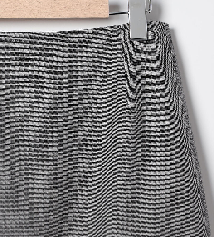 シンプルな中にもエレガントな雰囲気が漂うウールシャンブレースカート。裾に向かって緩やかに広がるAラインシルエット。膝下を美しく見せる絶妙な丈感もポイントに。同素材のジャケットとセットアップで着こなしていただけるアイテムです。