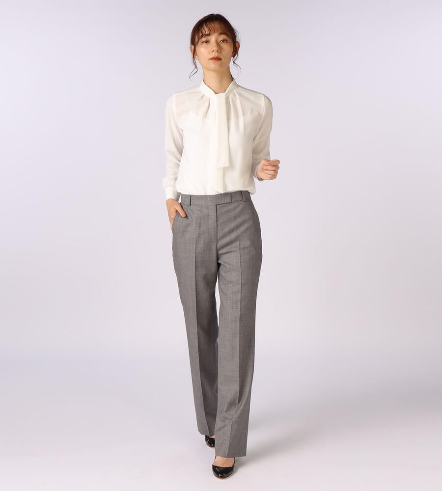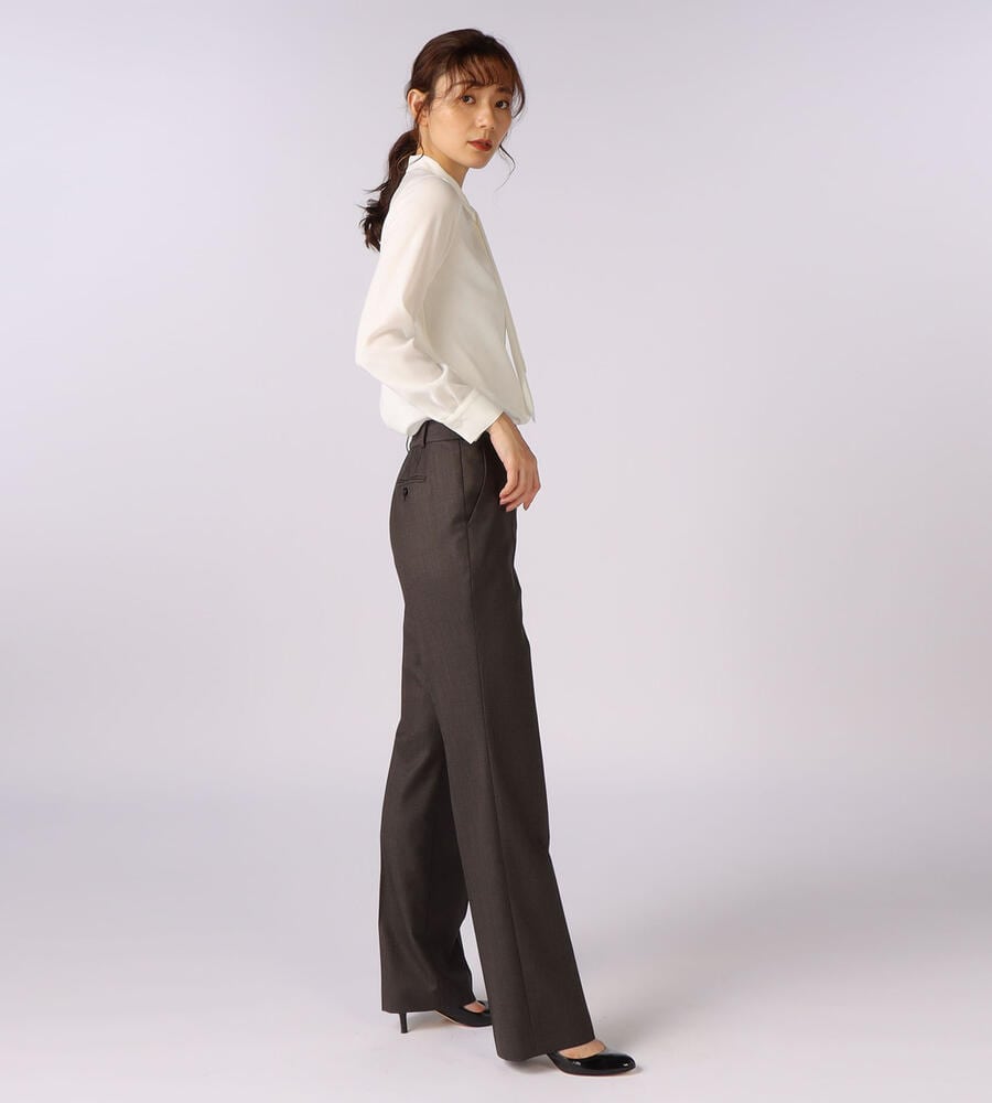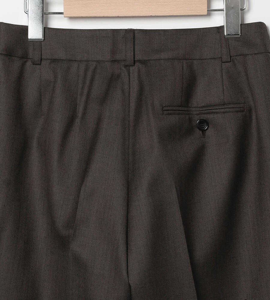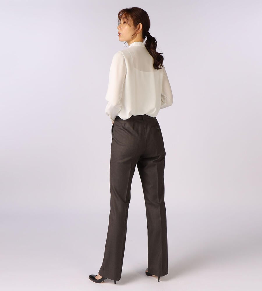 シンプルだからこそシルエットにこだわり仕上げたウールシャンブレーパンツ。脚のラインを美しく見せてくれるセンタープレスをほどこし、サイドとバックにはポケットを配置しています。トップスインスタイルをバランス良く着こなせるハイウエストデザインもポイント。
