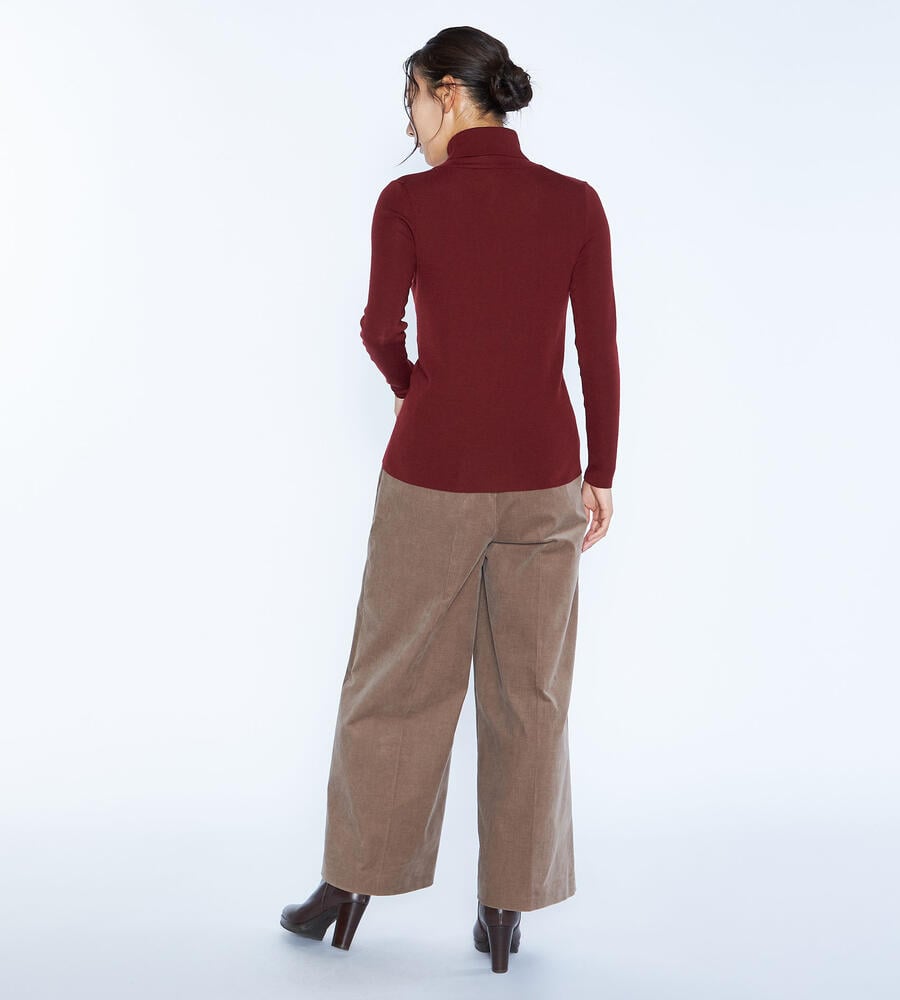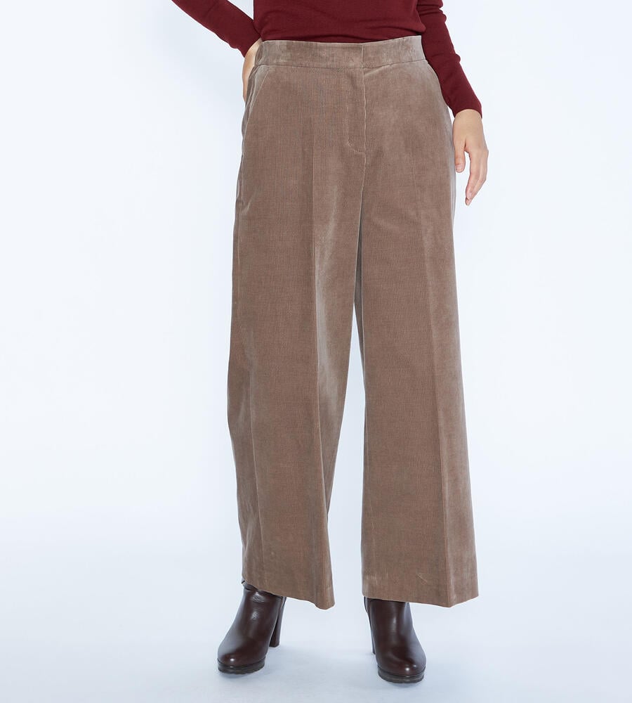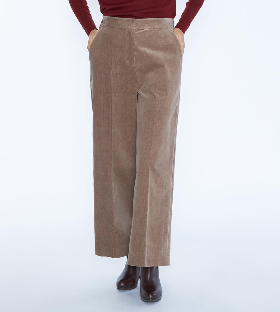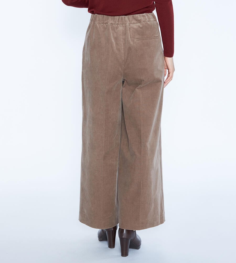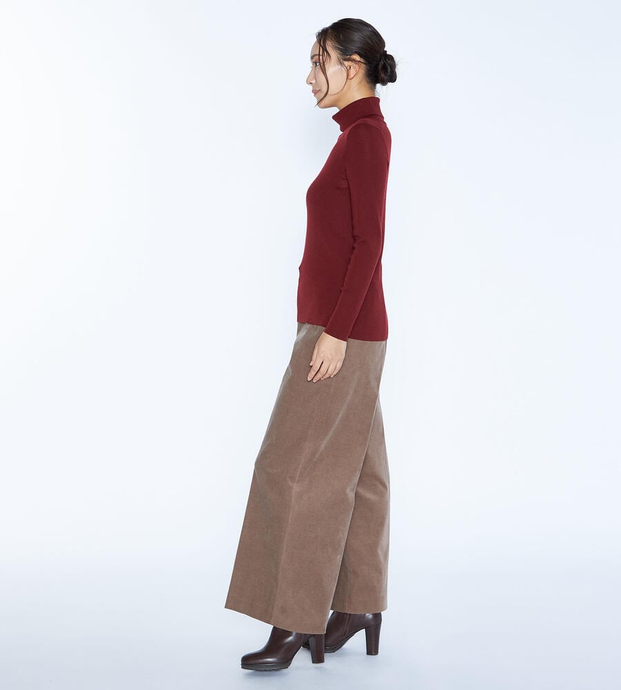 こっくりとした色使いに光沢感、そして温もりを感じさせる起毛感を併せ持つコーデュロイ素材を用いたパンツ。ゆったりとしたシルエットながらもコーデュロイの畝で、縦のラインをさりげなく強調するアイテムです。裾にかけて緩やかに広がるシルエットで、フェミニンな空気感をキープ。