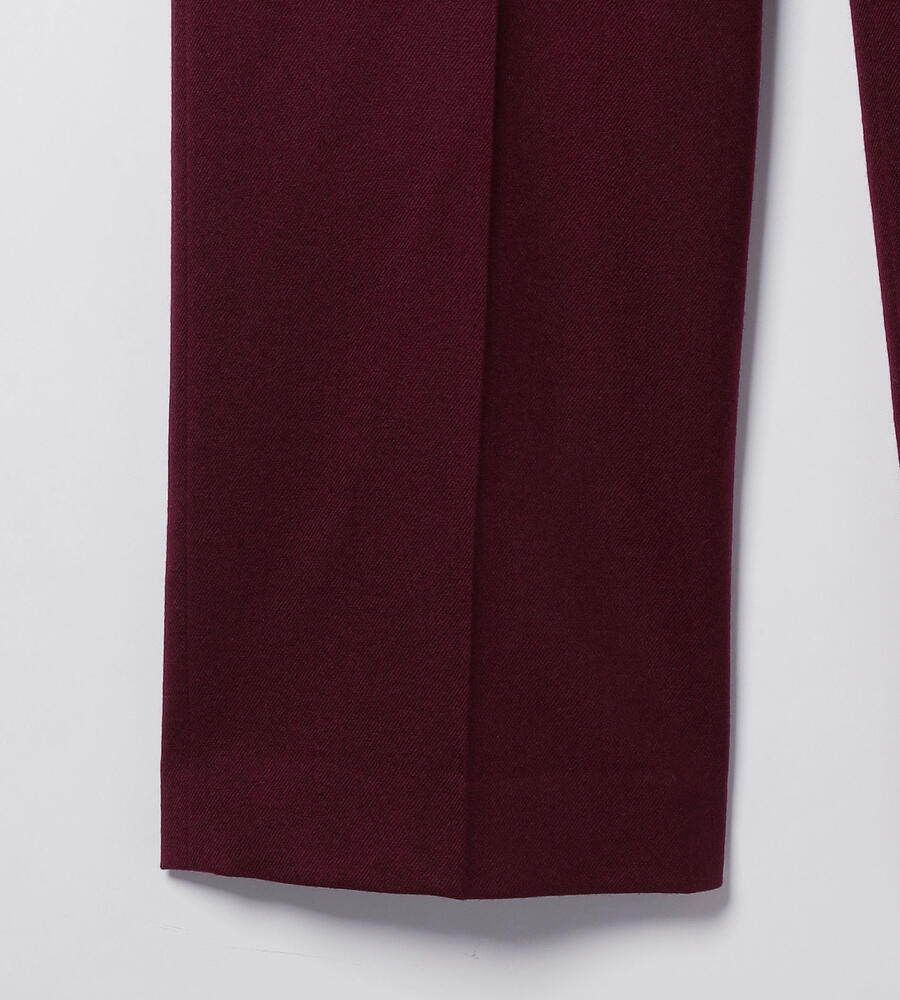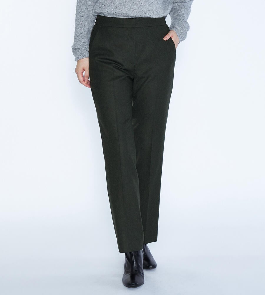軽く、あたたかでソフトな肌触りが魅力のフラノウール生地で仕立てたストレートフィットのパンツ。センタープリーツ加工がエレガントなデザイン。ウエスト後ろはゴム仕様、身体の動きにフィットしストレスフリーな履き心地のストレッチ素材なのもうれしいポイント。スタイリッシュなコーディネートが決まるアイテムです。