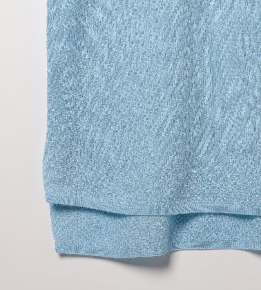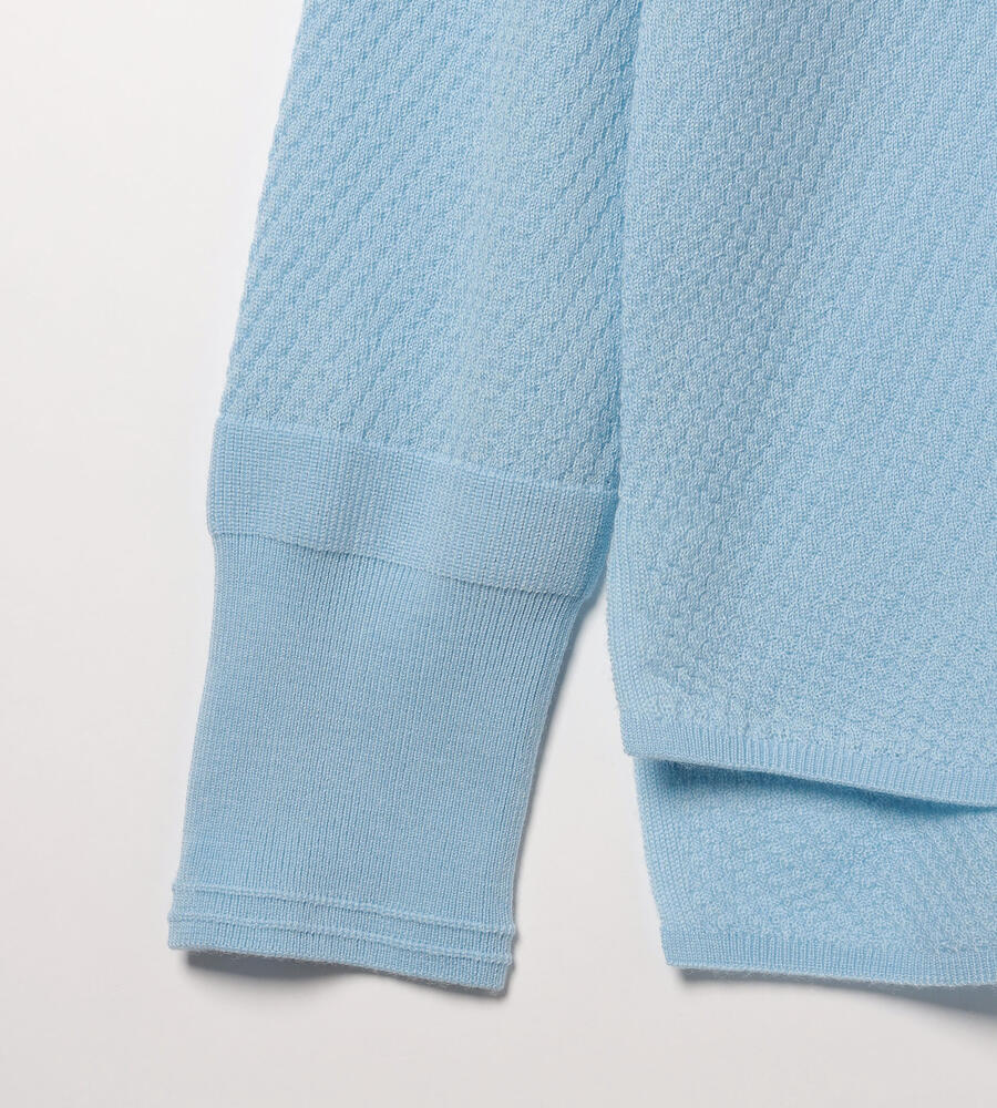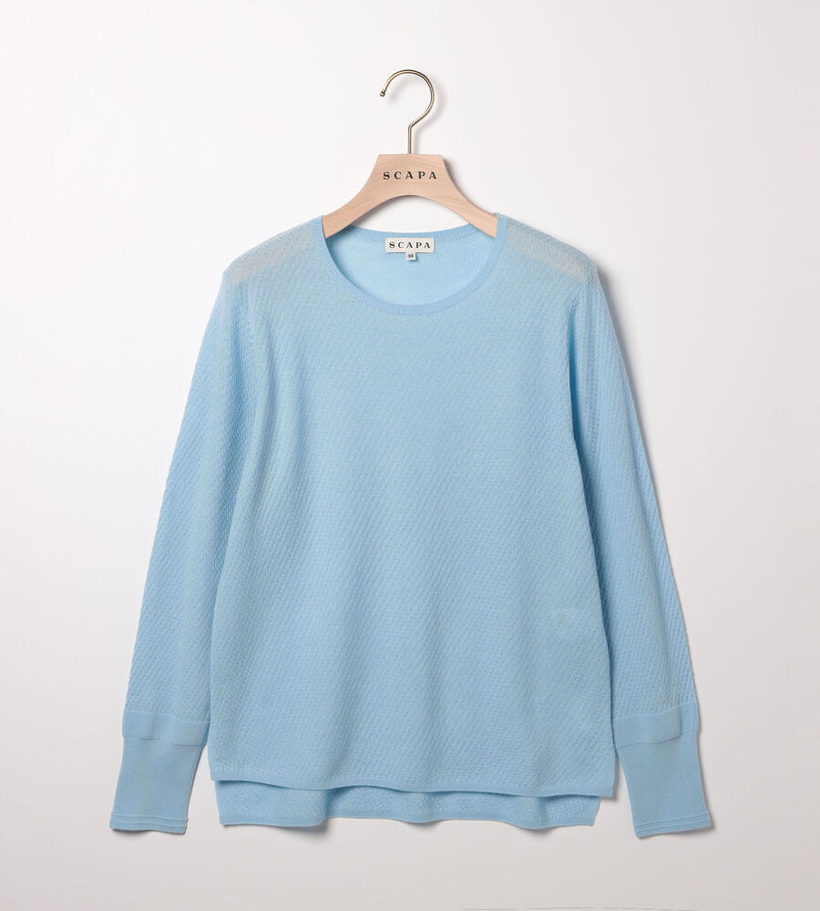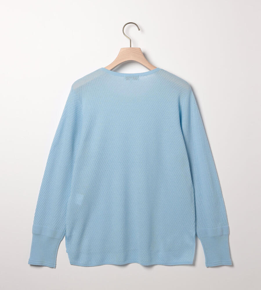 エアリーな質感が爽やかな印象を与えるクルーネックニットです。立体感のある独特な編み模様がスタイリングにアクセントをプラスします。前後差のあるシルエットで、普段のボトムと合わせるだけで様になる1枚。さらりとした肌触りのウール素材で、通気性が良いのも特徴。色違いで異なる雰囲気を味わえます。