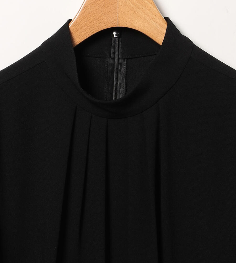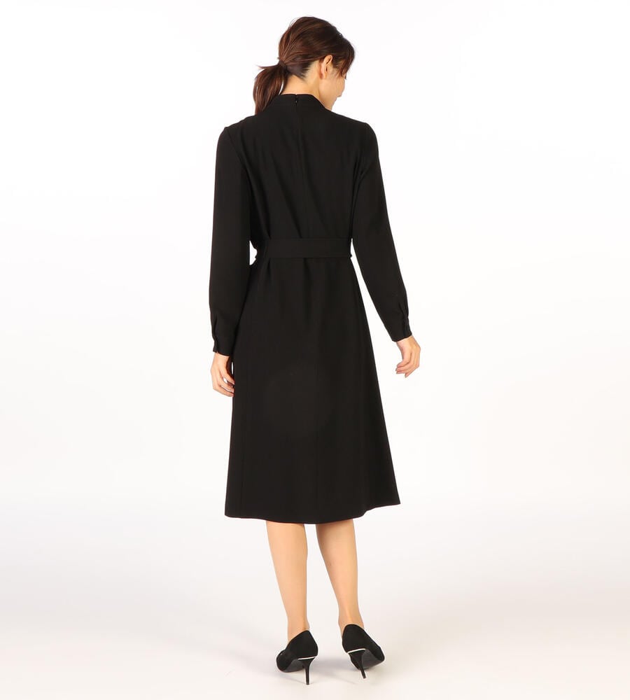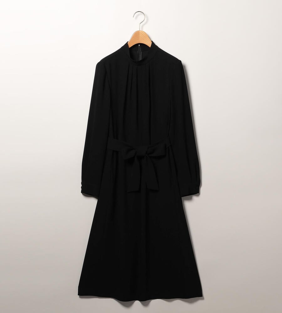 なめらかなふくらみのあるバックサテンジョーゼット生地で仕立てた長袖ワンピース。簡単に取り外し可能なウエストベルト付きで、異なる印象のシルエットを楽しめます。首元にタックを入れた、フェミニンでフレアなシルエットが魅力。お出かけにはもちろん、オフィスシーンにもマッチするキレイ目な印象の汎用性抜群のアイテムです。