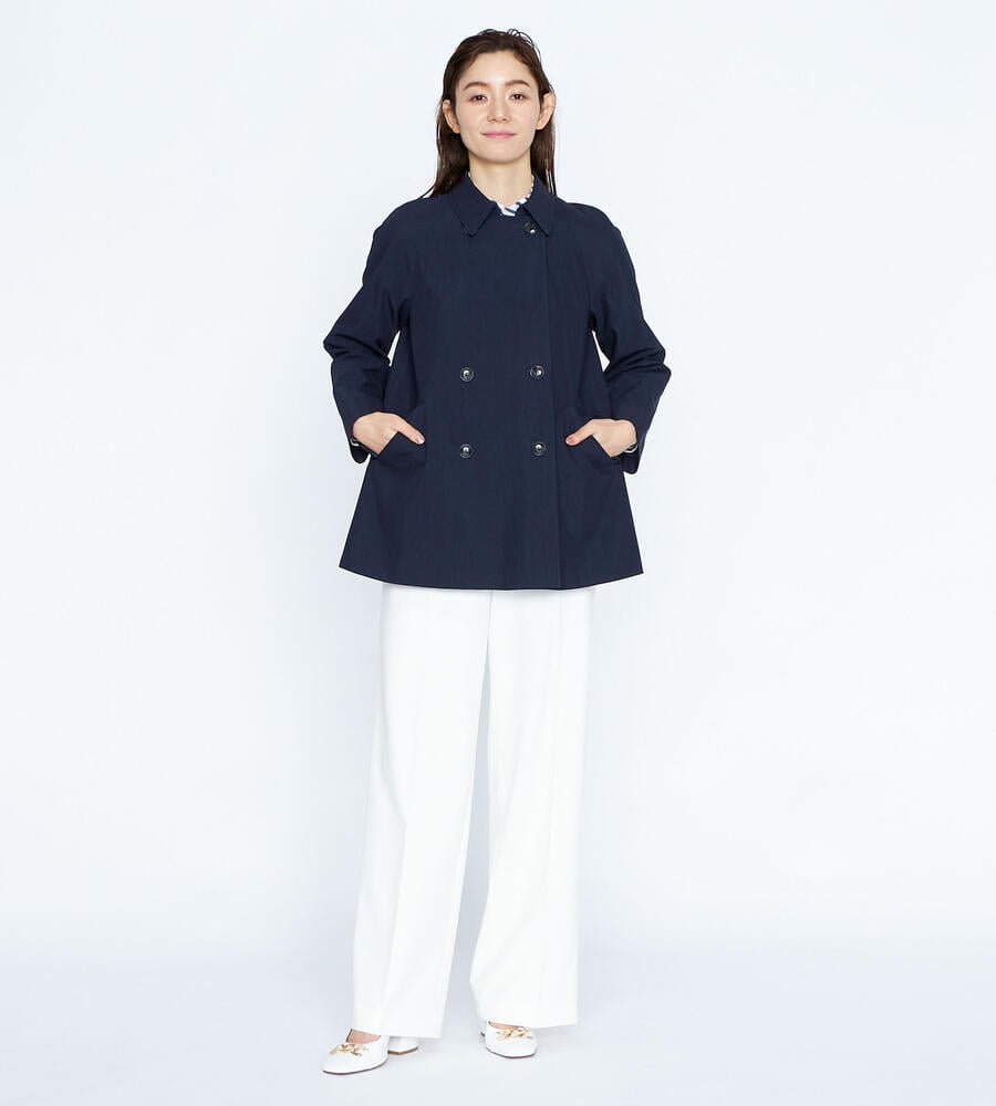 上品な光沢感が魅力のコットンシャンブレー生地で仕立てたコート。ほどよいハリのある素材感を活かしたAラインに広がる、美しいシルエットがフェミニンなムード。飽きのこないシンプル&スタンダードなデザイン。バランスの良いハーフ丈で、オンオフ問わず様々なスタイリングで活躍するアイテムです。