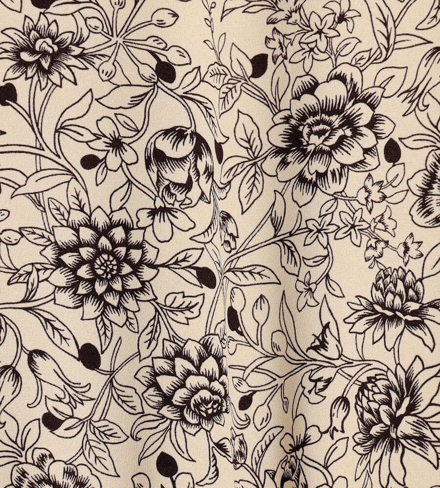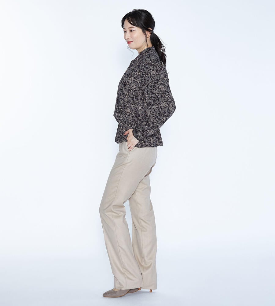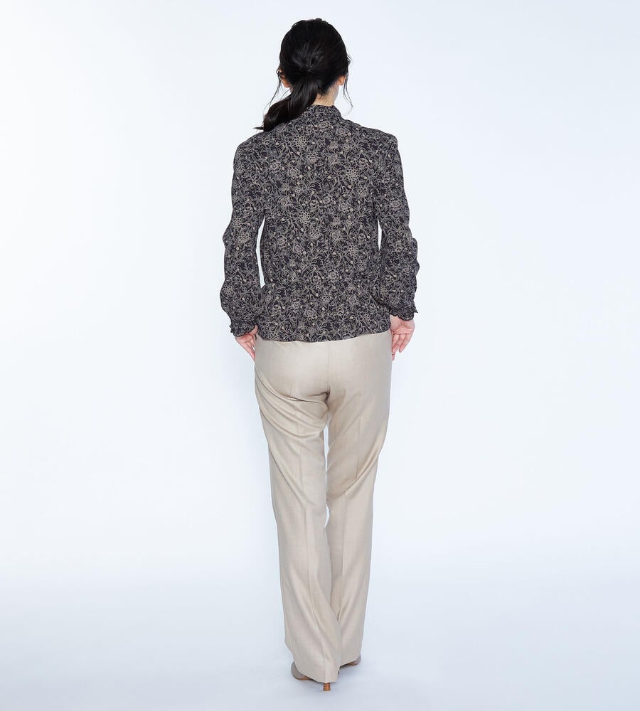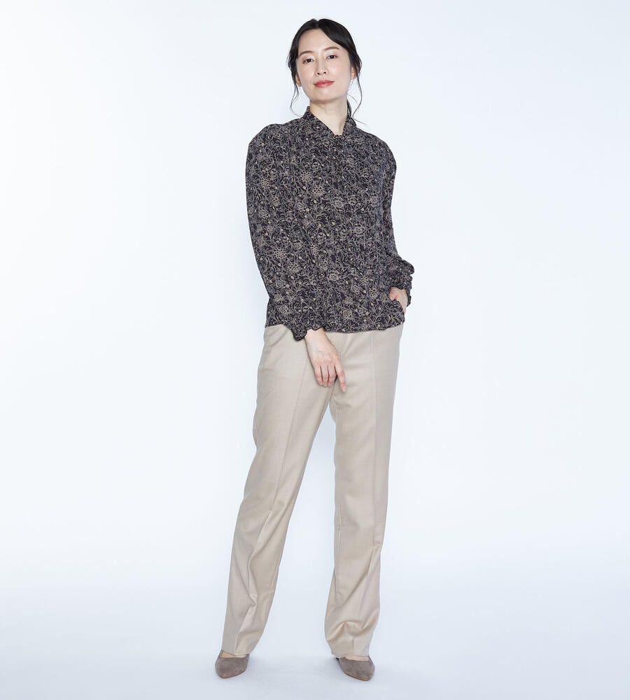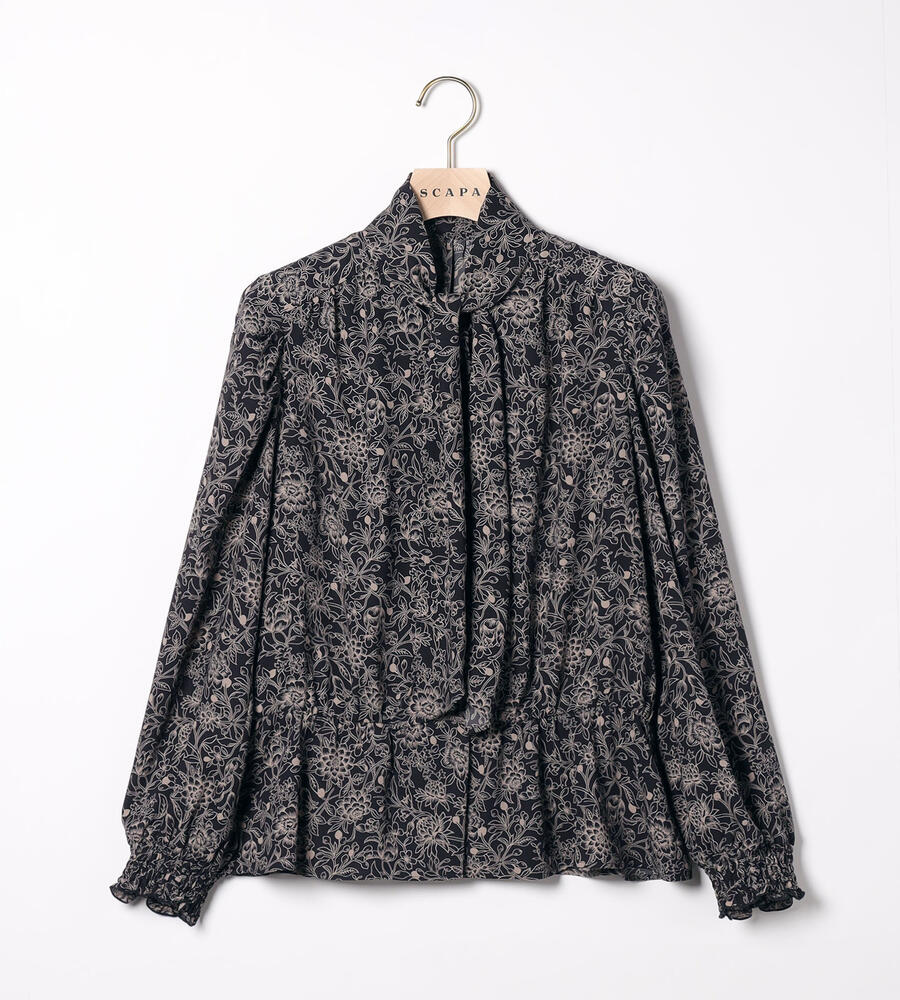 上品な存在感があるフラワープリントの長袖ブラウス。線画による柄の表現やシックな配色が大人の印象です。ボウタイ付きのクラシカルなデザイン。バックペプラムや袖口のシャーリングギャザーなど、細かな部分にまでこだわっています。お出かけやお呼ばれなど、キレイ目にまとめたい場面でもおすすめです。