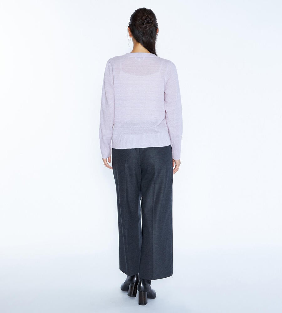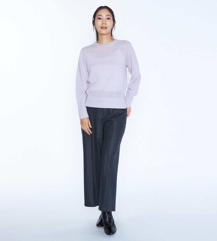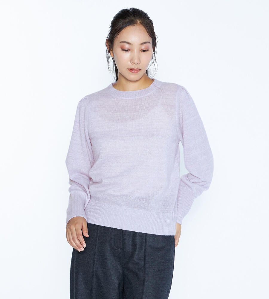 ニュアンスのあるカラーの生地が特徴のプルオーバーニット。程よい透け感のある薄手のニット生地は、おしゃれな重ね着コーディネートにぴったり。裾と、袖の長めのリブがシルエットにメリハリを与えるアクセント。様々なボトムにマッチするシンプルなデザイン。デイリーからお出かけまで様々な着こなしで活躍する一枚です。