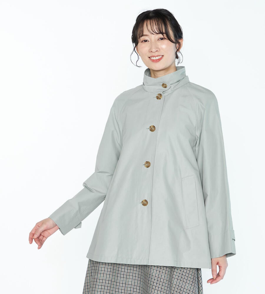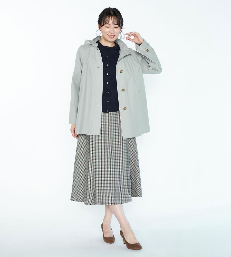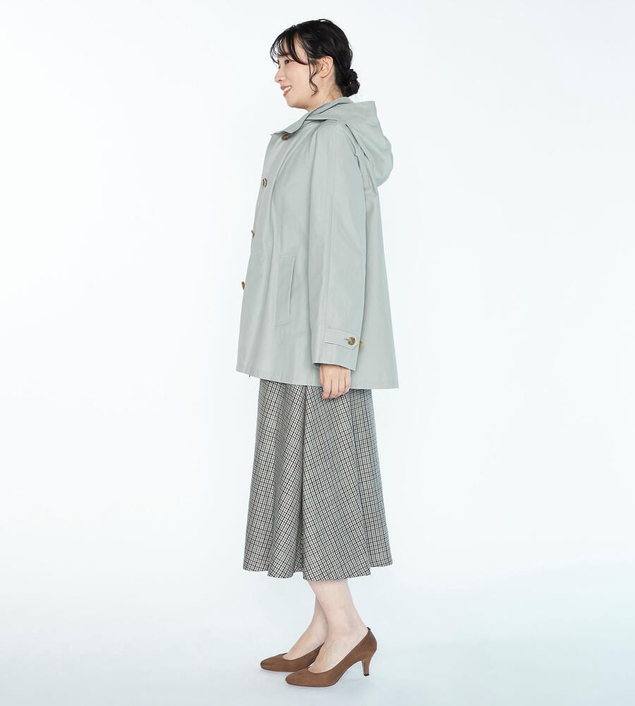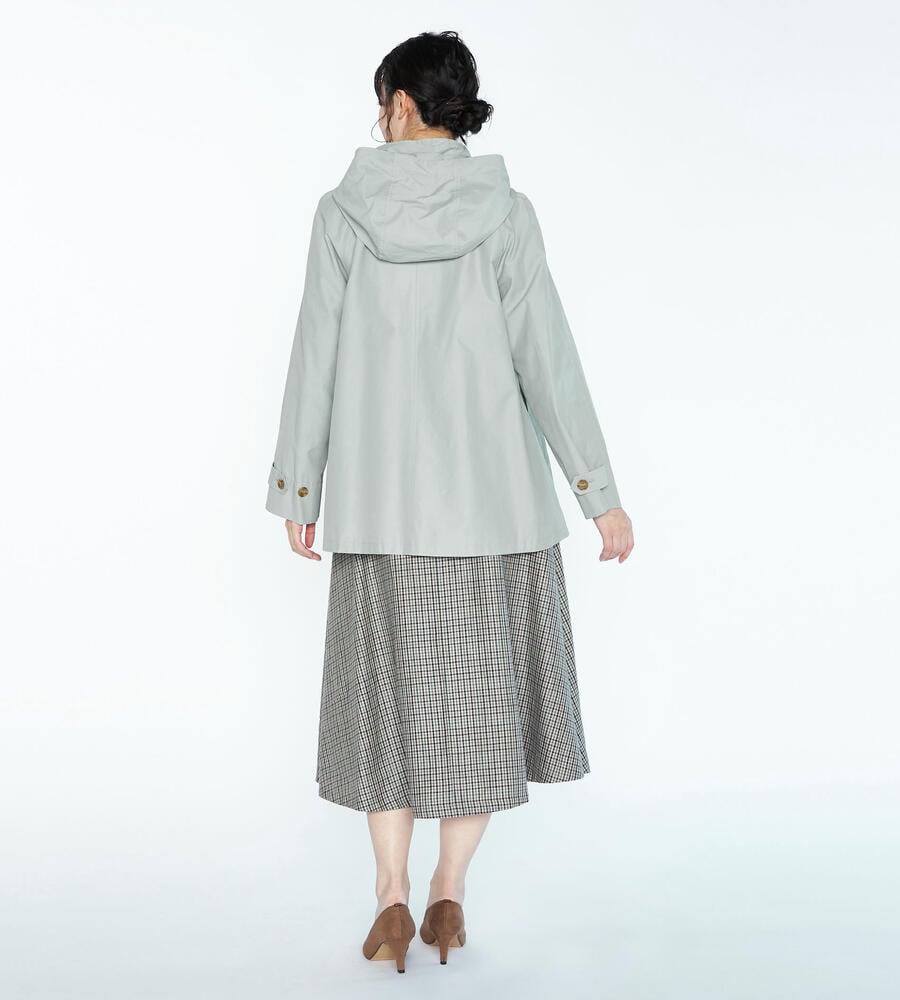 リラックス感と上品さを兼ね備えたフード付きコートです。春先から軽やかに着こなせるコットンとナイロンのブレンド素材を採用。ボタンにはブランドロゴをあしらい、左右にポケットを配置。フードは取り外しが可能です。腰まわりにゆとりのある裾広がりのシルエットがコンフォートなムードを演出します。