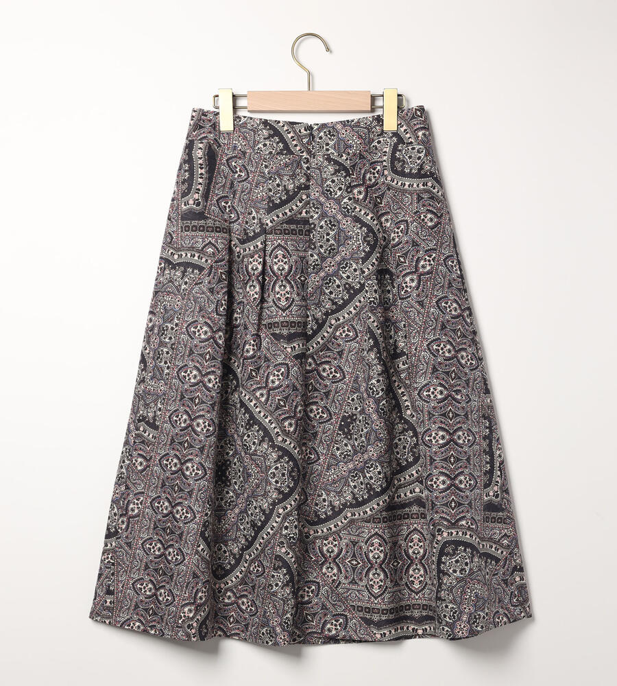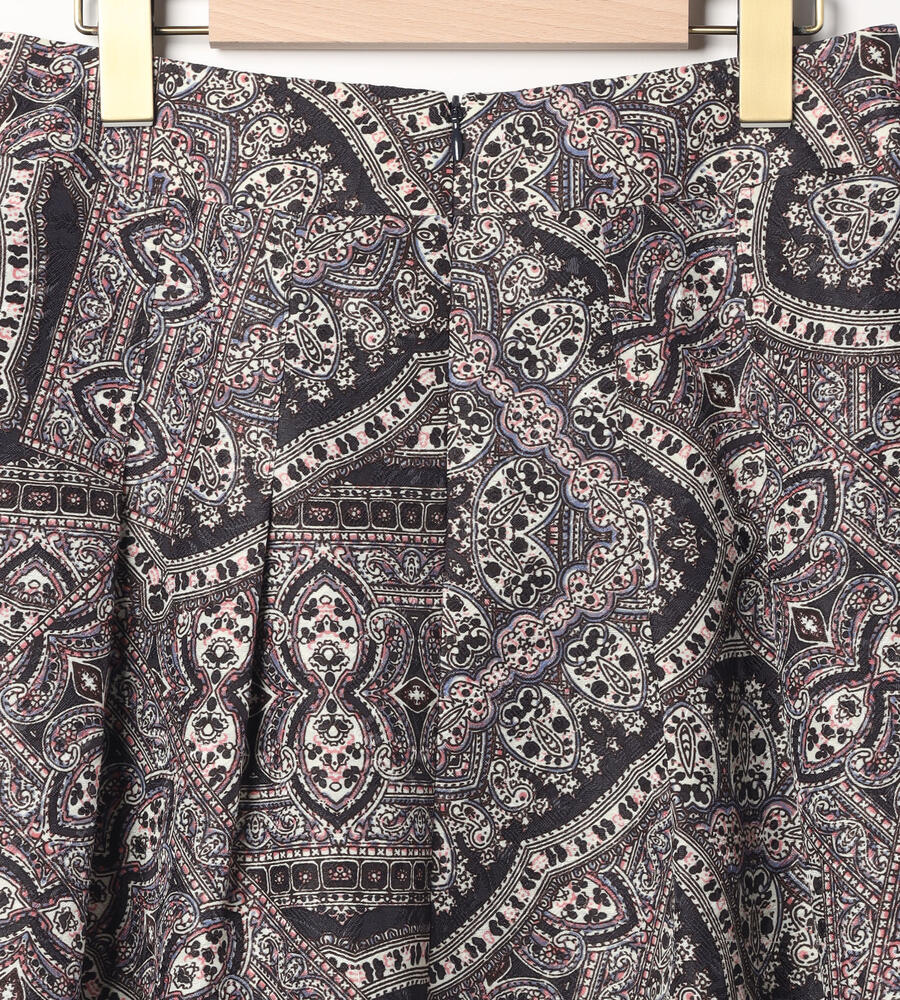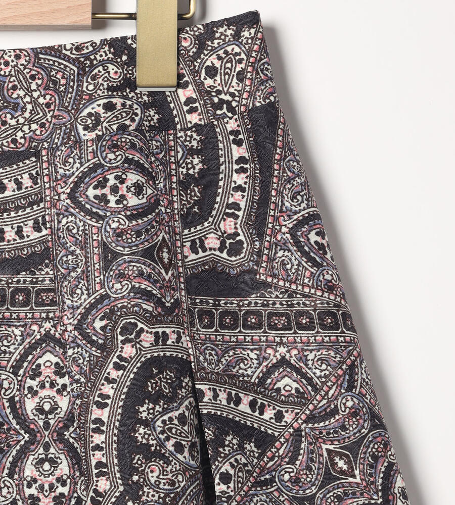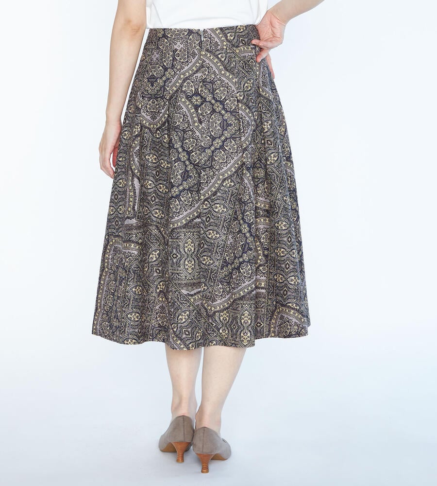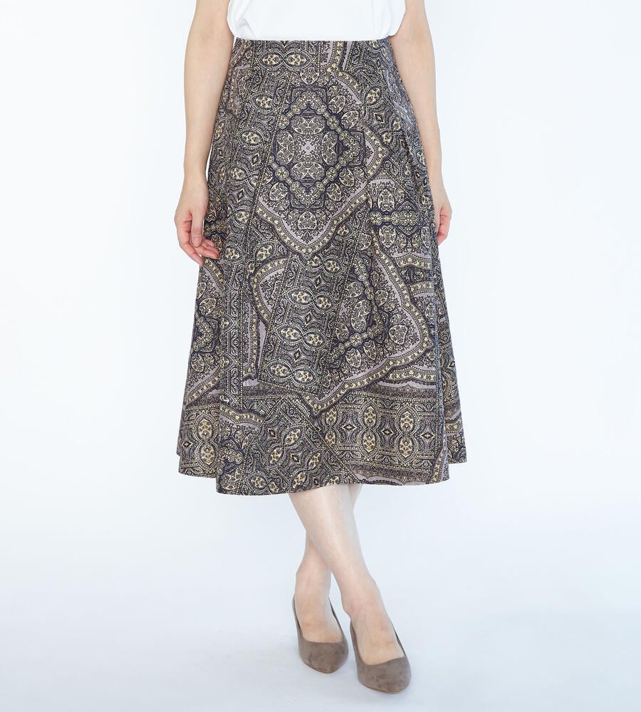オリエンタルなムード漂う繊細な模様が描かれたジャカードサラサスカート。裾に向かって緩やかに広がるフレアシルエットが美しく、スタイリングの主役にふさわしい華やかさと上品さを兼ね備えています。トップスはシンプルなブラウスやニットと合わせて着こなしていただくと洗練された表情に。