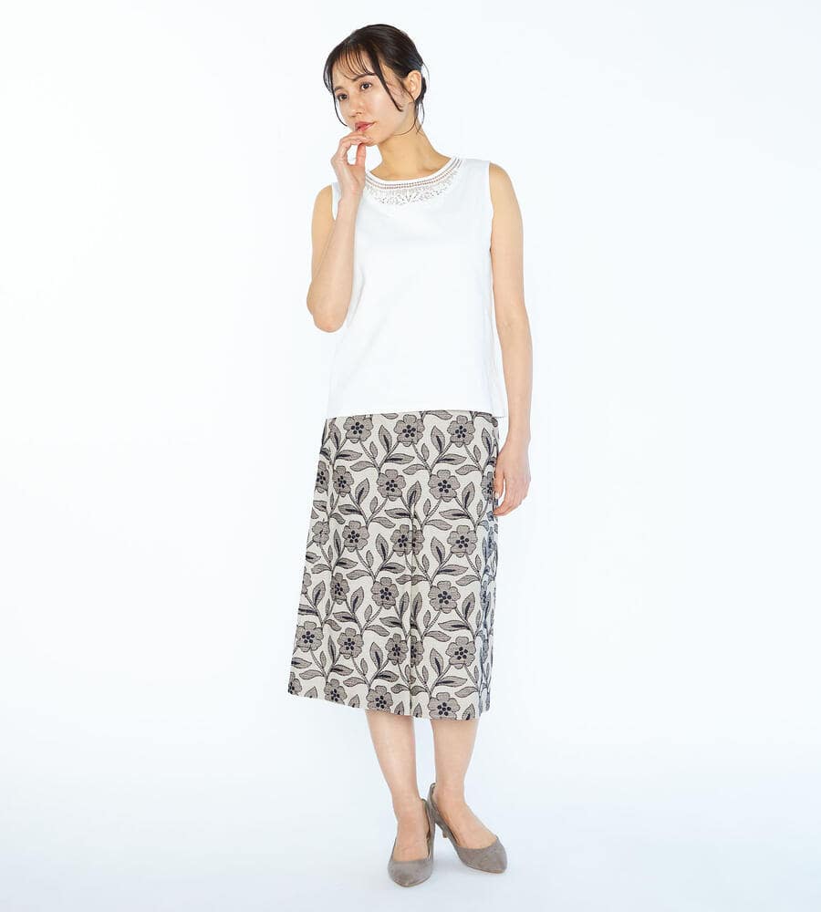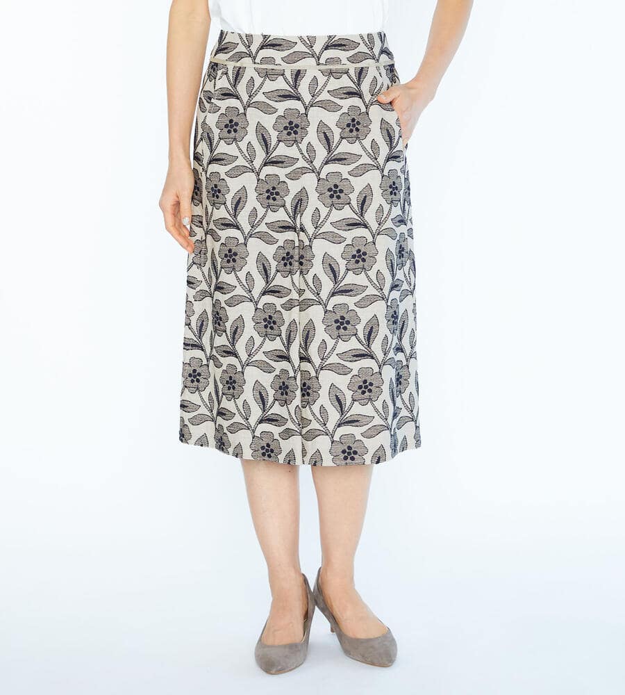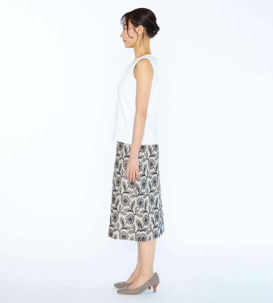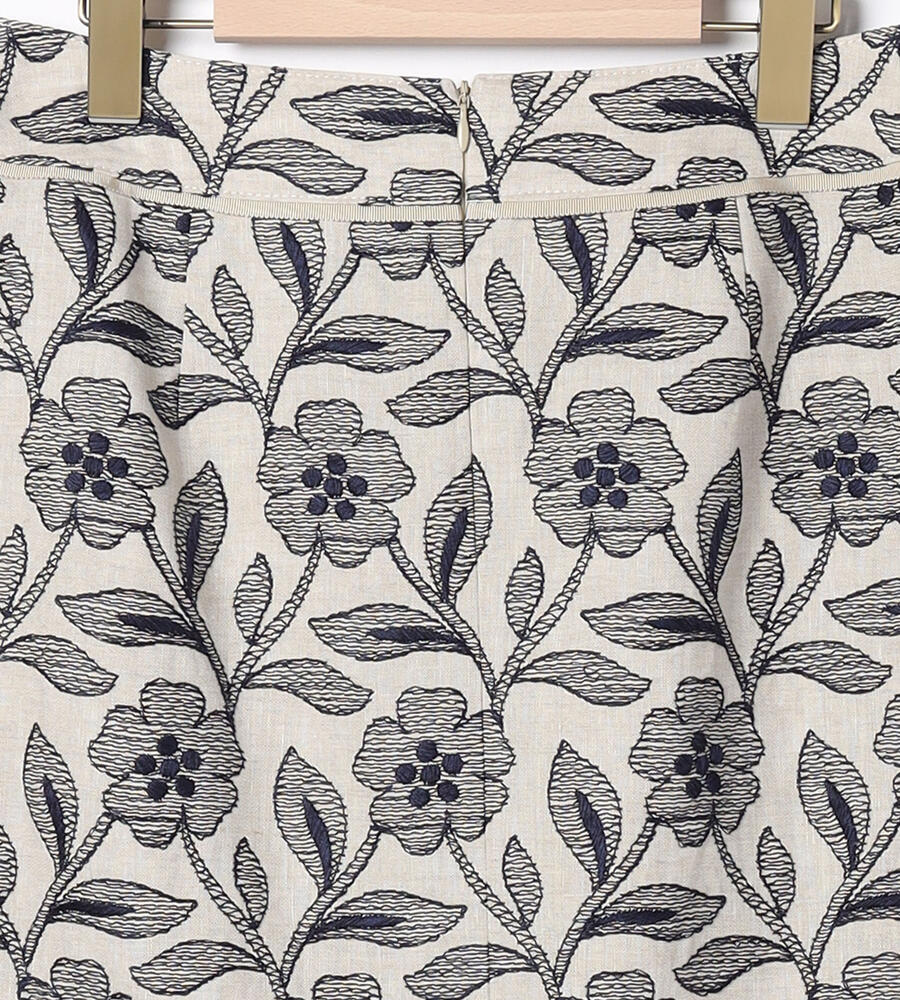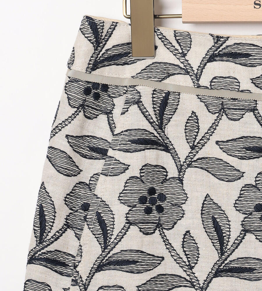 シックなカラー使いでエレガントな雰囲気を纏えるエンブロイダリースカート。フラワーモチーフを表情豊かに表現したディテールへのこだわりが際立つアイテムです。フロントにプリーツをたたみ、裾に向かって広がるAラインシルエット。サイドにはポケットを配置し、ウエストにあしらったテープ使いがさりげないワンポイントに。