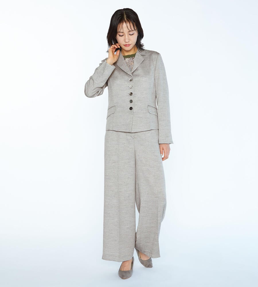 さらりとしたタッチのツイル素材を用いたワイドパンツ。ワイドながらも綺麗な落ち感で、きちんとした印象の着こなしを楽しめます。センタープレスを施すことで、縦のラインを強調して、スマートな装いを実現。同素材のジャケットを合わせたセットアップもお楽しみいただけます。