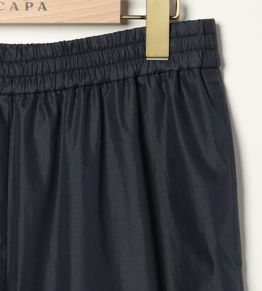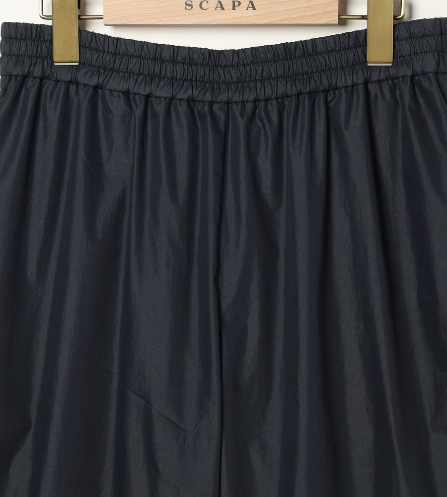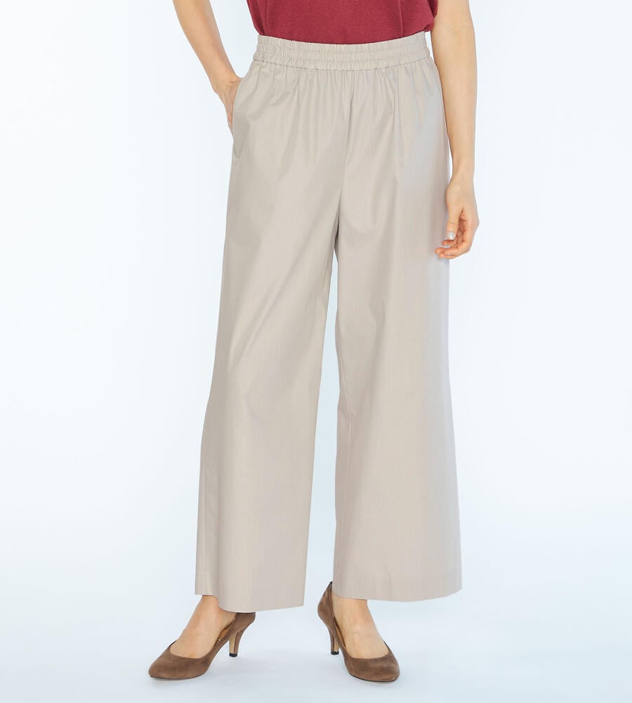 気品を保ちながら、リラックスして着用できるゴムウエスト仕様のパンツです。ハリと微光沢のある生地感が洗練された雰囲気。太すぎず細すぎない絶妙なシルエットは、トレンド感と女性らしい印象を演出します。両脇には便利なポケット付き。合わせるトップスやシューズを問わず、オンオフ兼用で幅広く重宝します。
