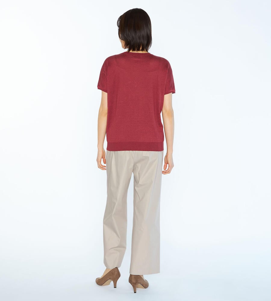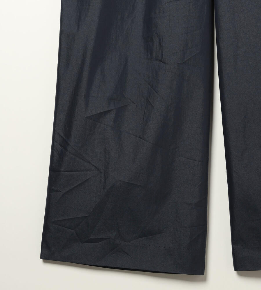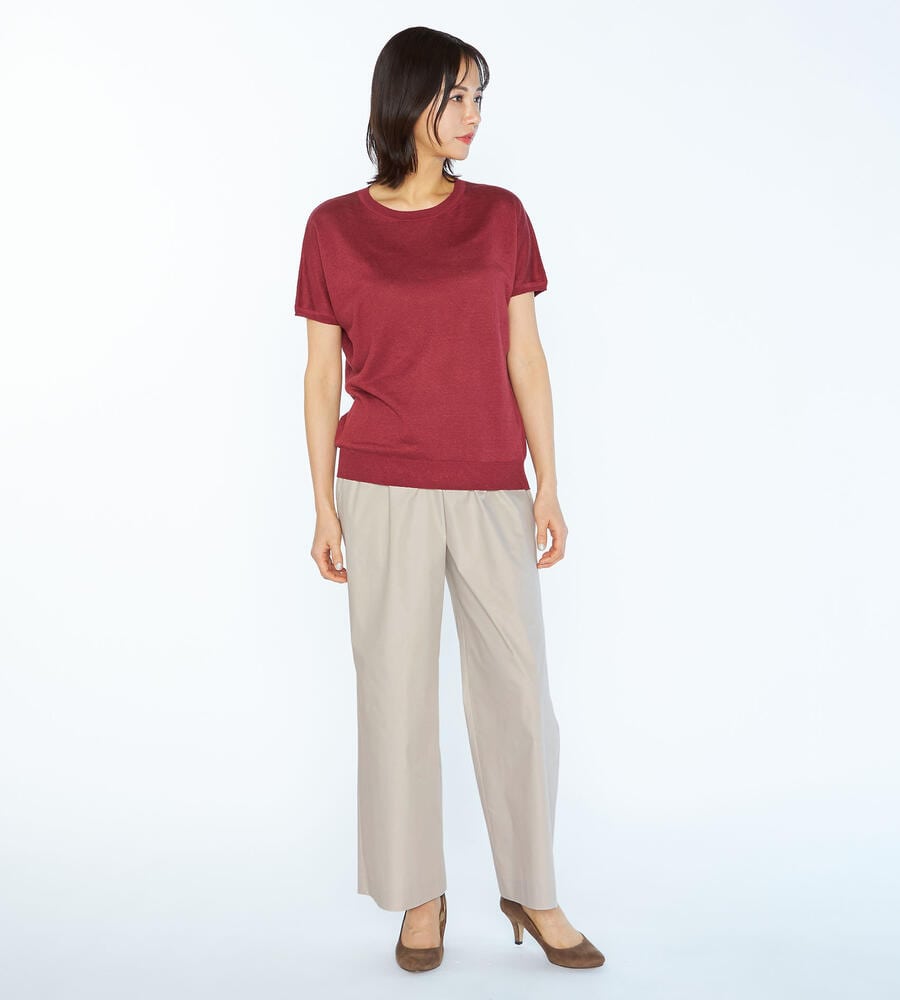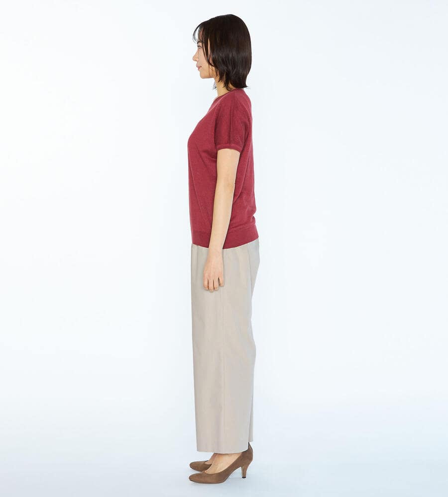 気品を保ちながら、リラックスして着用できるゴムウエスト仕様のパンツです。ハリと微光沢のある生地感が洗練された雰囲気。太すぎず細すぎない絶妙なシルエットは、トレンド感と女性らしい印象を演出します。両脇には便利なポケット付き。合わせるトップスやシューズを問わず、オンオフ兼用で幅広く重宝します。