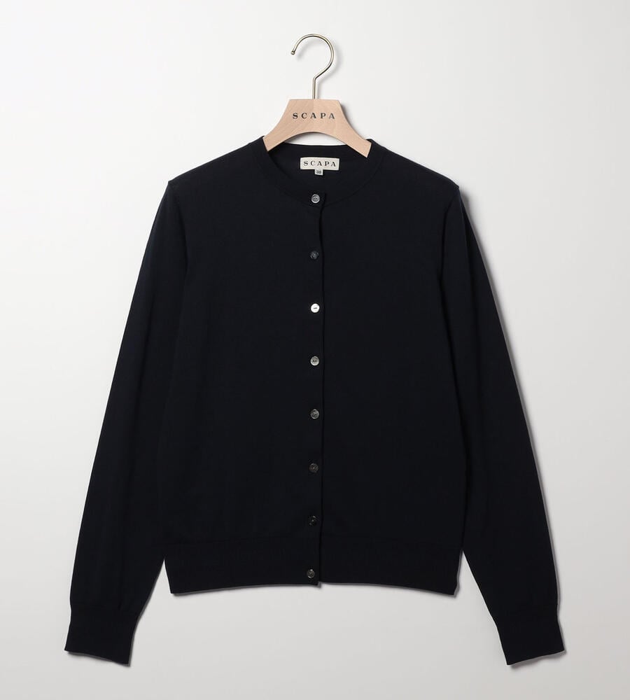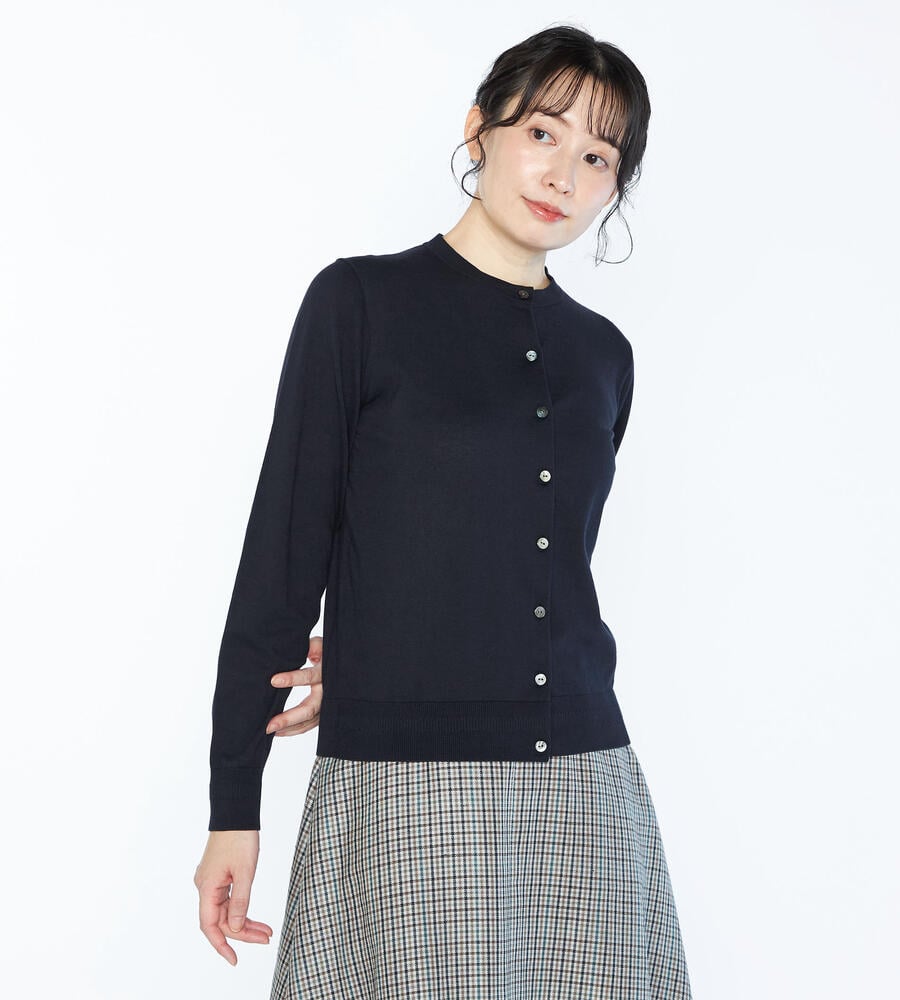 コットンのハイゲージニットですっきりとした印象に仕上げたカーディガン。春先の羽織りとしてはもちろん、ジャケットなどのインにも合わせられる、フィット感のあるシルエットです。首に沿うようなラウンドネックを採用した、エレガントな佇まい。スカートにもパンツにも合わせやすいアイテムです。