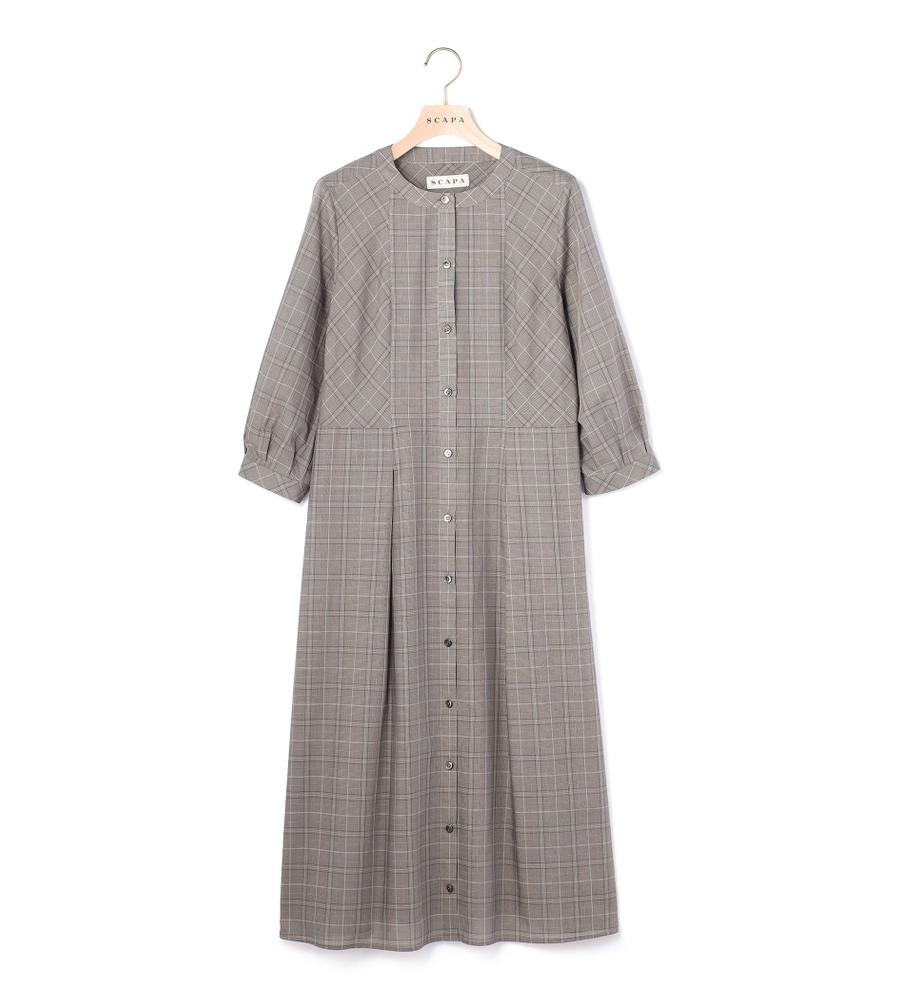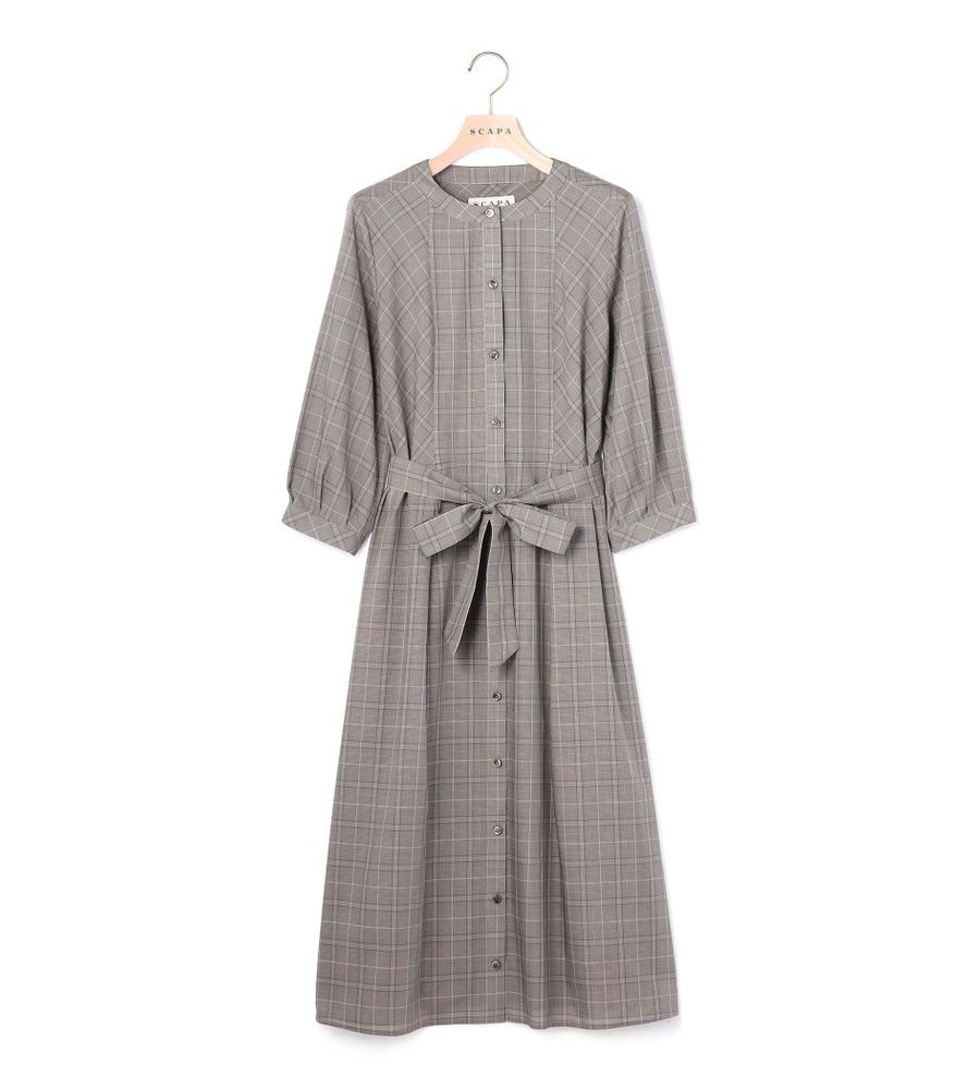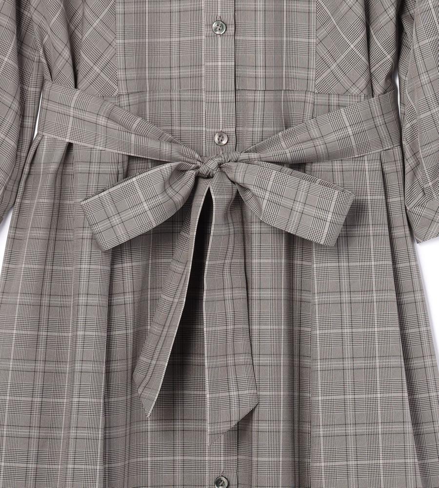 繊細なグレンチェック柄にシックさの漂うシャツワンピース。甘めのふんわりスリーブやリボンベルトも、いっそう上品な表情に。リボンベルトを外してカジュアルダウンさせても楽しめる2WAY仕様です。